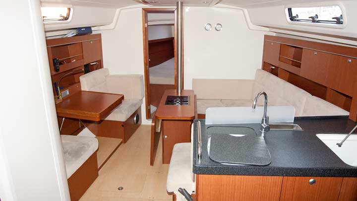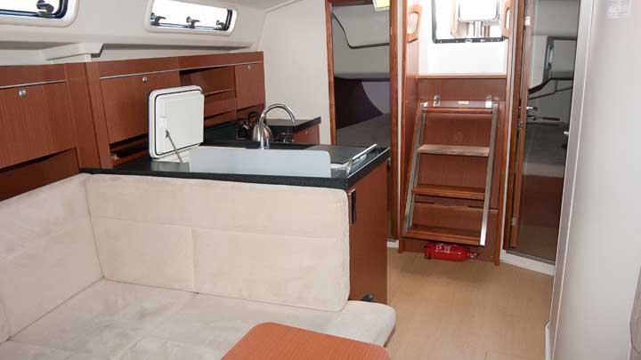 | Outside | Bootshaken, Bugkorb, Cockpittisch, Deckbürste, elektr. Ankerwinsch, Faltpropeller, Fender, Festmacherleinen, Seereling, Sprayhood, Wantenschneider |