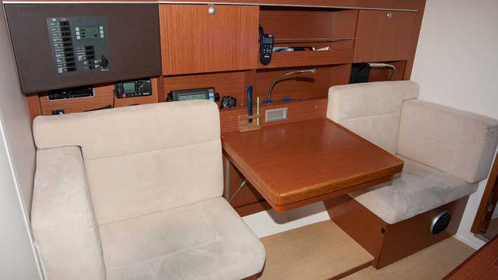 | Navigation | Barometer, Echolot, Fernglas, GPS mit Farbkartenplotter, Handpeilkompass, Navigationsbesteck, Steuerkompass, Sumlog, Tablet-PC am Kartentisch, Windmesser |