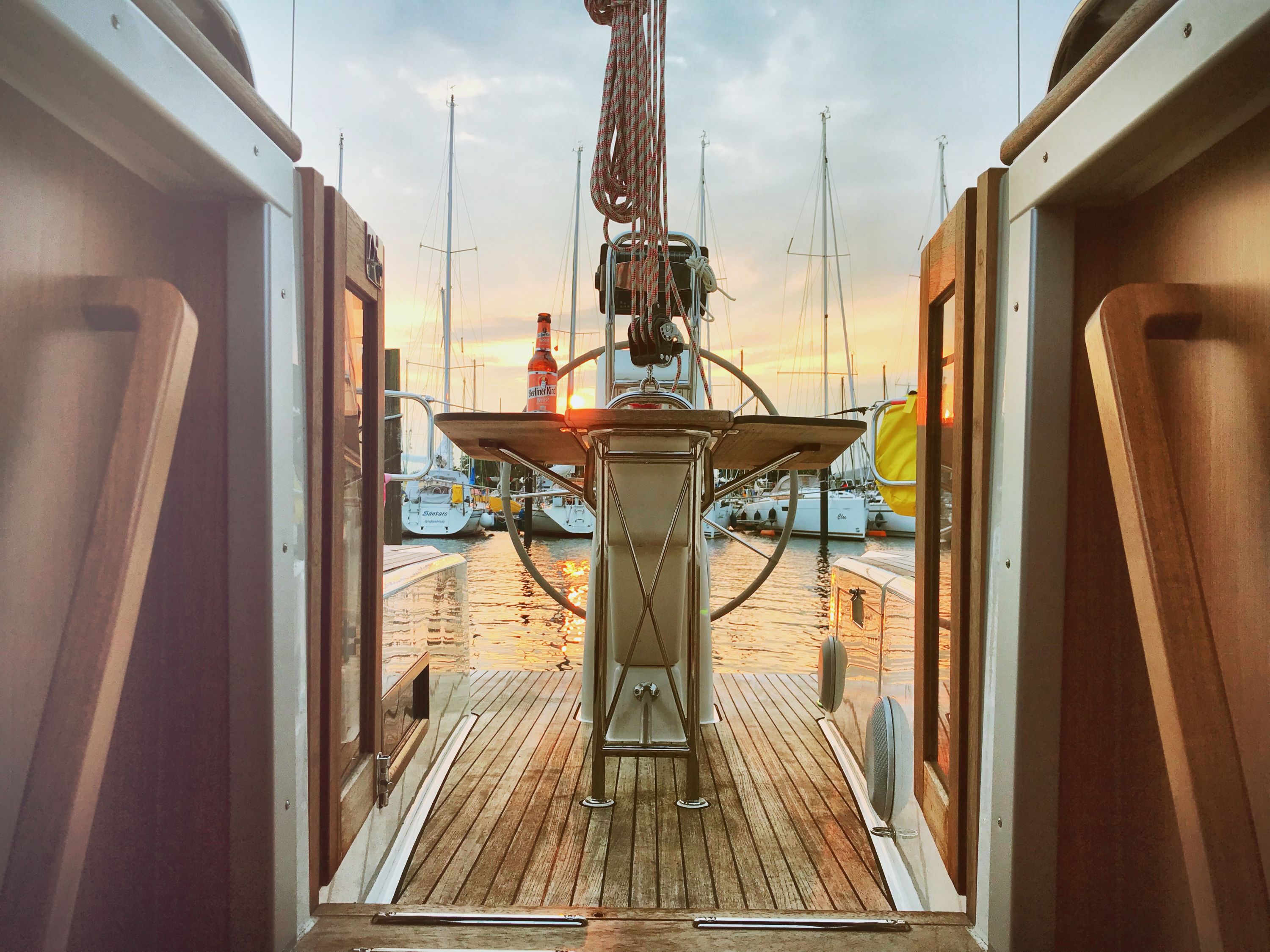 | Navigation | Echolot, Fernglas, Hafenhandbücher, Handpeilkompass, Kartenplotter im Cockpit, Kompass, Navigationsbesteck, Seekarten, Sumlog, Windmesser |