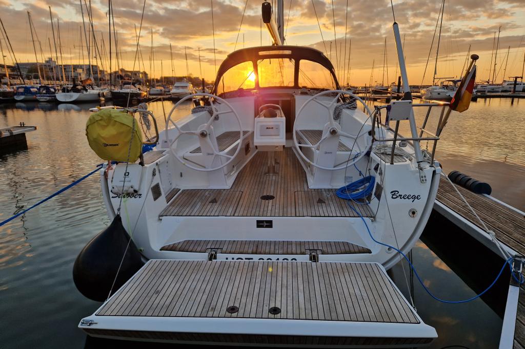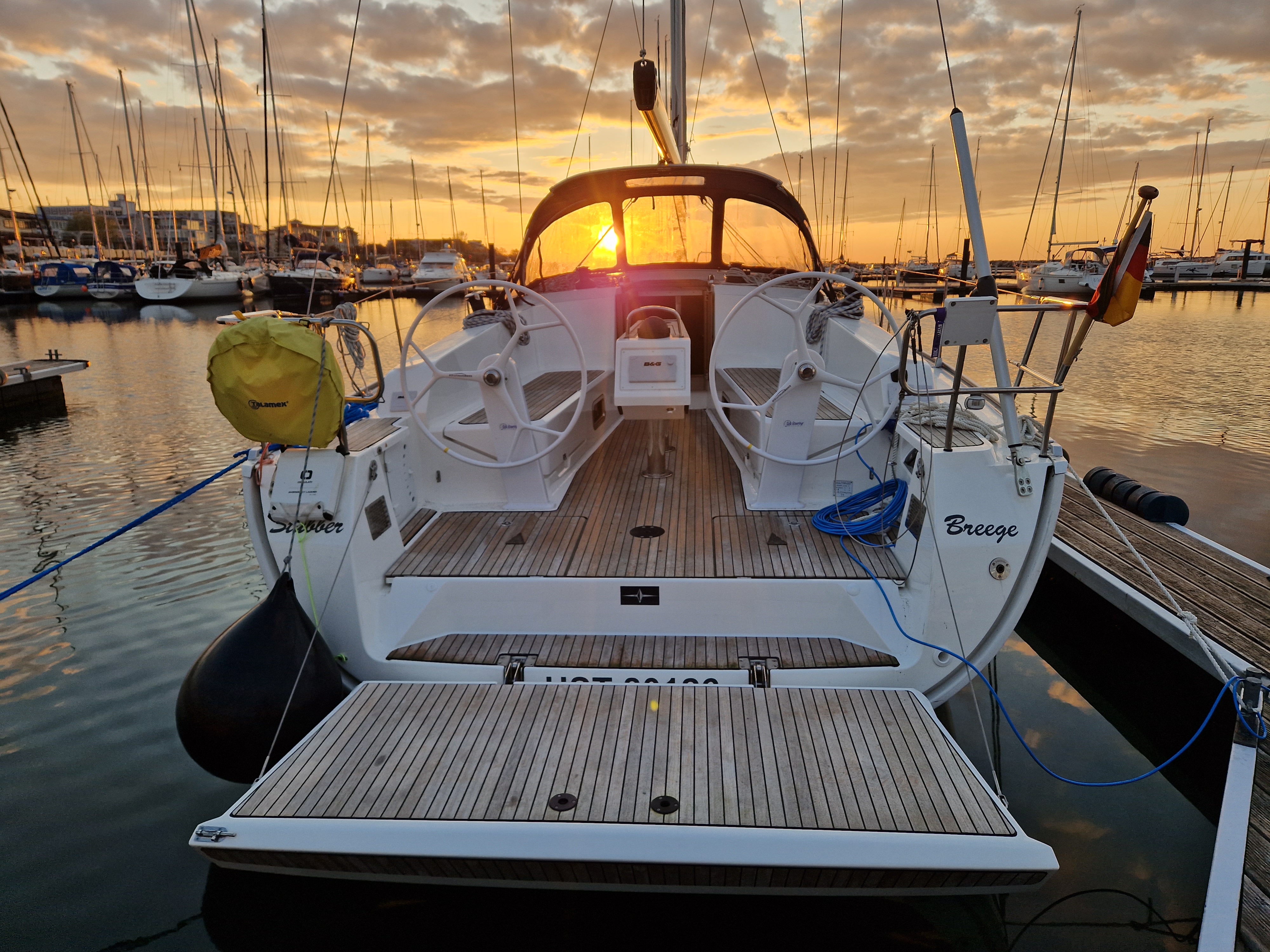 | Outside | 220 V-Landanschluss, Bootshaken, CQR-Anker, elektr. Ankerwinsch, Fallwinschen, selbstholend, Fender, Festmacherleinen, Genuawinschen, selbstholend, Heckanker, Sprayhood, Windex |