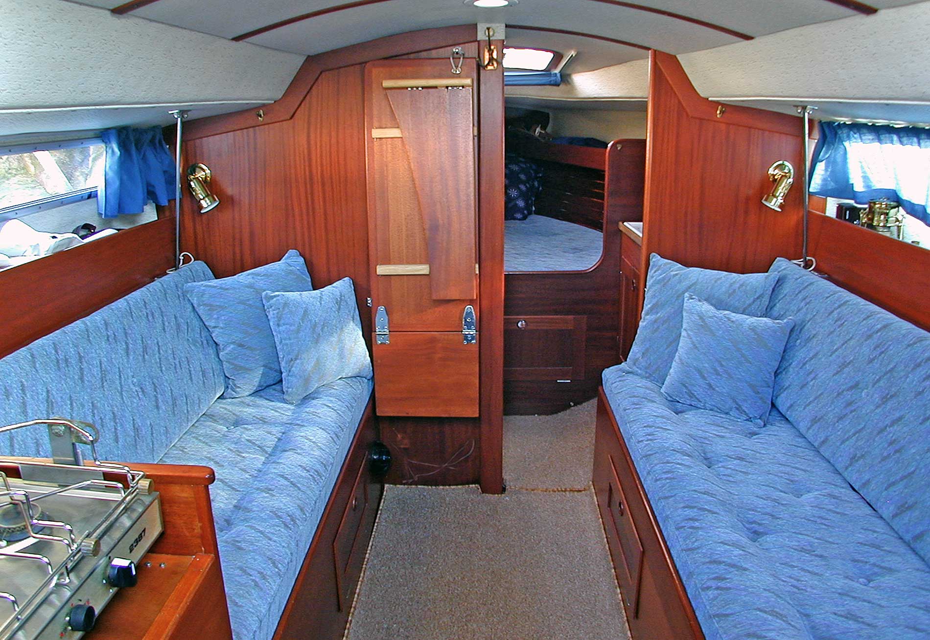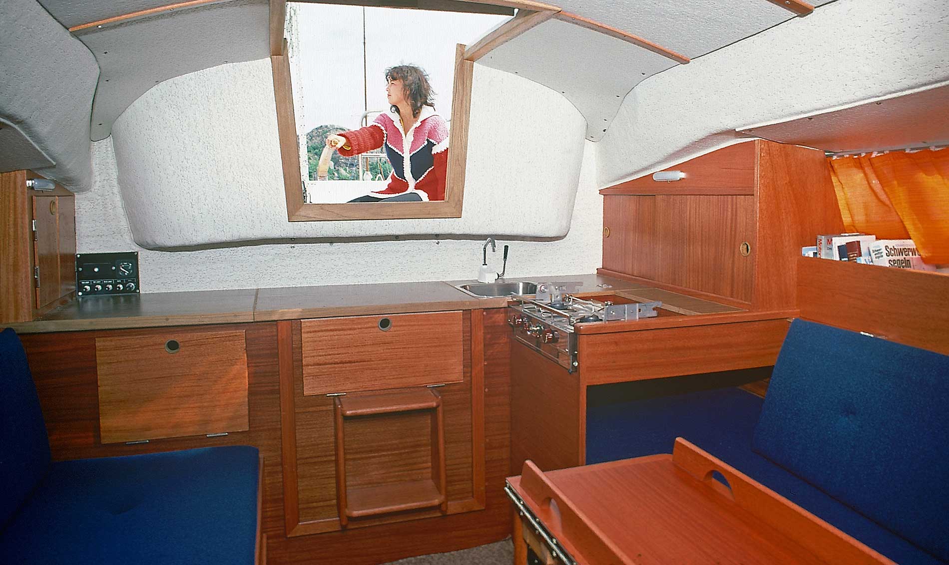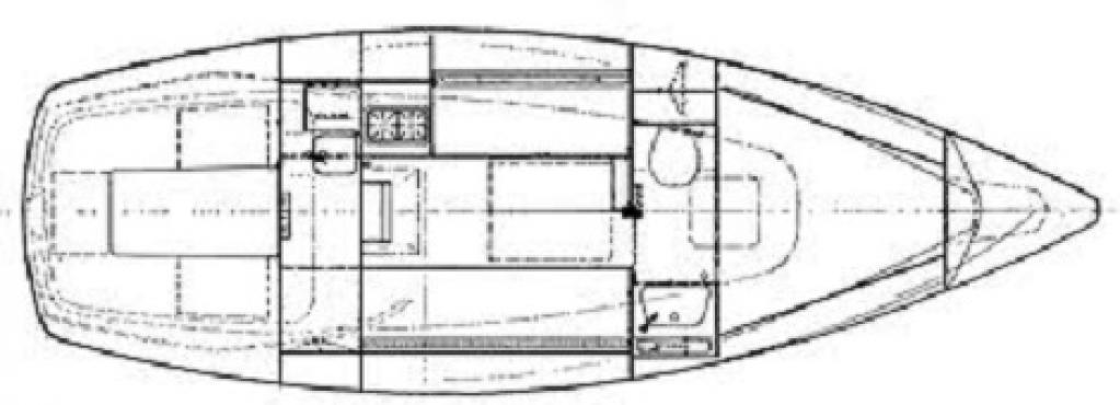 Outside 220 V-Landanschluss, Anker mit Kette, Badeleiter, Bootshaken, Cockpitpolster, Cockpittisch, Fender, Festmacherleinen, Seereling, Sprayhood, Windex, Winschen
