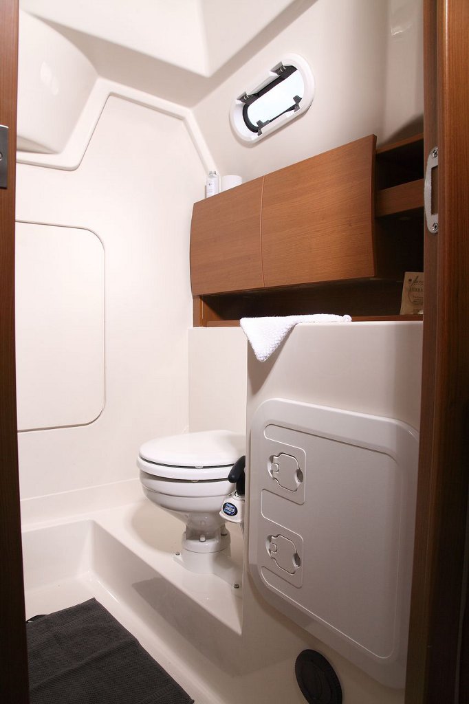 Der Motor scheint mir auch etwas klein, bei 2800 Rpm werden nur 5,7 kn erreicht, bei Marschfahrt 2300 Rpm sind es nur 5 kn. Es fehlen seegerechte Ablagen im Cockpit. Die Beschläge für die Segelbedienung sind zu klein, zumal nicht vom Rudergänger zu bedienen. Der Weg auf das Vordeck ist durch das flach stehende Unterwand schwer zu erreichen.
