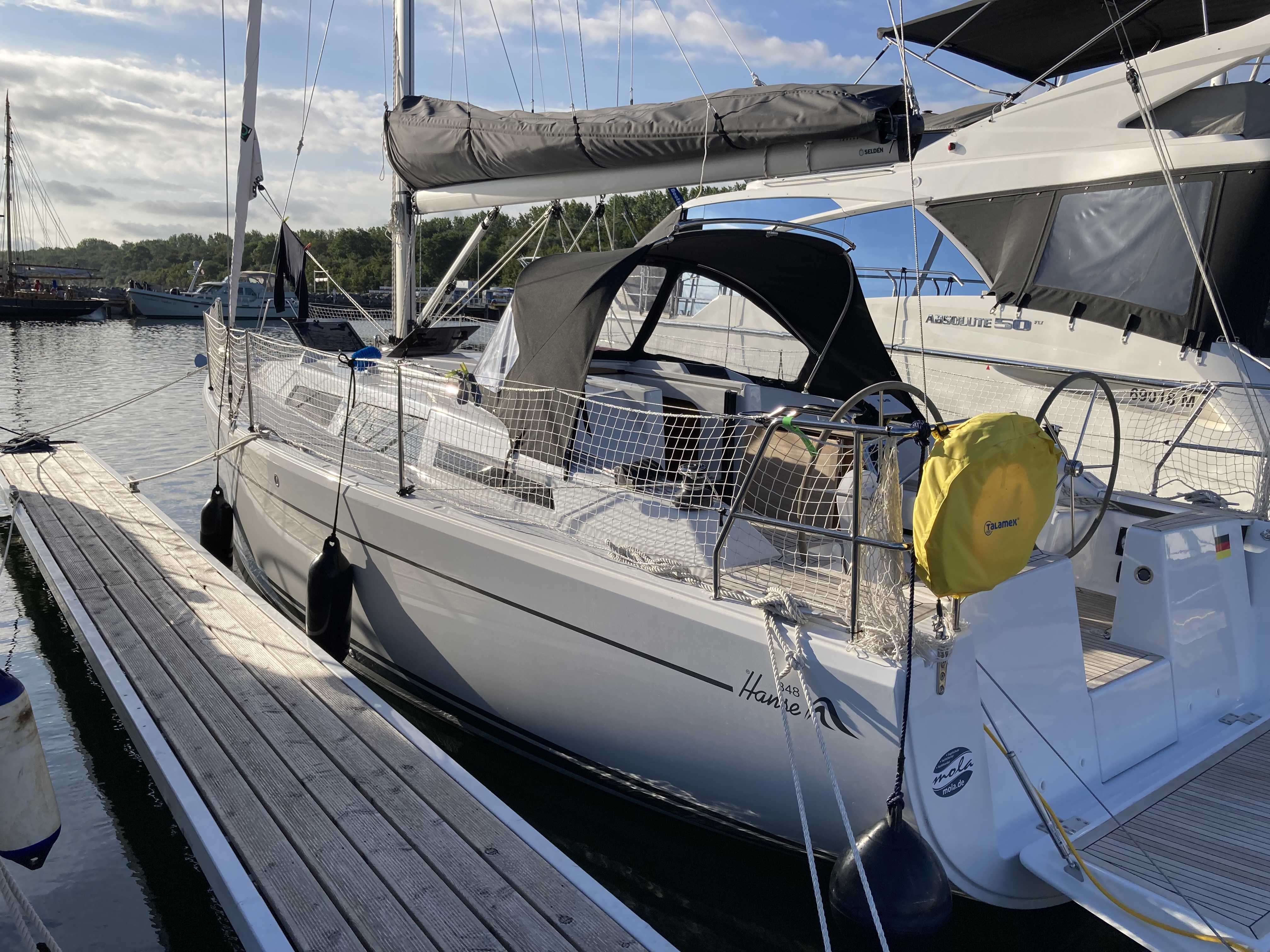 | Safety | Automatikwesten, Autopilot, Bootsmannstuhl, Bordwerkzeug, Feuerlöscher, Handbilgepumpe, Nebelhorn, Notsignale, Rettungsinsel, Rettungsring, Taschenlampe, UKW-Funk |