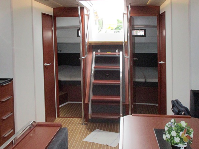 | Safety | Automatikwesten, Autopilot, Bootsmannstuhl, Bordwerkzeug, Bugstrahlruder, elektr. Bilgepumpe, Feuerlöscher, Handbilgepumpe, Nebelhorn, Notsignale, Rettungsinsel, Rettungsring, Taschenlampe, UKW-Funk m. DSC |