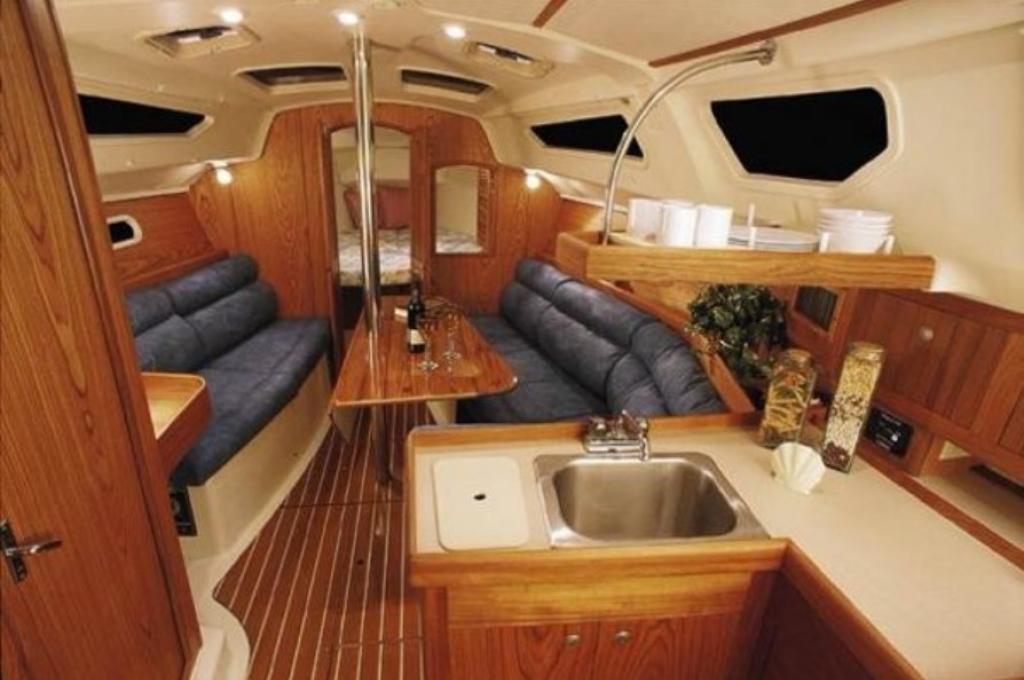 | Outside | 220 V-Landanschluss, Bootshaken, CQR-Anker, Fender, Festmacherleinen, Heckanker, Heckdusche, Sprayhood, Windex |