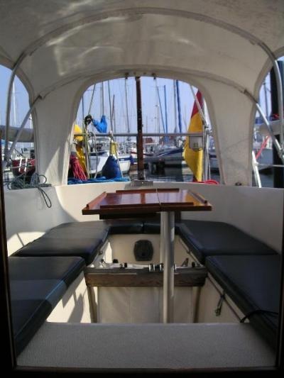 | Outside | 220 V-Landanschluss, Anker mit Kette, Badeleiter, Bootshaken, Cockpittisch, Festmacherleinen, Kuchenbude, Seereling, Sprayhood, Windex, Winschen |