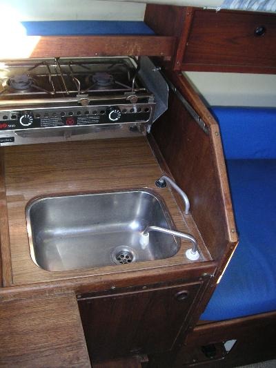 | Outside | 220 V-Landanschluss, Anker mit Kette, Badeleiter, Bootshaken, Cockpittisch, Fender, Festmacherleinen, Kuchenbude, Seereling, Sprayhood, Windex, Winschen |