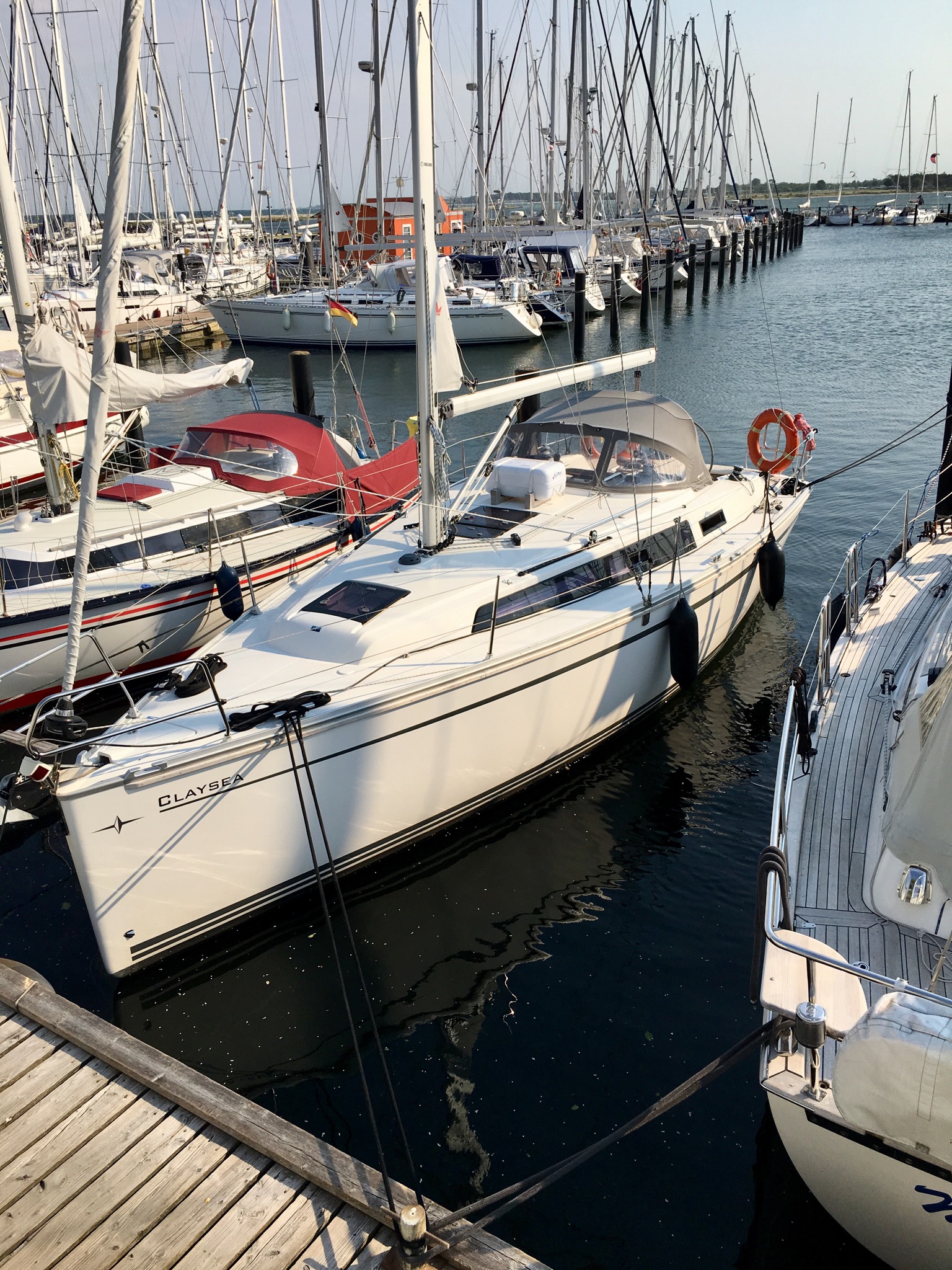| Safety | AIS Empfänger, Ankerball, Automatikwesten, Autopilot, Bilgepumpe, Bootsmannstuhl, Bordwerkzeug, Bugstrahlruder, Feuerlöscher, Handscheinwerfer, Rettungsinsel, UKW-Funk |