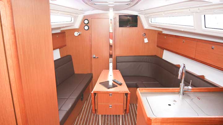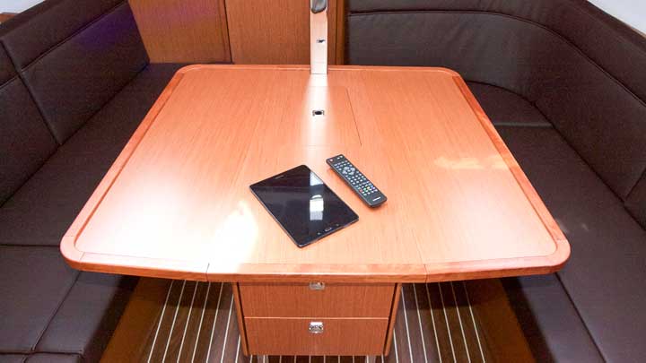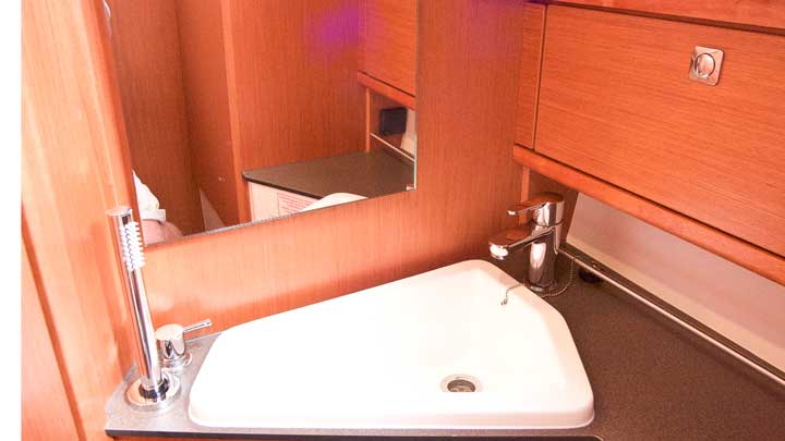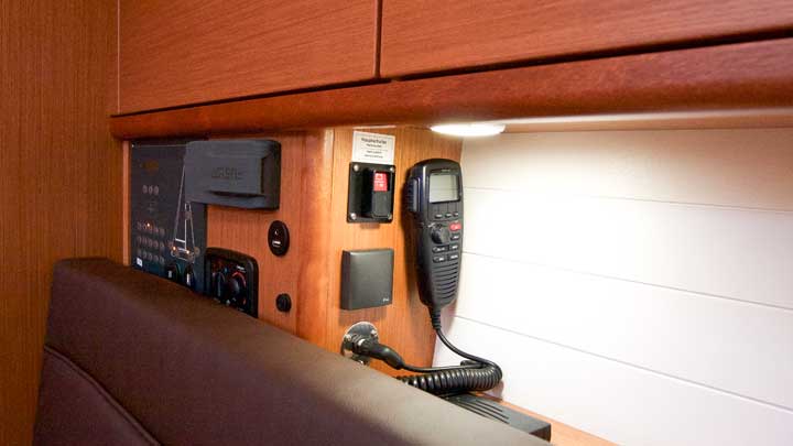 | Safety | AIS Empfänger, Ankerball, Automatikwesten, Autopilot, Bilgepumpe, Bootsmannstuhl, Bordwerkzeug, Bugstrahlruder, Feuerlöscher, Handscheinwerfer, Rettungsinsel, UKW-Funk |