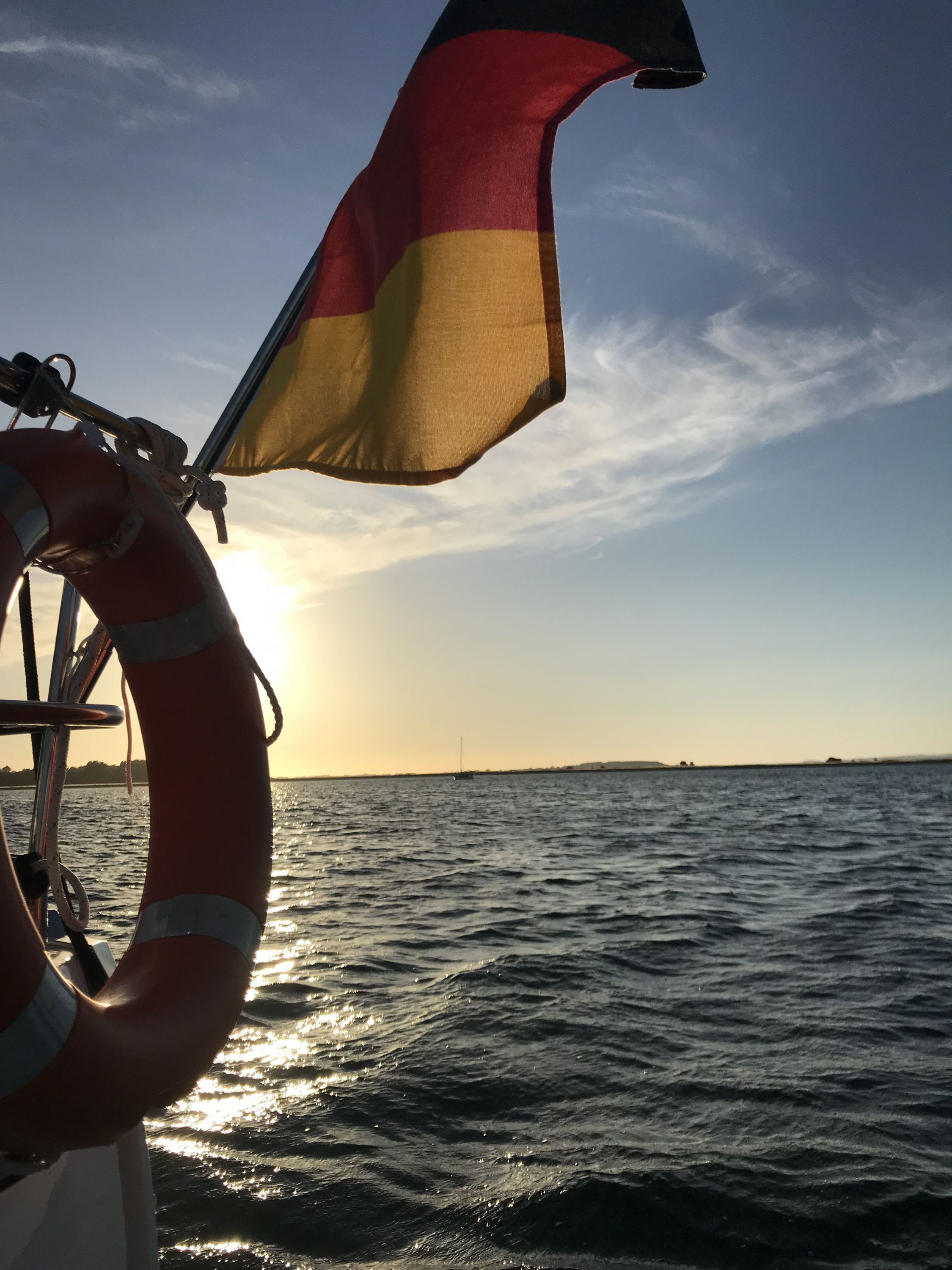 | Navigation | Echolot, Fernglas, GPS mit Farbkartenplotter im Cockpit, Handpeilkompass, Navigationsbesteck, Steuerkompass, Sumlog, Tablet-PC am Kartentisch, Windmesser |
