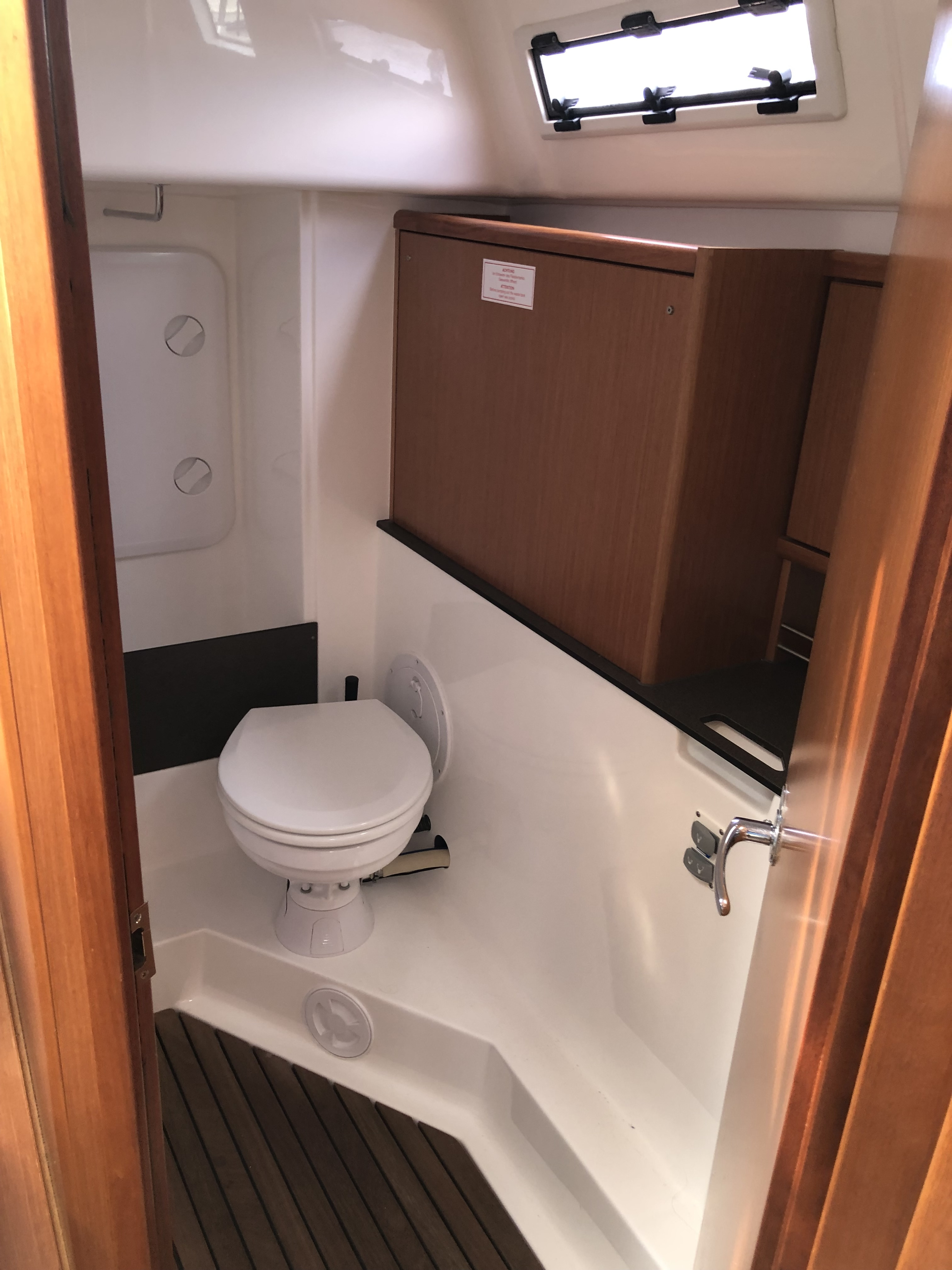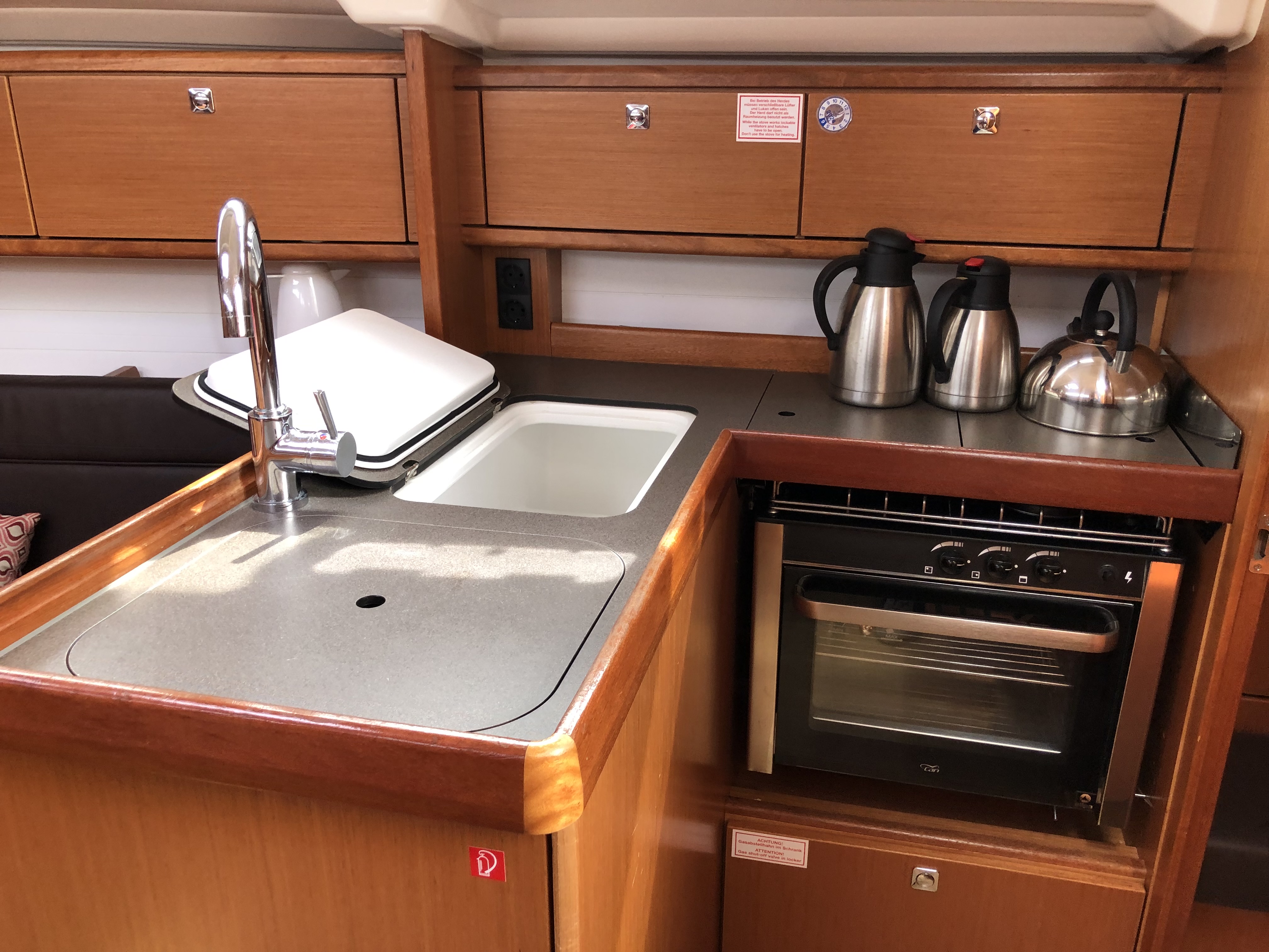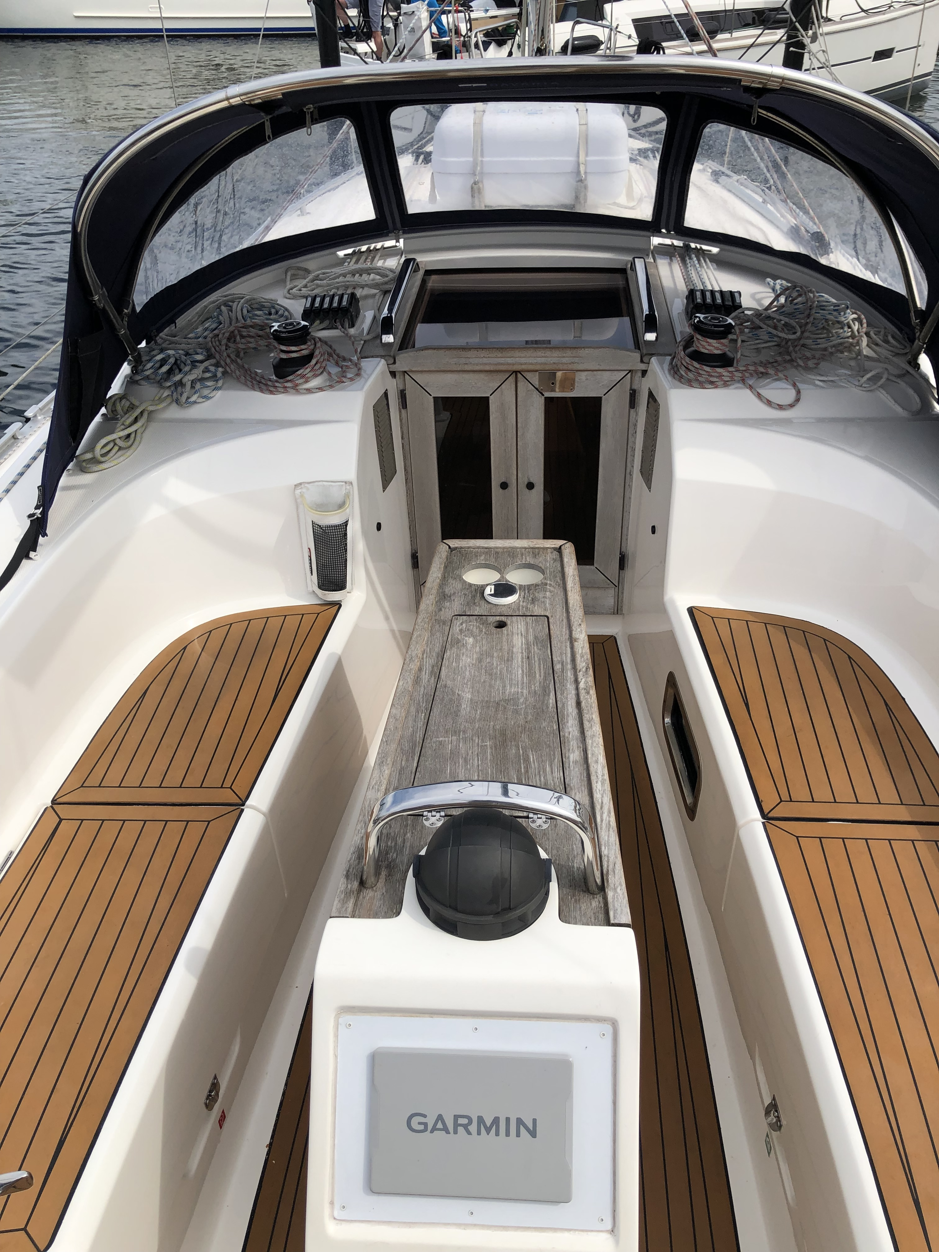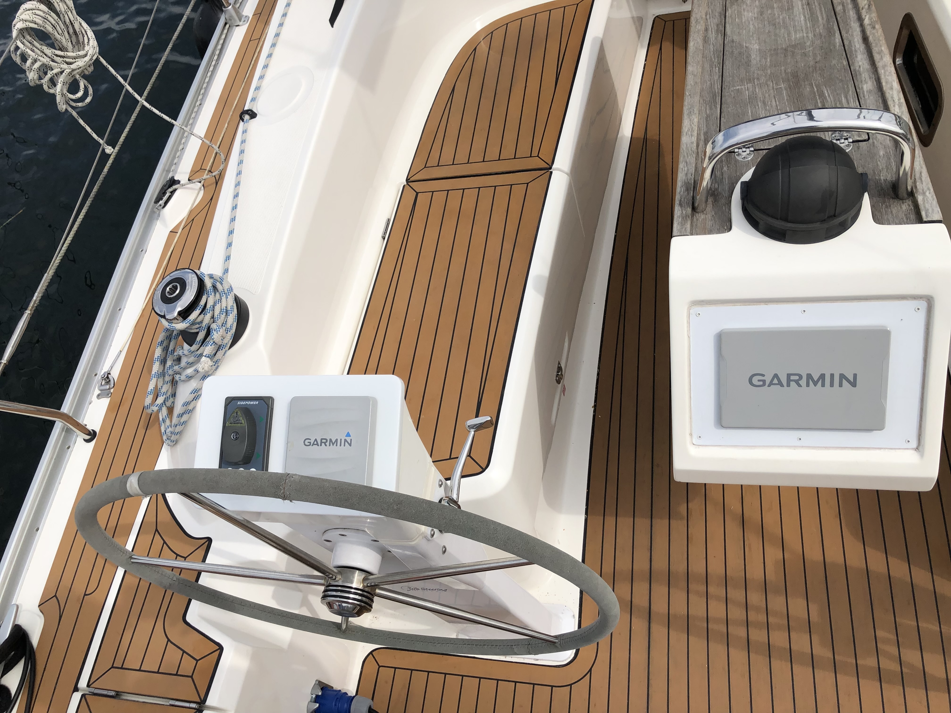 | Outside | Badeplattform, Bootshaken, Bugkorb, Cockpittisch, Deckbürste, elektr. Ankerwinsch, Fender, Festmacherleinen, Sprayhood, Teak auf Badeplattform, Teakdeck, Wantenschneider |