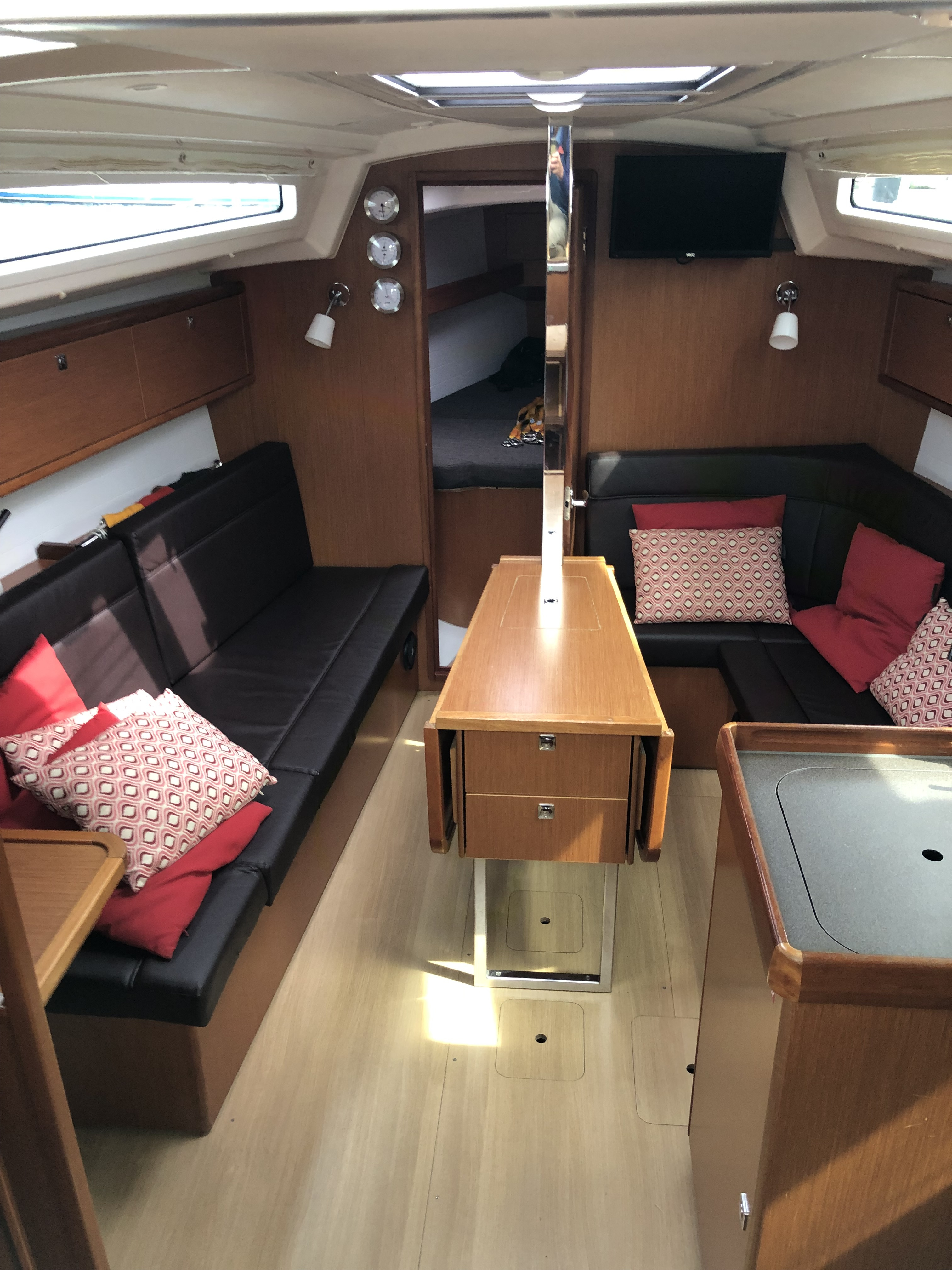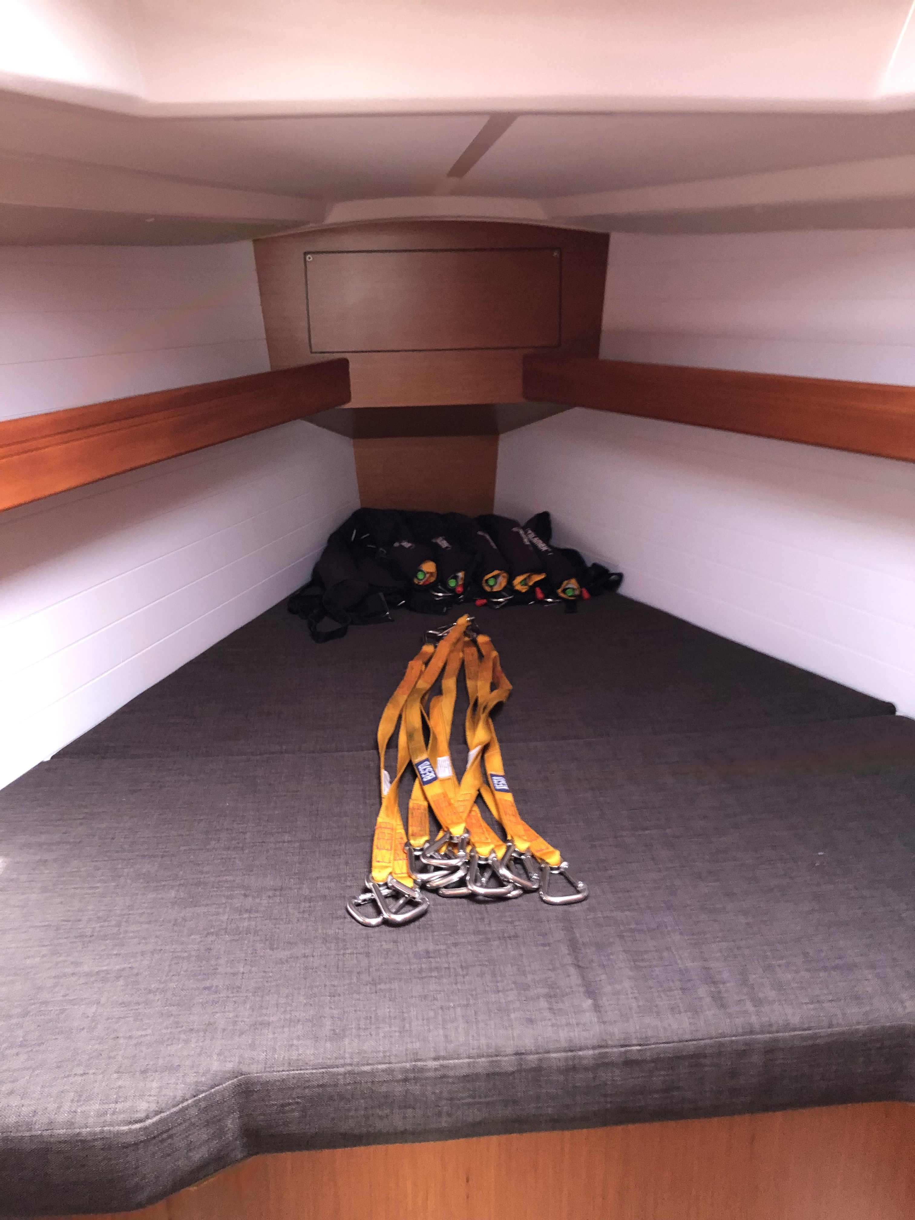| Safety | AIS Empfänger, Ankerball, Ankerlicht, Automatikwesten, Autopilot, Bilgepumpe, Bootsmannstuhl, Bordapotheke, Bordwerkzeug, Bugstrahlruder, Feuerlöscher, Flaggen, Handscheinwerfer, Nebelhorn, Rettungsinsel, Rettungsring, Schwimmleine, UKW-Funk mit AIS |