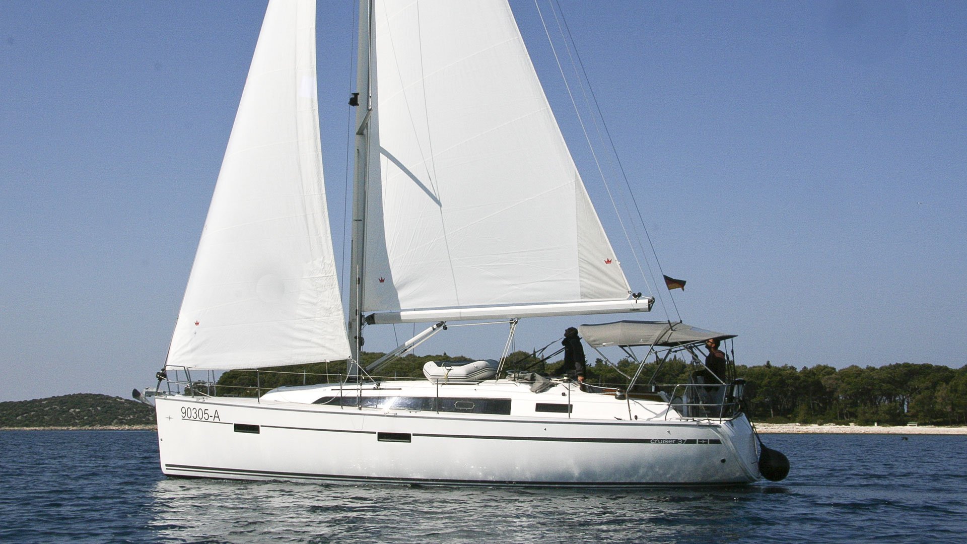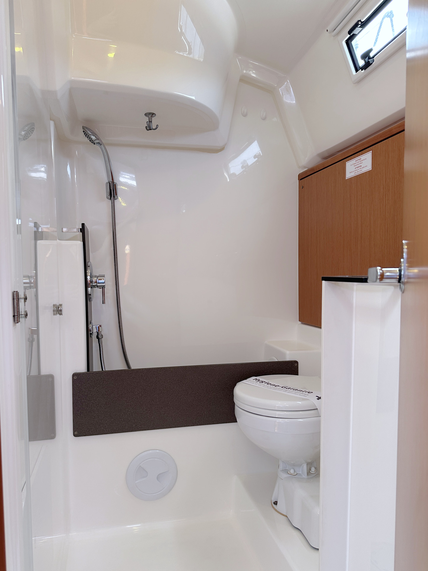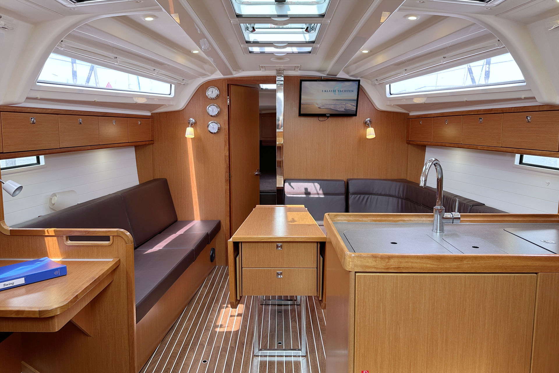 | Safety | AIS Empfänger, Ankerball, Ankerlicht, Automatikwesten, Autopilot, Bilgepumpe, Bootsmannstuhl, Bordapotheke, Bordwerkzeug, Bugstrahlruder, Feuerlöscher, Flaggen, Handscheinwerfer, Lifebelts, Navigationslichter, Nebelhorn, Notsignale, Rettungsinsel, Rettungsring, UKW-Funk, Zweitanker |