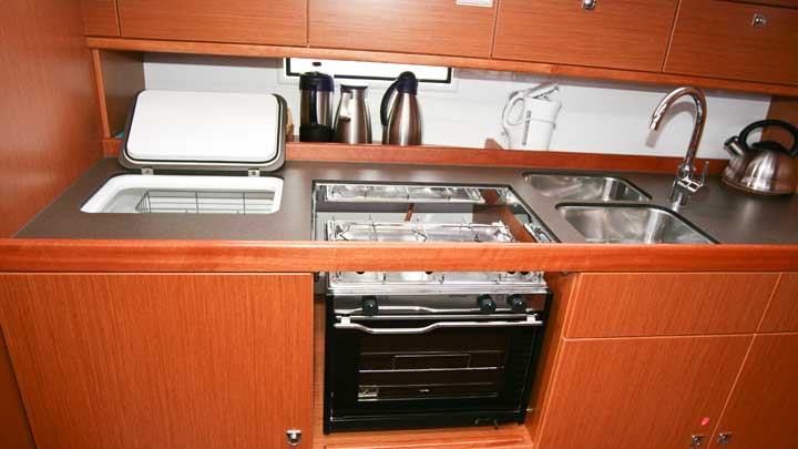 | Inside | 2-flammiger Gasherd, Backofen, Borduhr, Diesel-Heizung, elektrische Kühlbox, FUSION Sound System, Ladegerät, Nespresso-Maschine, Pantryausstattung, Spülbecken, Warmwasser |