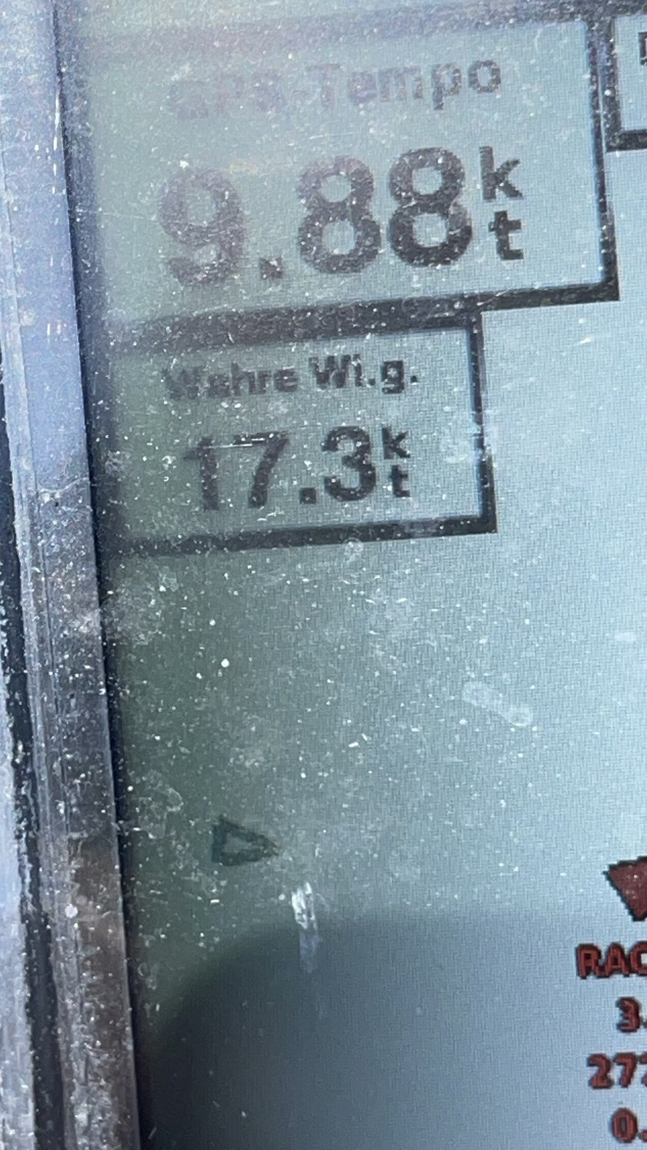 | Navigation | Echolot, Fernglas, GPS mit Farbkartenplotter im Cockpit, Handpeilkompass, Navigationsbesteck, Radar, Steuerkompass, Sumlog, Tablet-PC am Kartentisch, Windmesser |