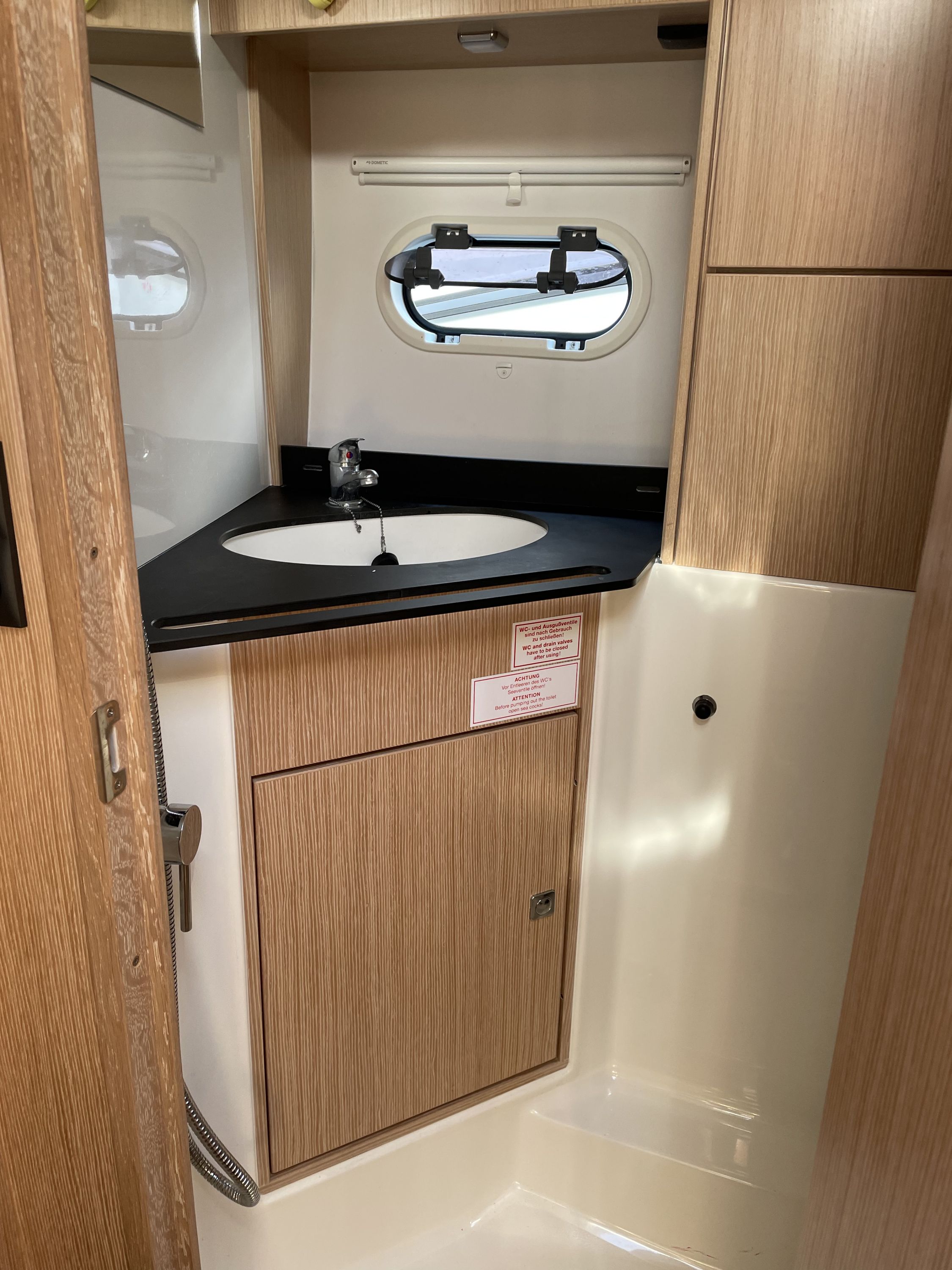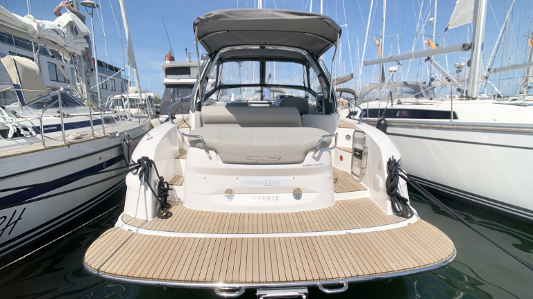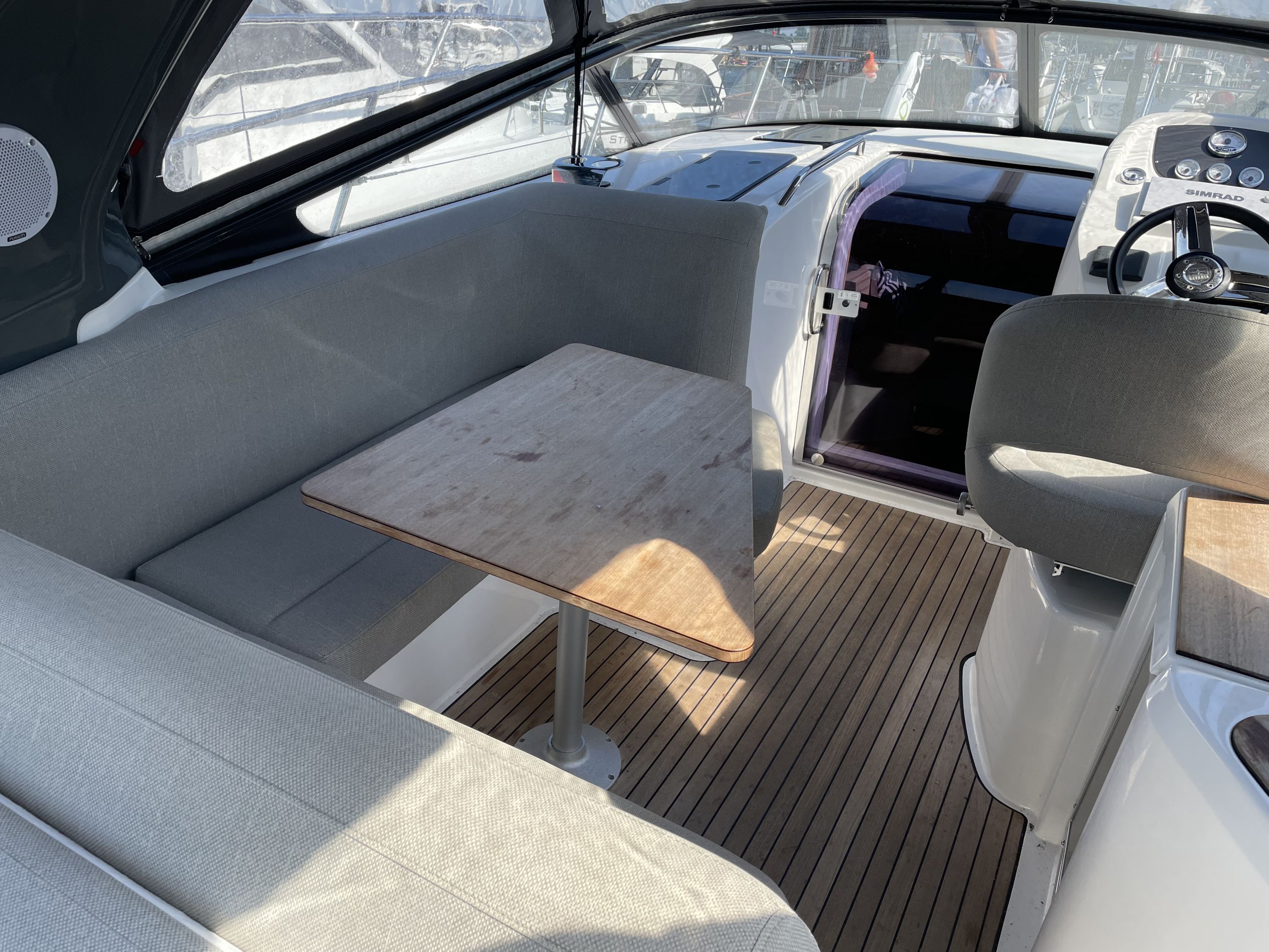 | Outside | Cockpitdusche warm/kalt, Cockpittisch, Deckpolster, elektr. Ankerwinsch, Grill, Sprayhood, Teakdeck |