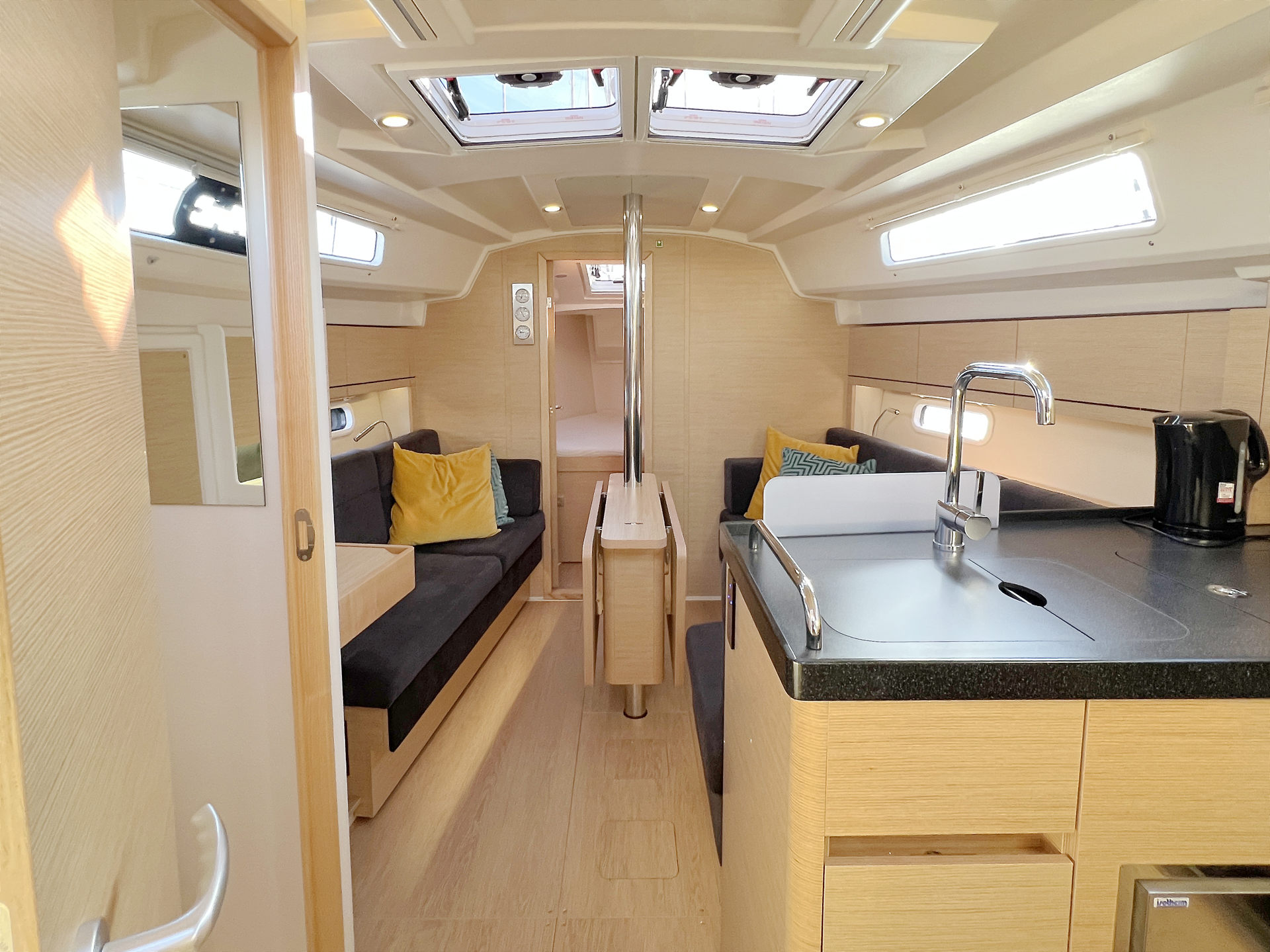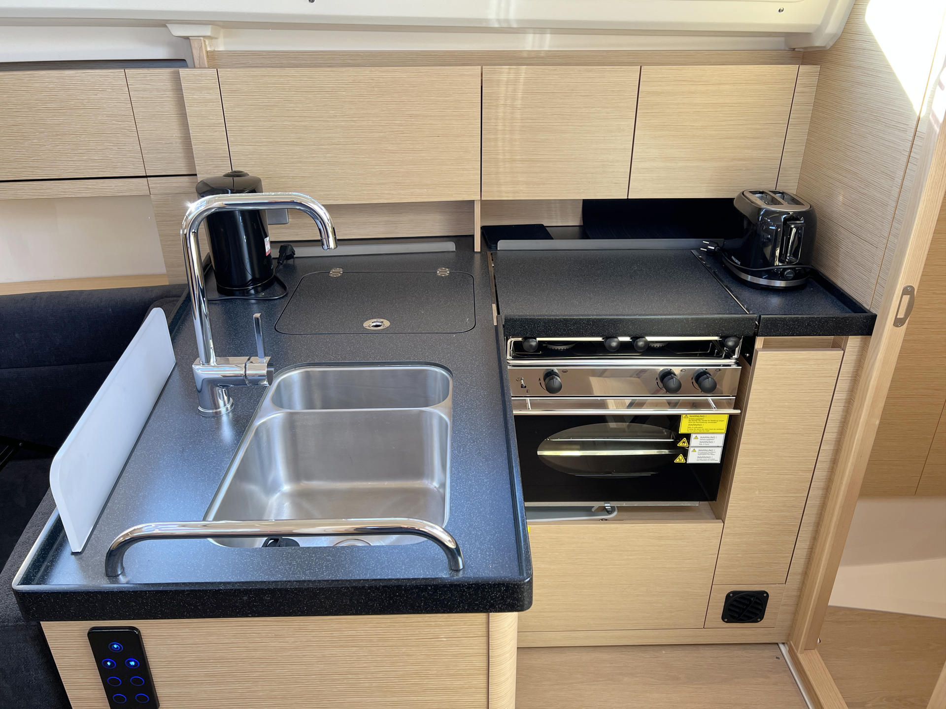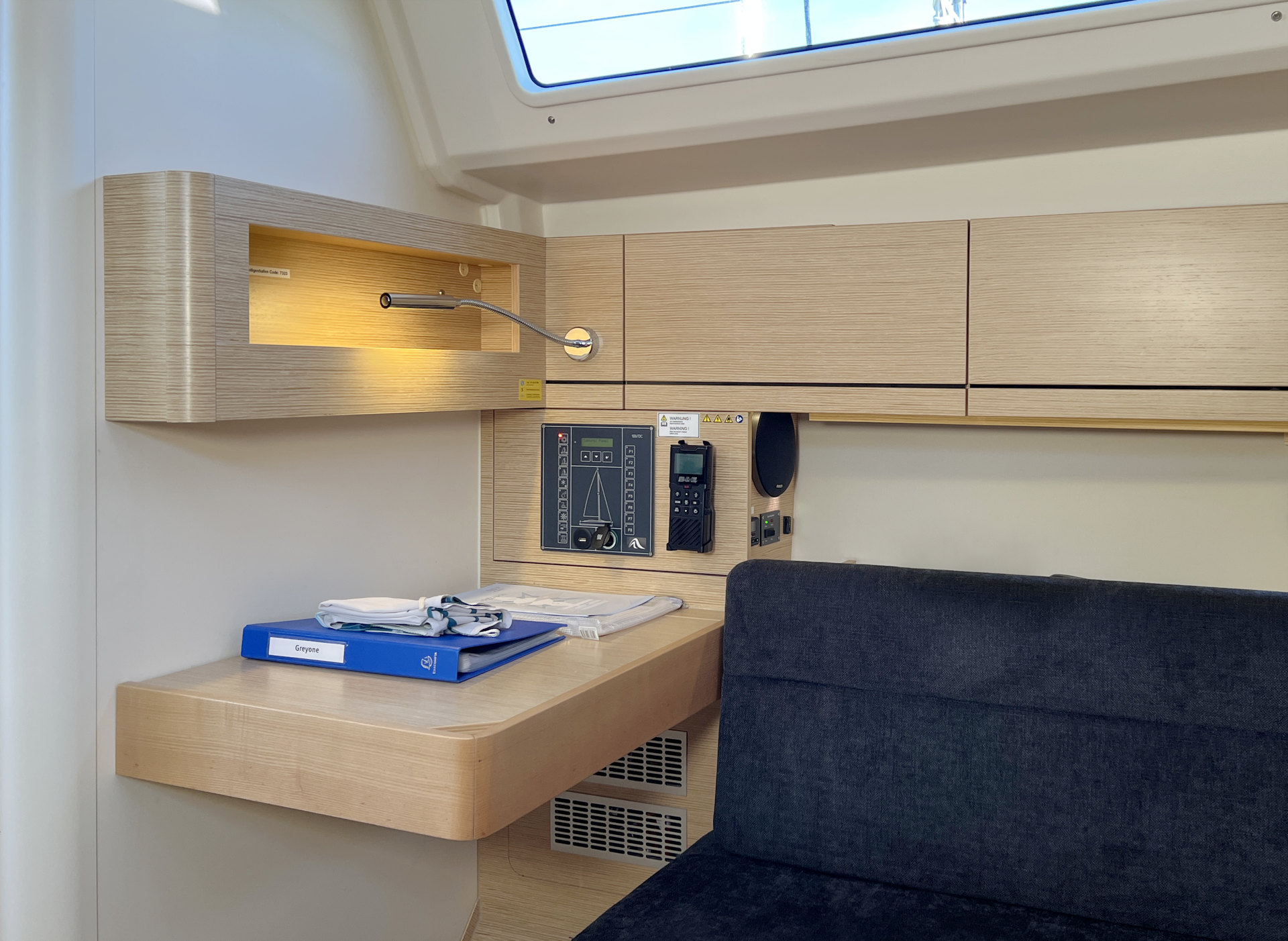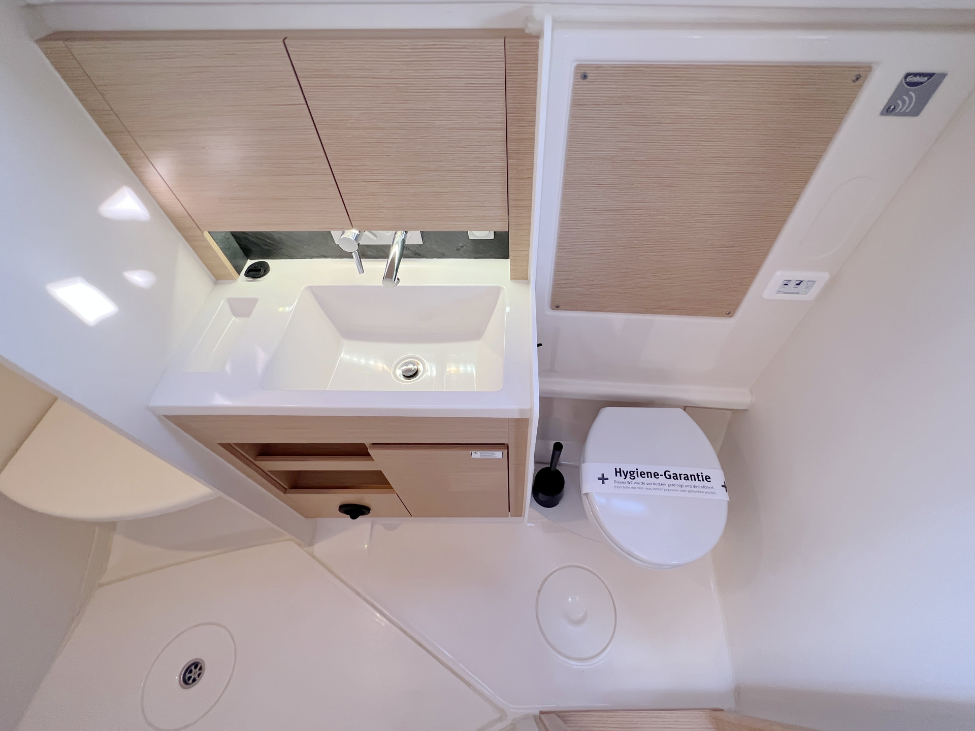 | Outside | Badeplattform, Cockpitdusche warm/kalt, Cockpitlautsprecher, Cockpitpolster, Cockpittisch, elektr. Winsch, Sprayhood |