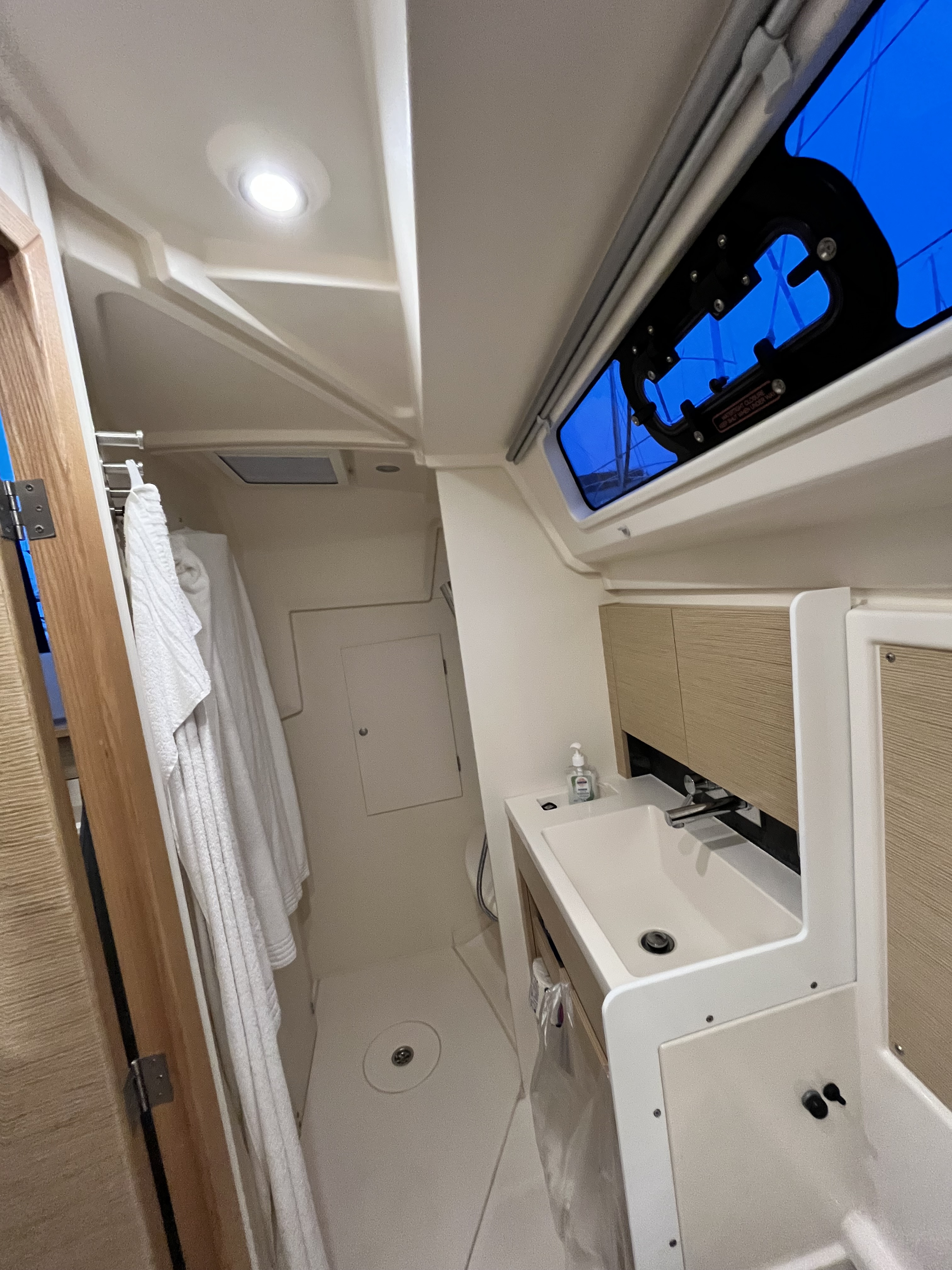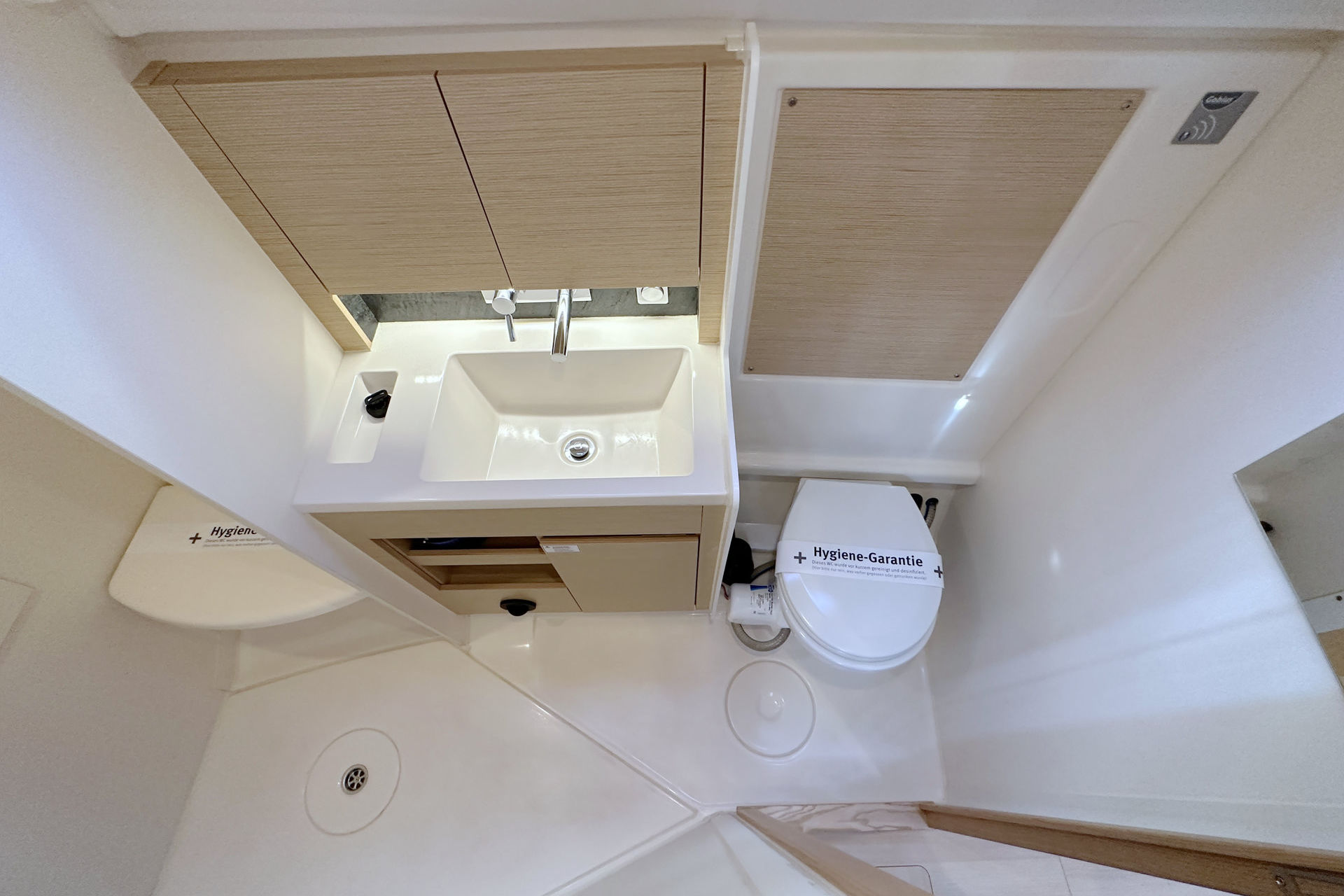 Der große Duschbereich hat uns an der sonst doch kleinen Yacht besonders gut gefallen.