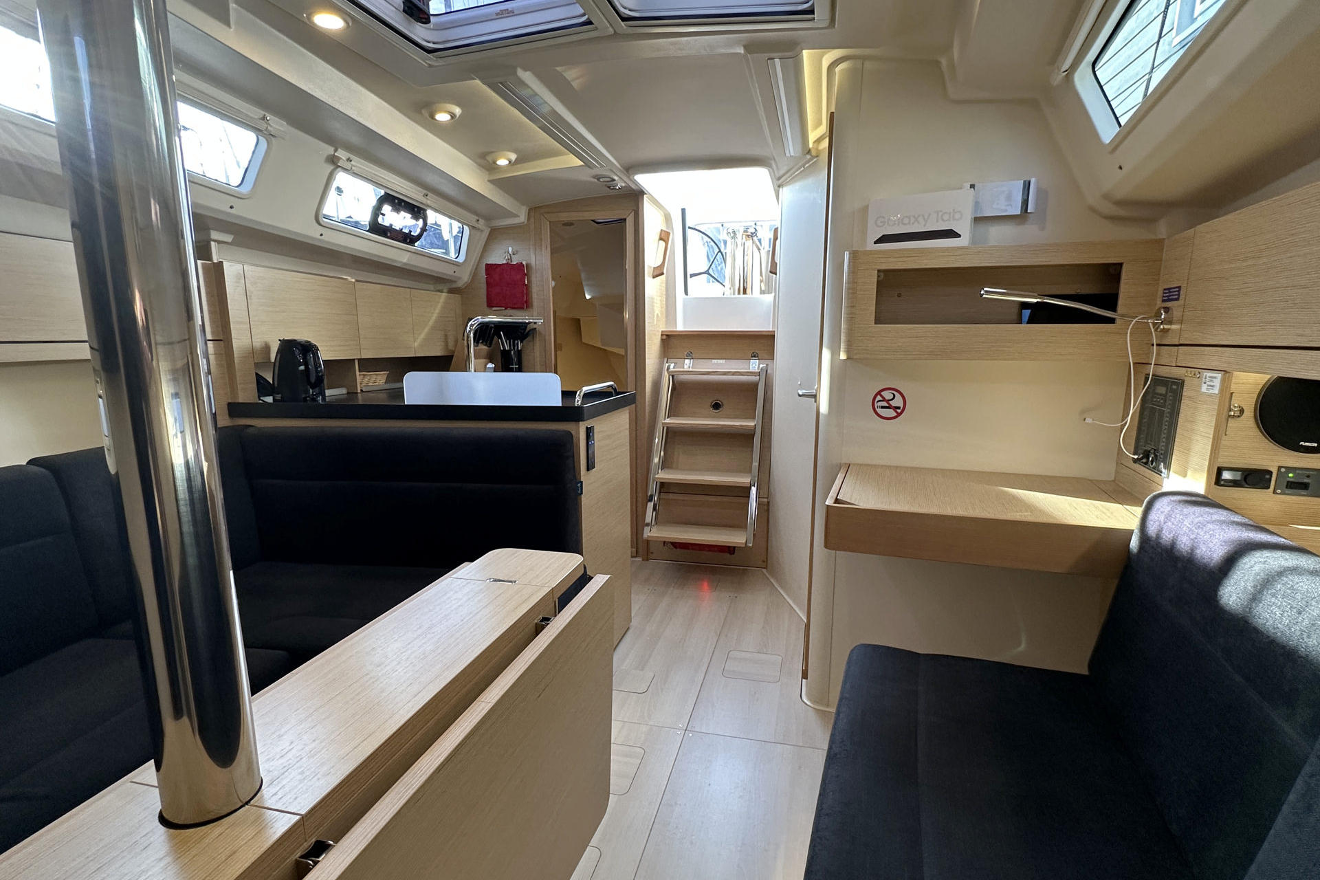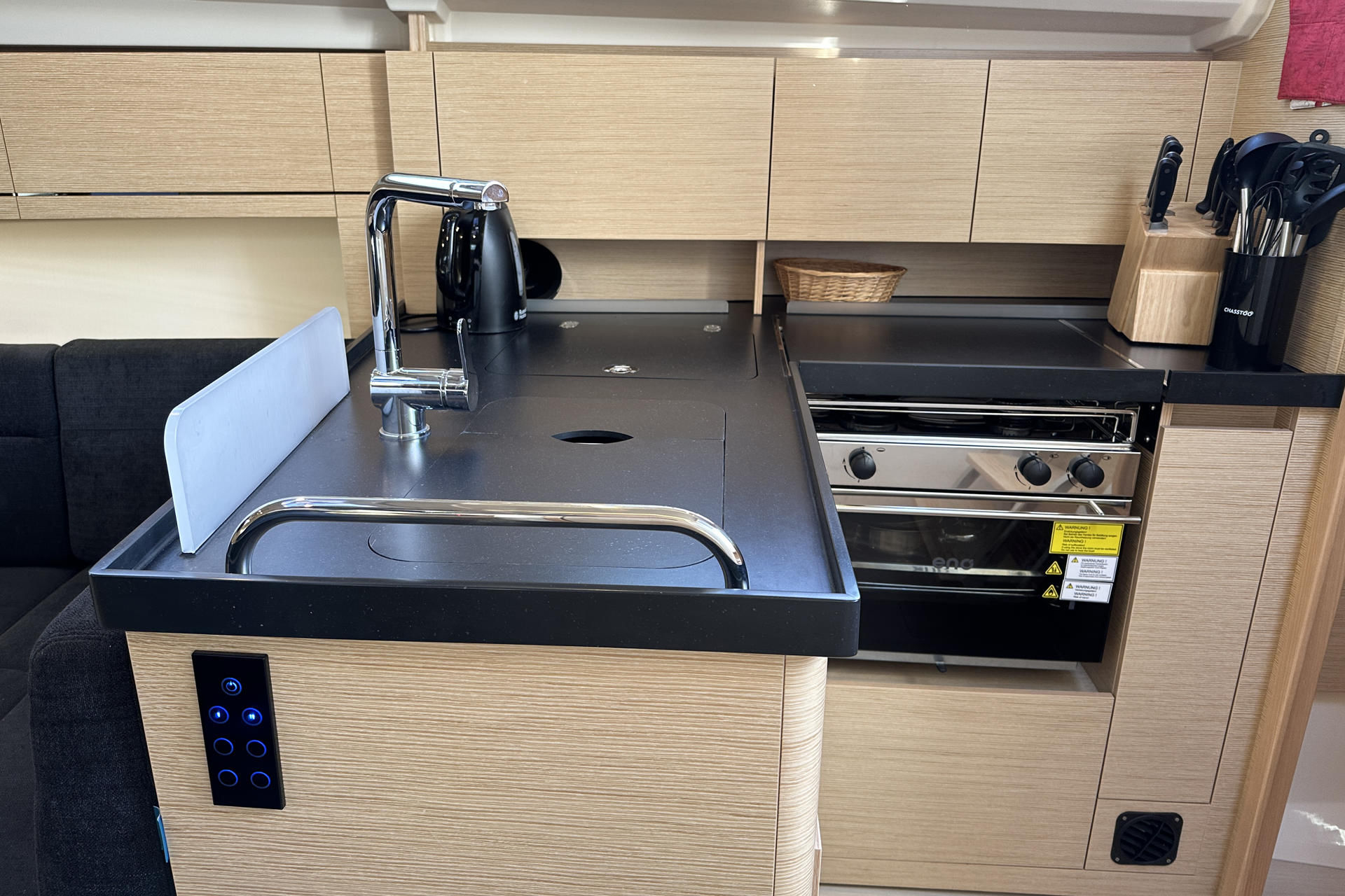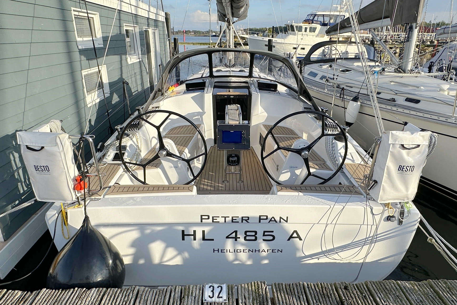 | Outside | 220 V-Landanschluss, Bootshaken, Cockpittisch, elektr. Ankerwinsch, Fender, Festmacherleinen, Sprayhood, Teak auf Badeplattform, Teak im Cockpit, Wantenschneider |