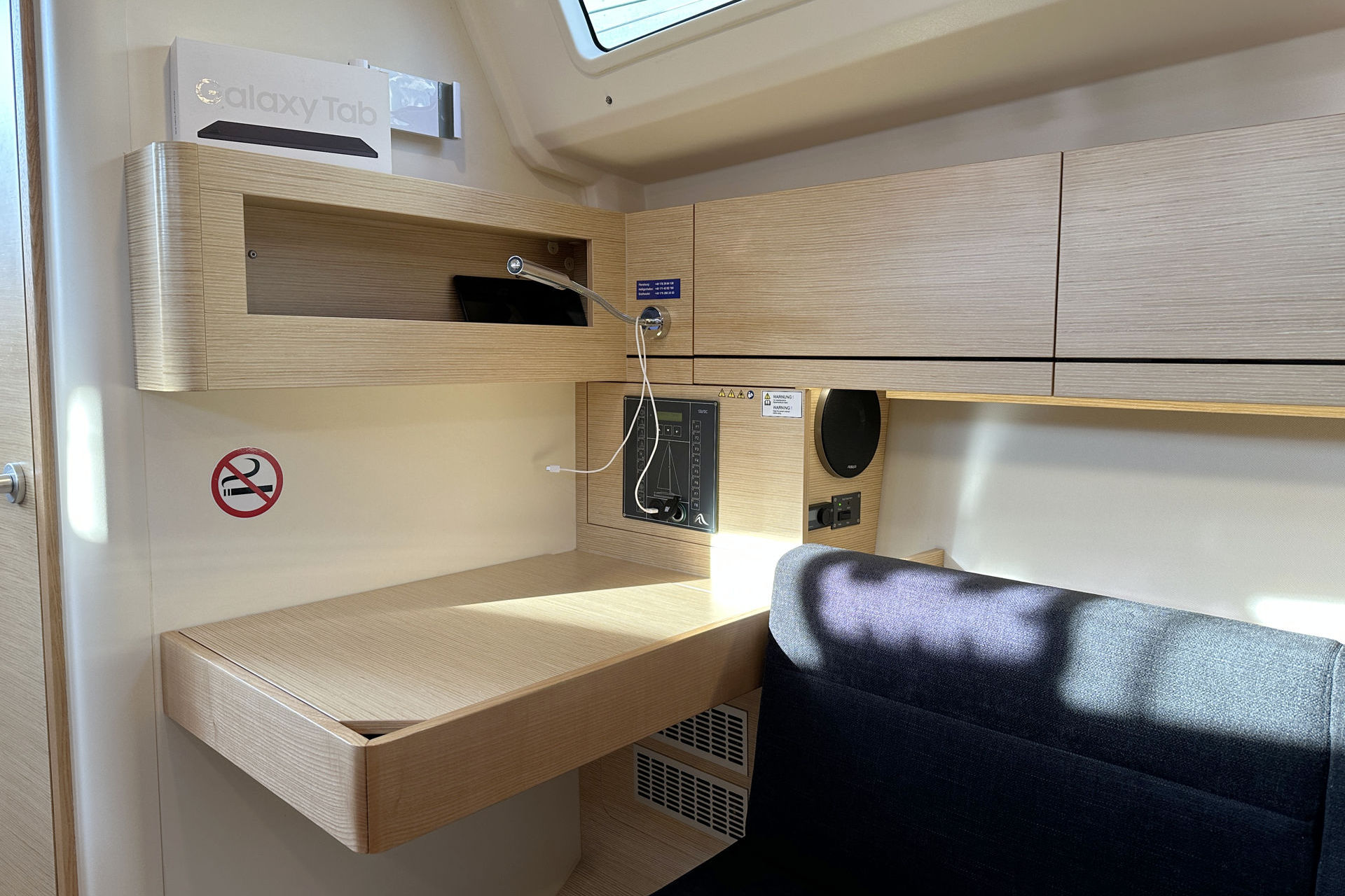 | Safety | AIS Empfänger, Ankerball, Automatikwesten, Autopilot, Bootsmannstuhl, Bordapotheke, Bordwerkzeug, Bugstrahlruder, Feuerlöscher, Nebelhorn, Rettungsinsel, Rettungsring, UKW-Funk |