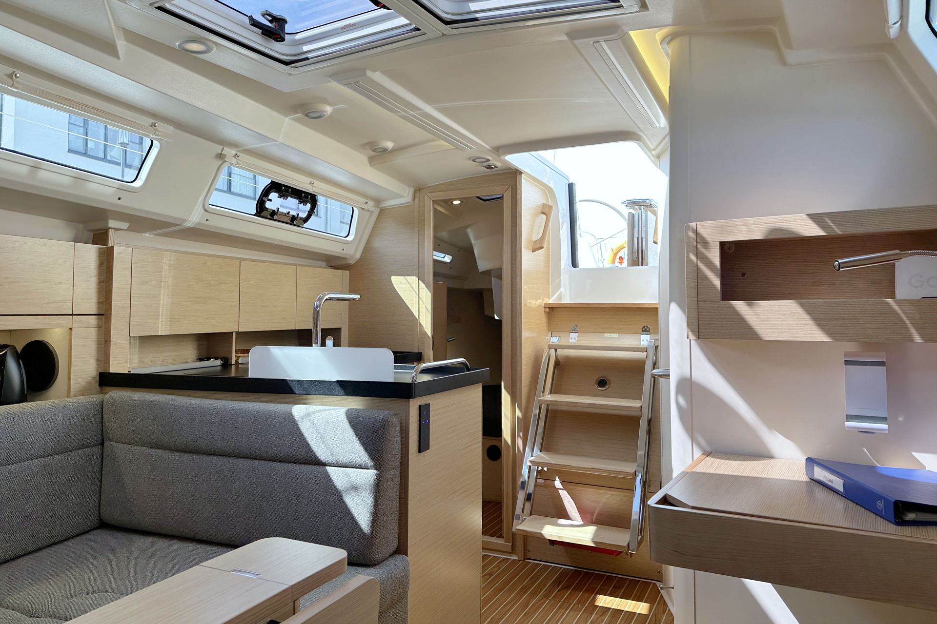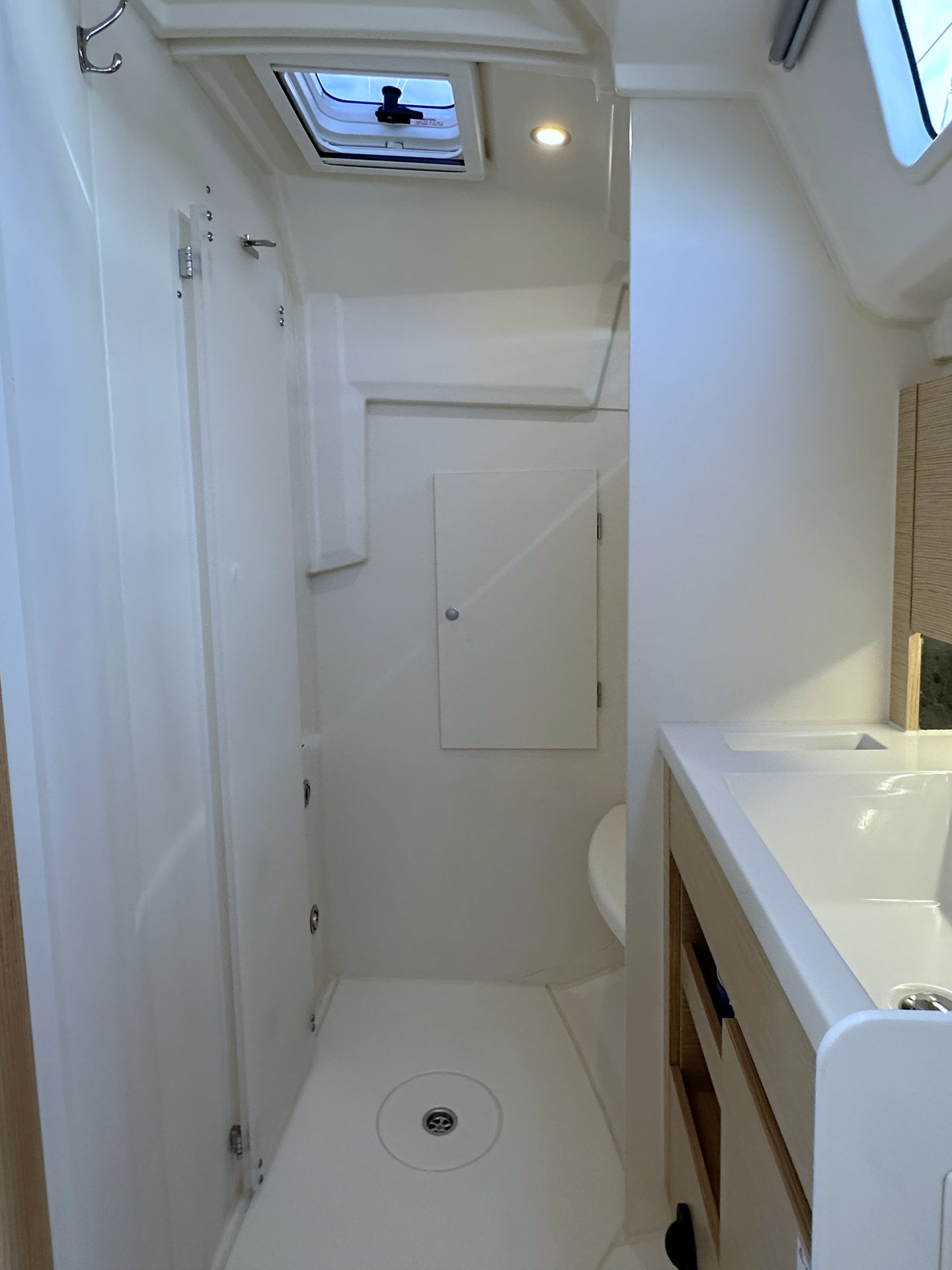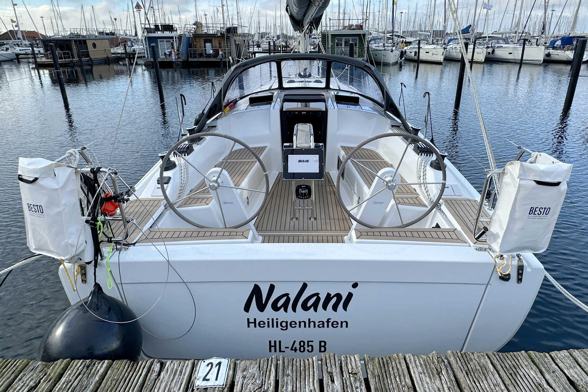 | Outside | 220 V-Landanschluss, Bootshaken, Cockpittisch, elektr. Ankerwinsch, Fender, Festmacherleinen, Sprayhood, Teak auf Badeplattform, Teak im Cockpit, Wantenschneider |