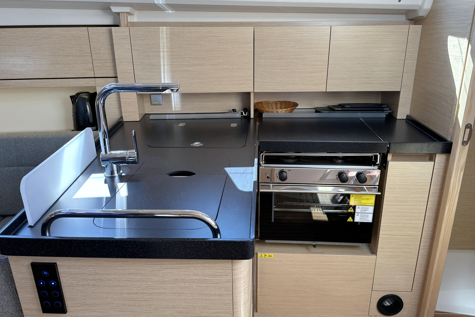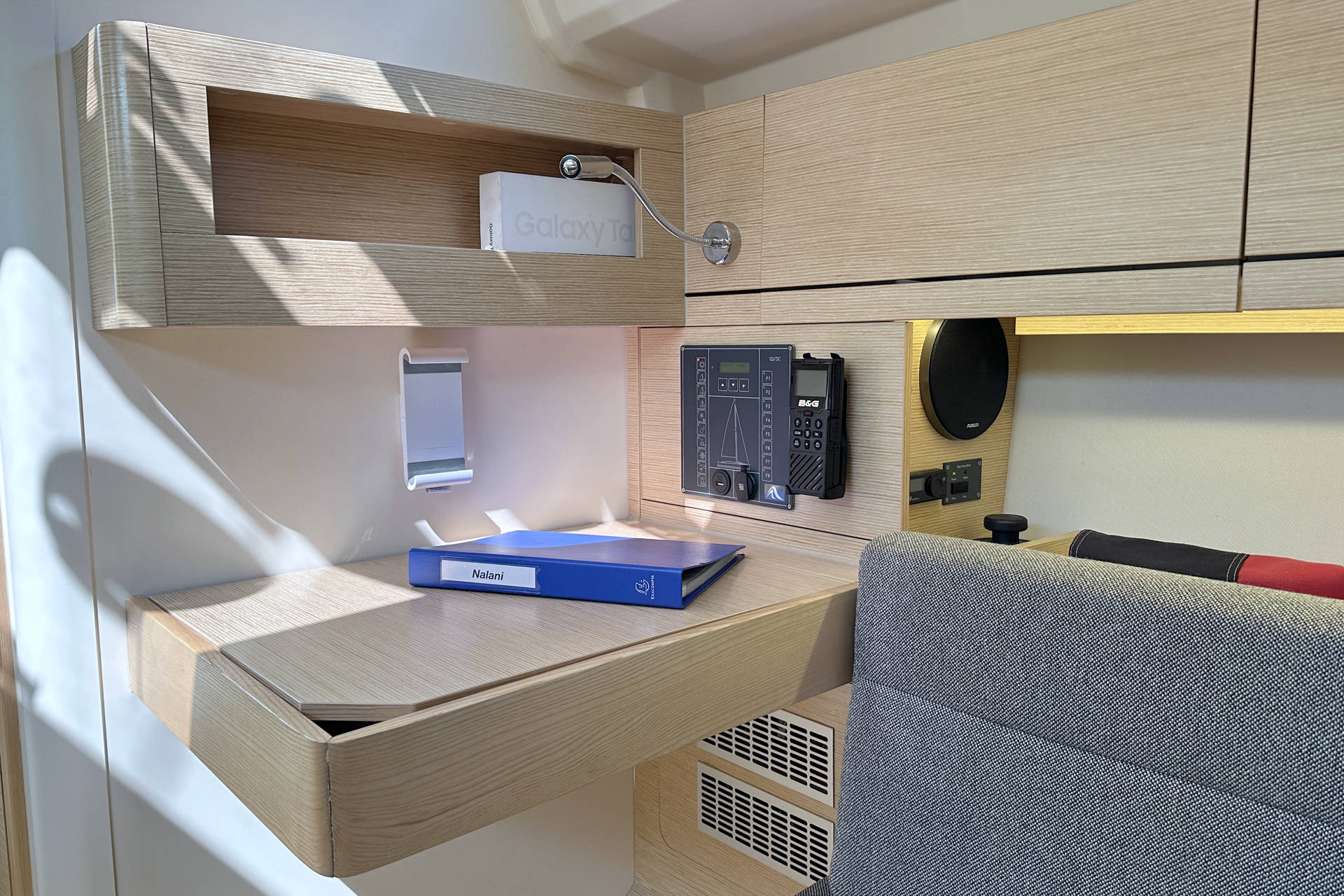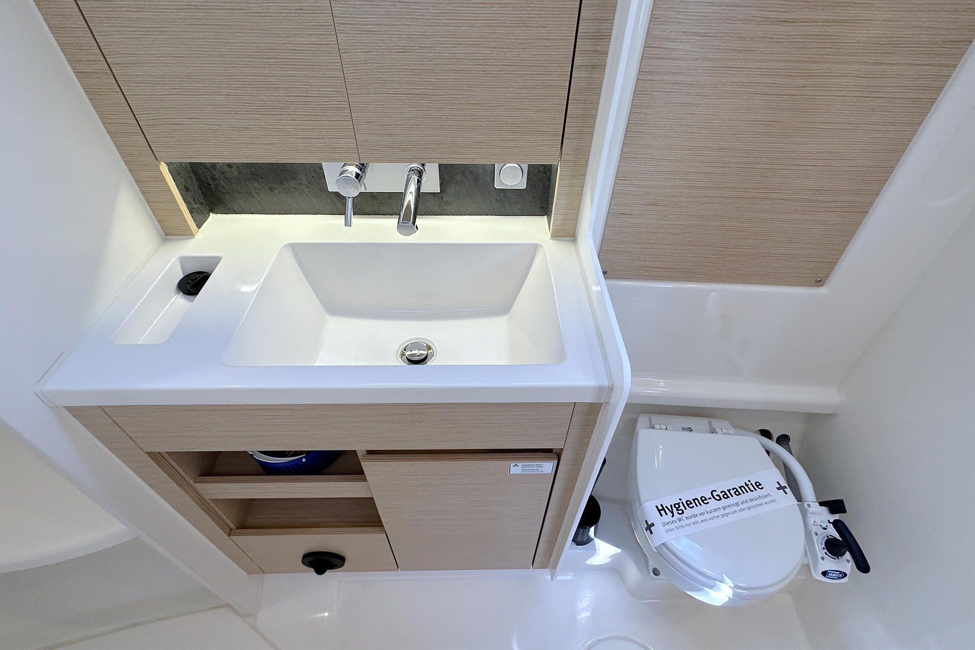 | Inside | 12V Steckdose, 220V Steckdosen, Backofen, Borduhr, Diesel-Heizung, Druckwasser, elektrische Kühlbox, FUSION Sound System, Gasherd, Inverter 12V/220V, Ladegerät, Landstromkabel, Nespresso-Maschine, Pantryausstattung, Radio mit Bluetooth, Warmwasser |