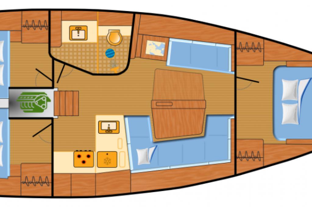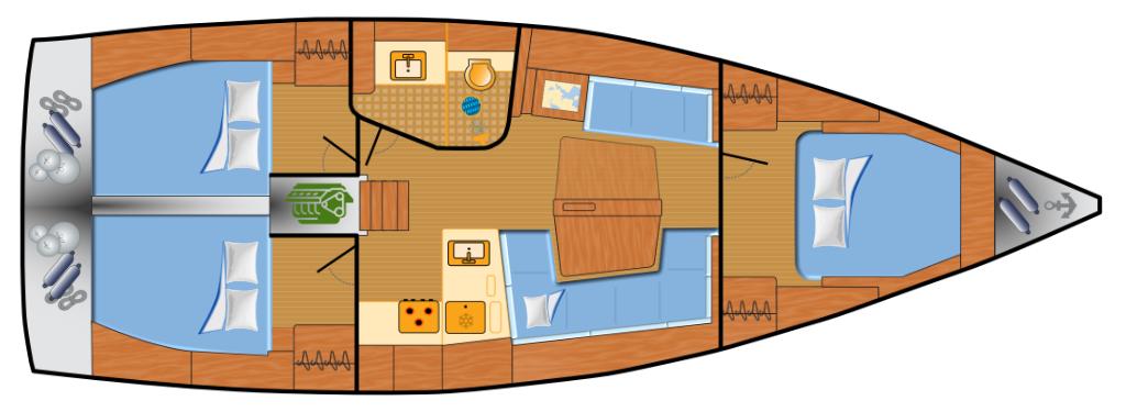 | Kabinen: | 3 | Kojen: | 6+2 |