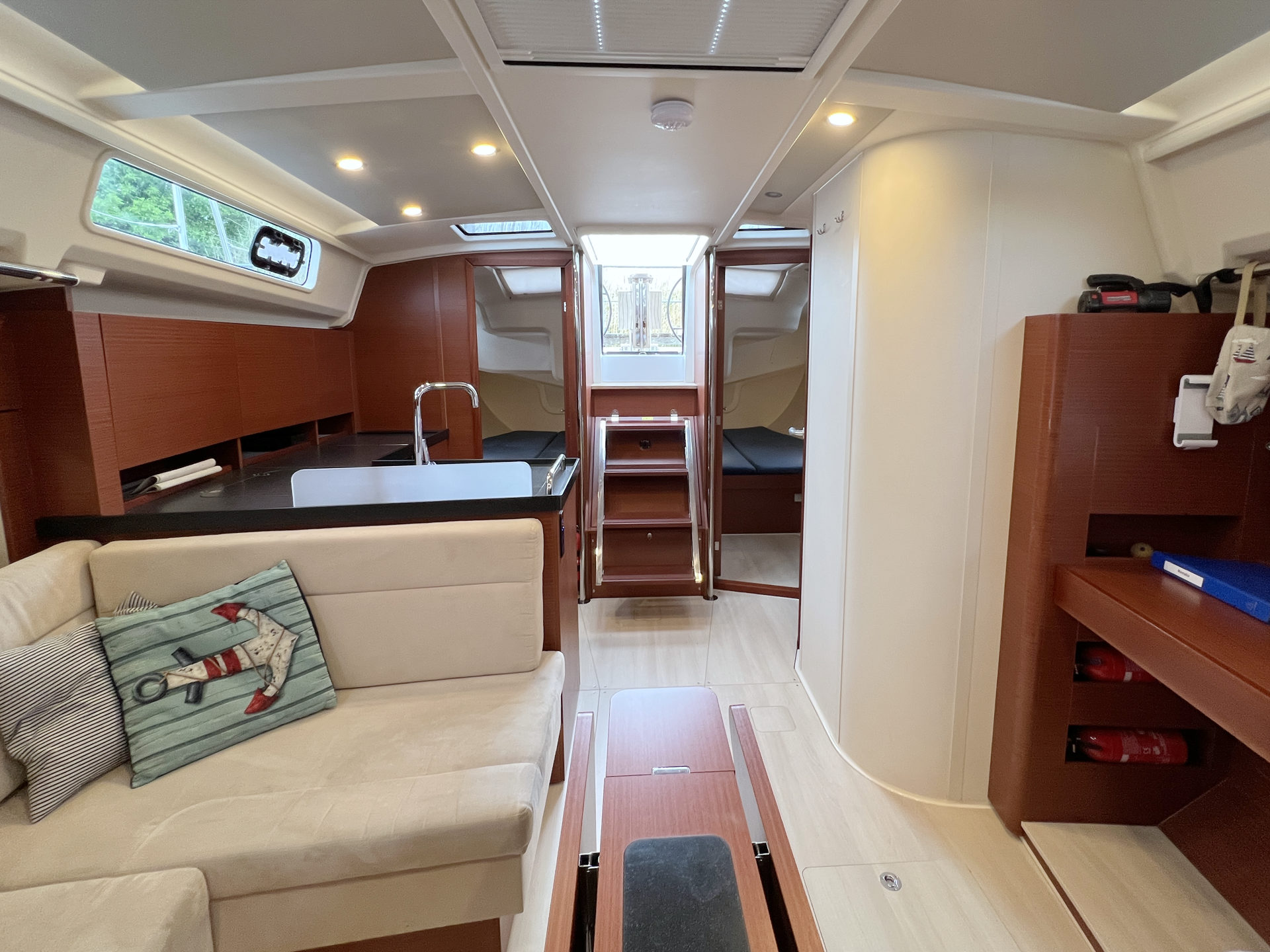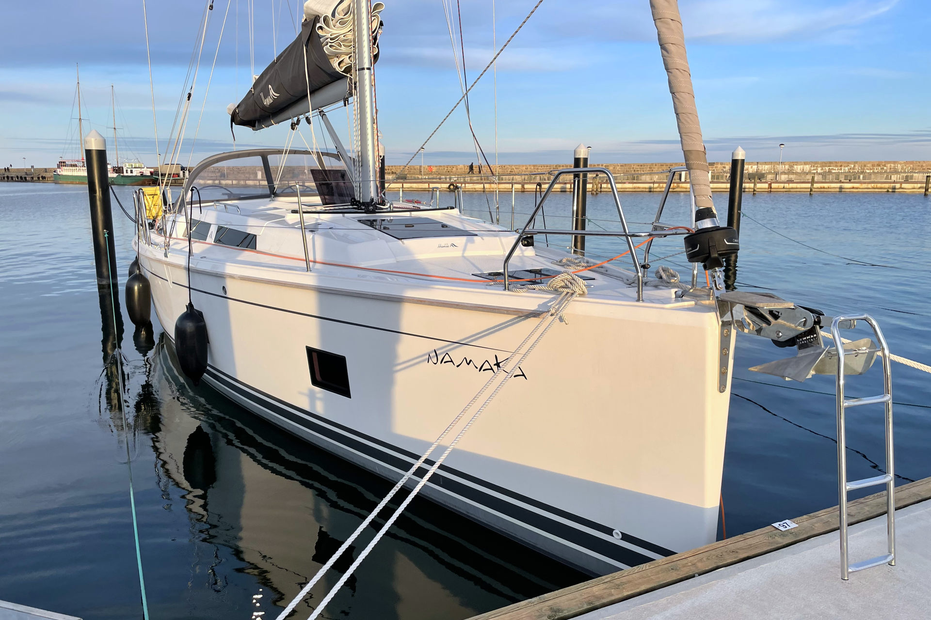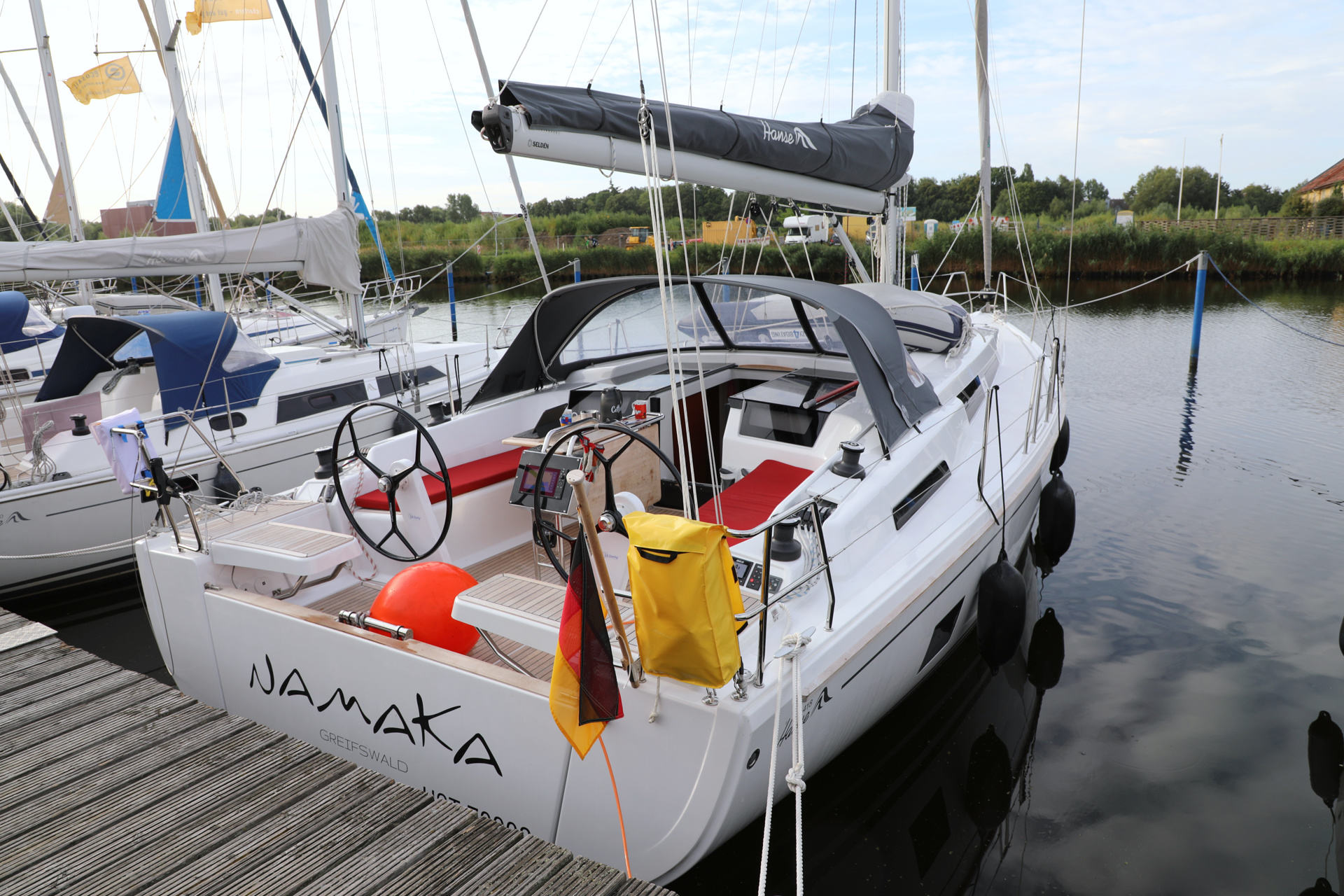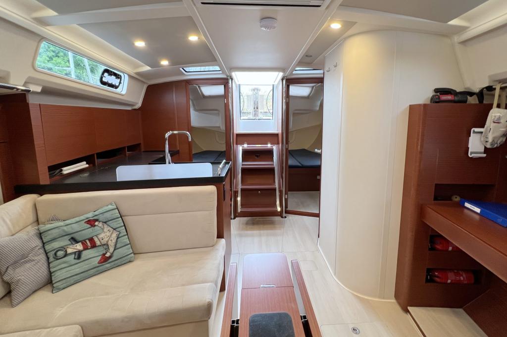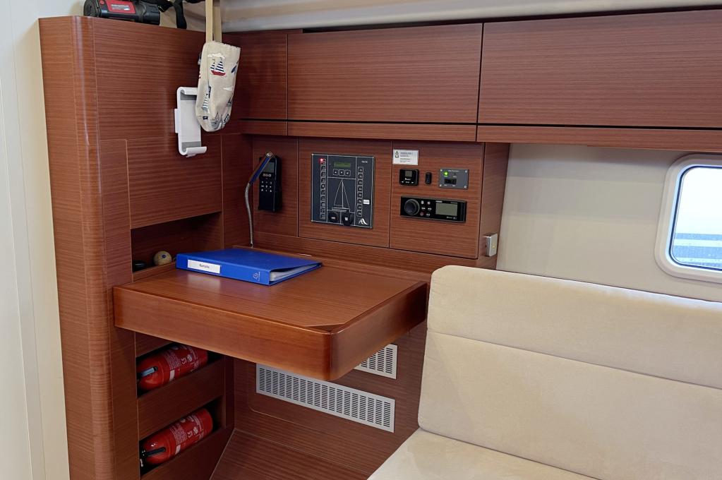 | Safety | AIS Empfänger, Ankerball, Ankerlicht, Automatikwesten, Autopilot, Bilgepumpe, Bootsmannstuhl, Bordwerkzeug, Bugstrahlruder, Feuerlöscher, Flaggen, Handscheinwerfer, Rettungsinsel, UKW-Funk, Zweitanker |