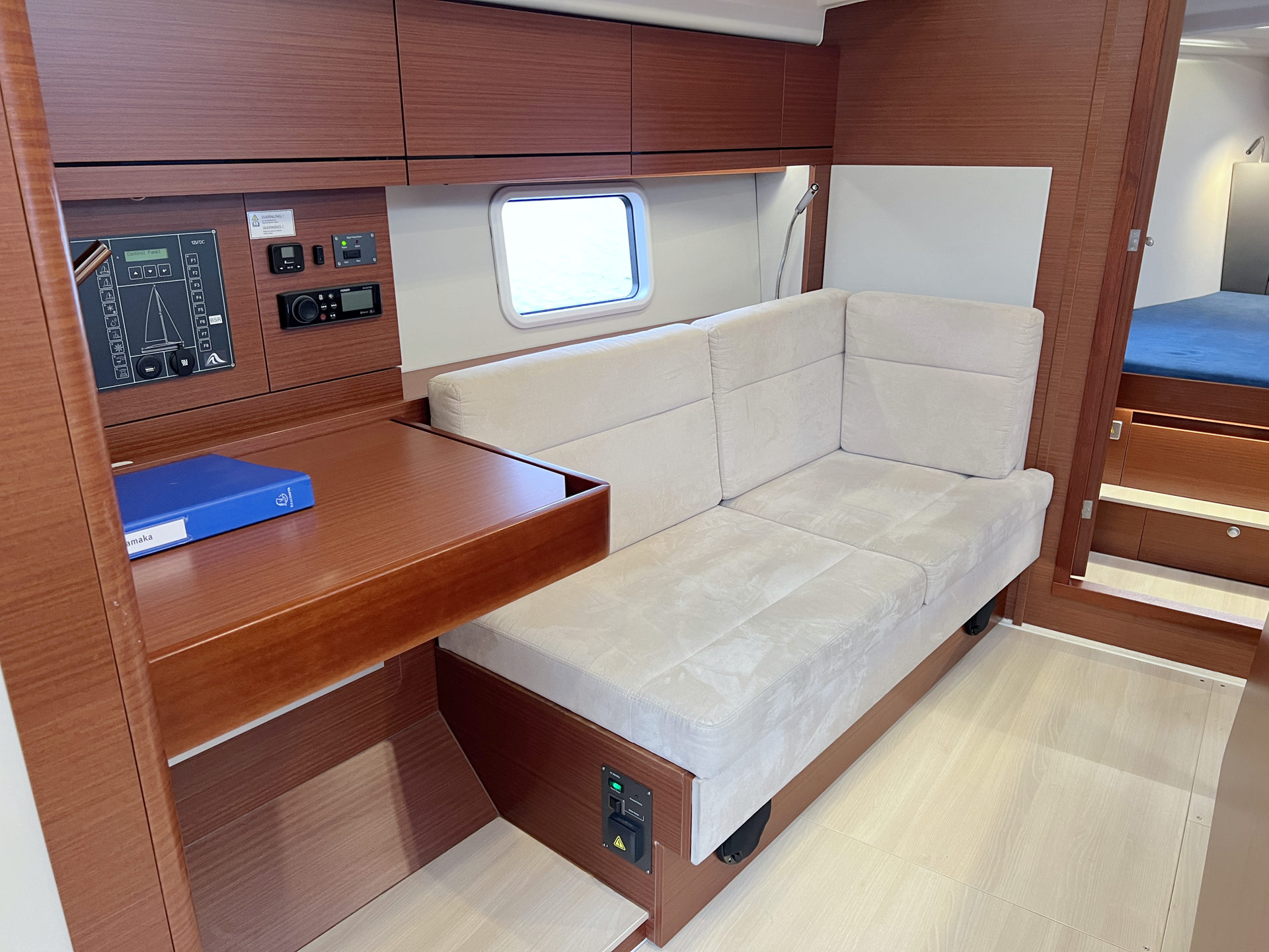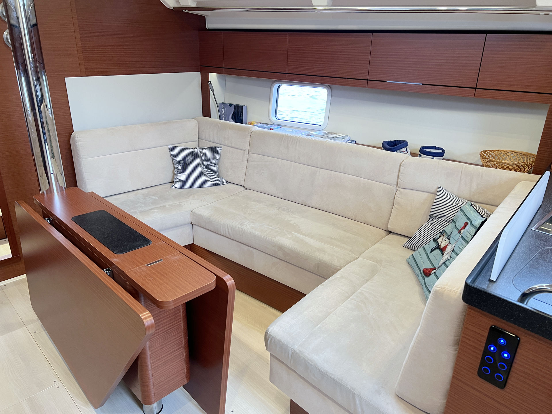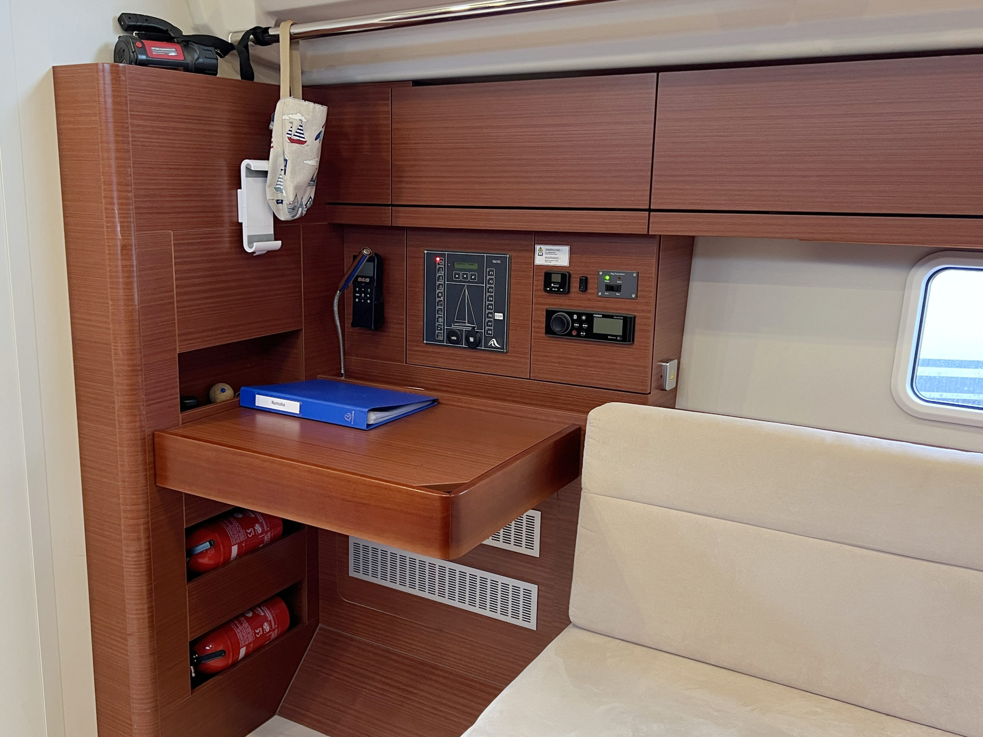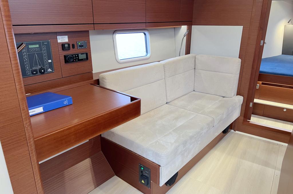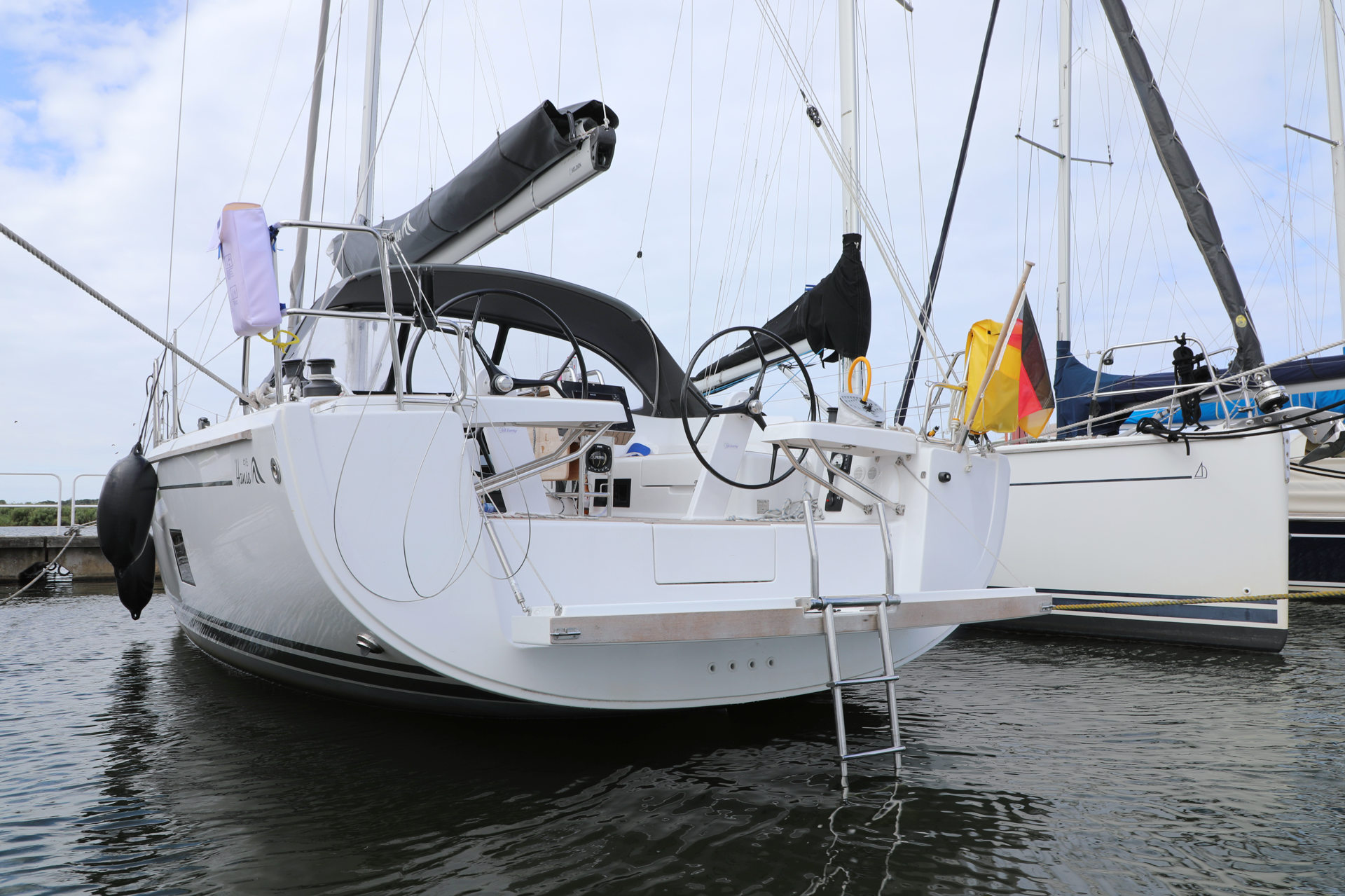 | Safety | AIS Empfänger, Ankerball, Ankerlicht, Automatikwesten, Autopilot, Bilgepumpe, Bootsmannstuhl, Bordwerkzeug, Bugstrahlruder, Feuerlöscher, Flaggen, Handscheinwerfer, Rettungsinsel, UKW-Funk, Zweitanker |