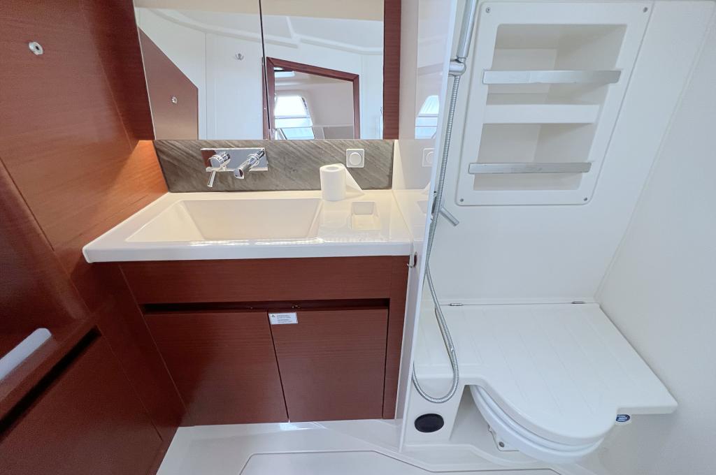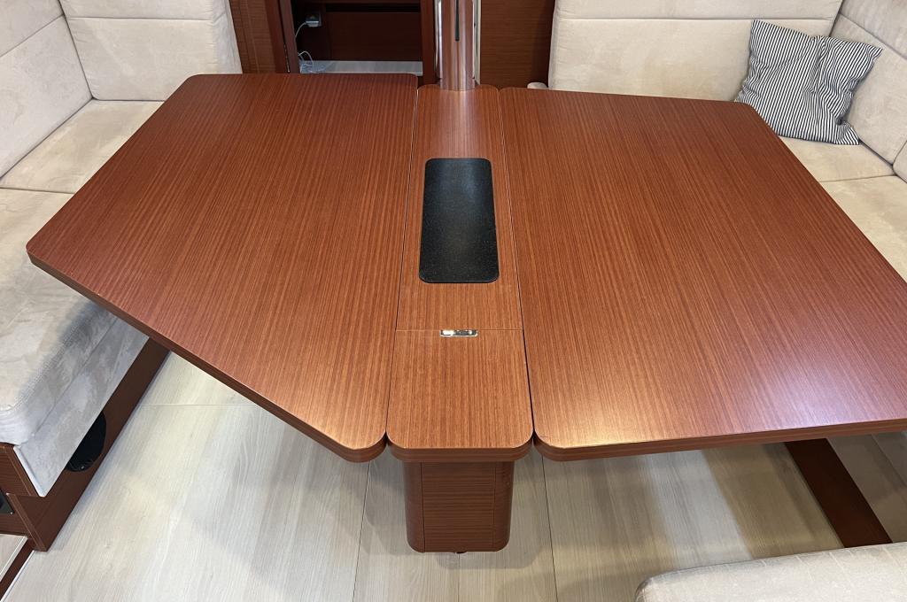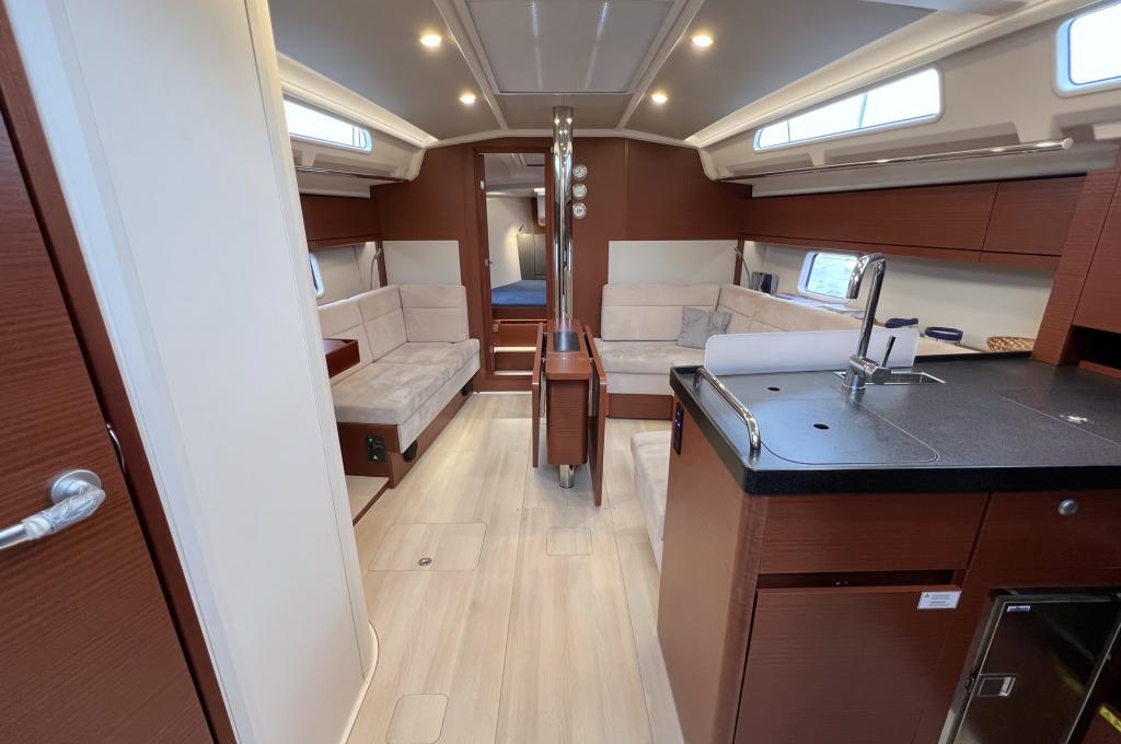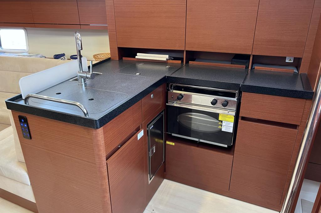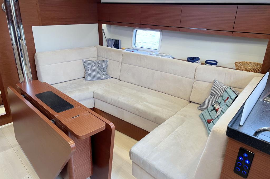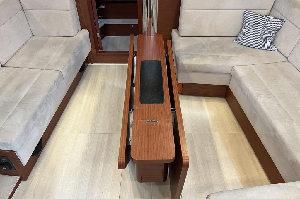 | Outside | Anker mit Kette, Badeplattform, Bootshaken, Bugkorb, Cockpitdusche warm/kalt, Cockpittisch, Deckbürste, elektr. Ankerwinsch, Fender, Fernsteuerung für elektr. Ankerwinsch, Festmacherleinen, Sprayhood |