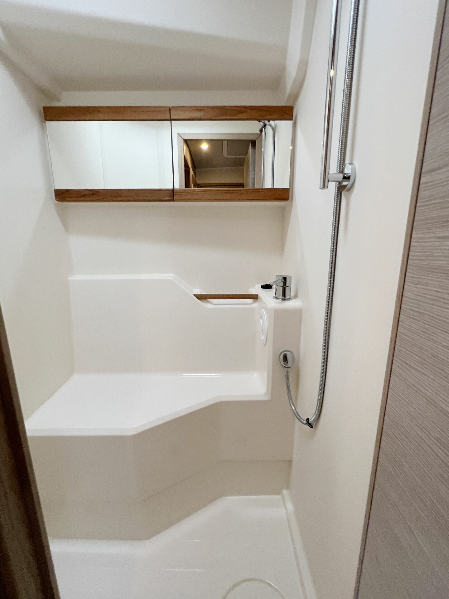 | Outside | Badeplattform, Cockpitdusche warm/kalt, Cockpitlautsprecher, Cockpitpolster, elektr. Ankerwinsch, Faltpropeller, Flexi Teek-Deck, Sprayhood |