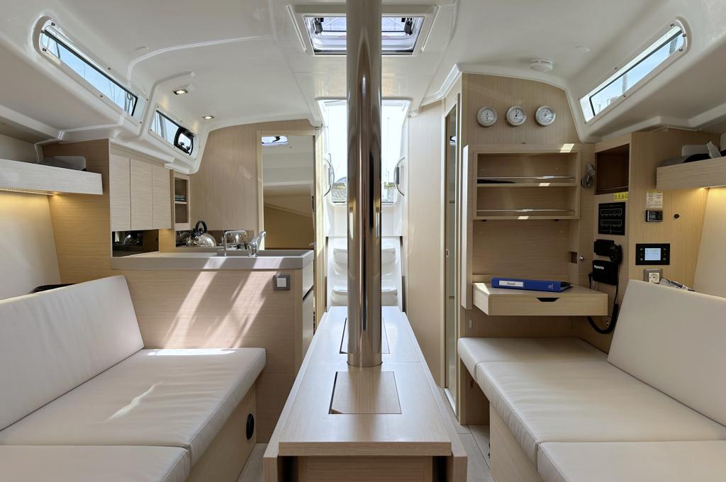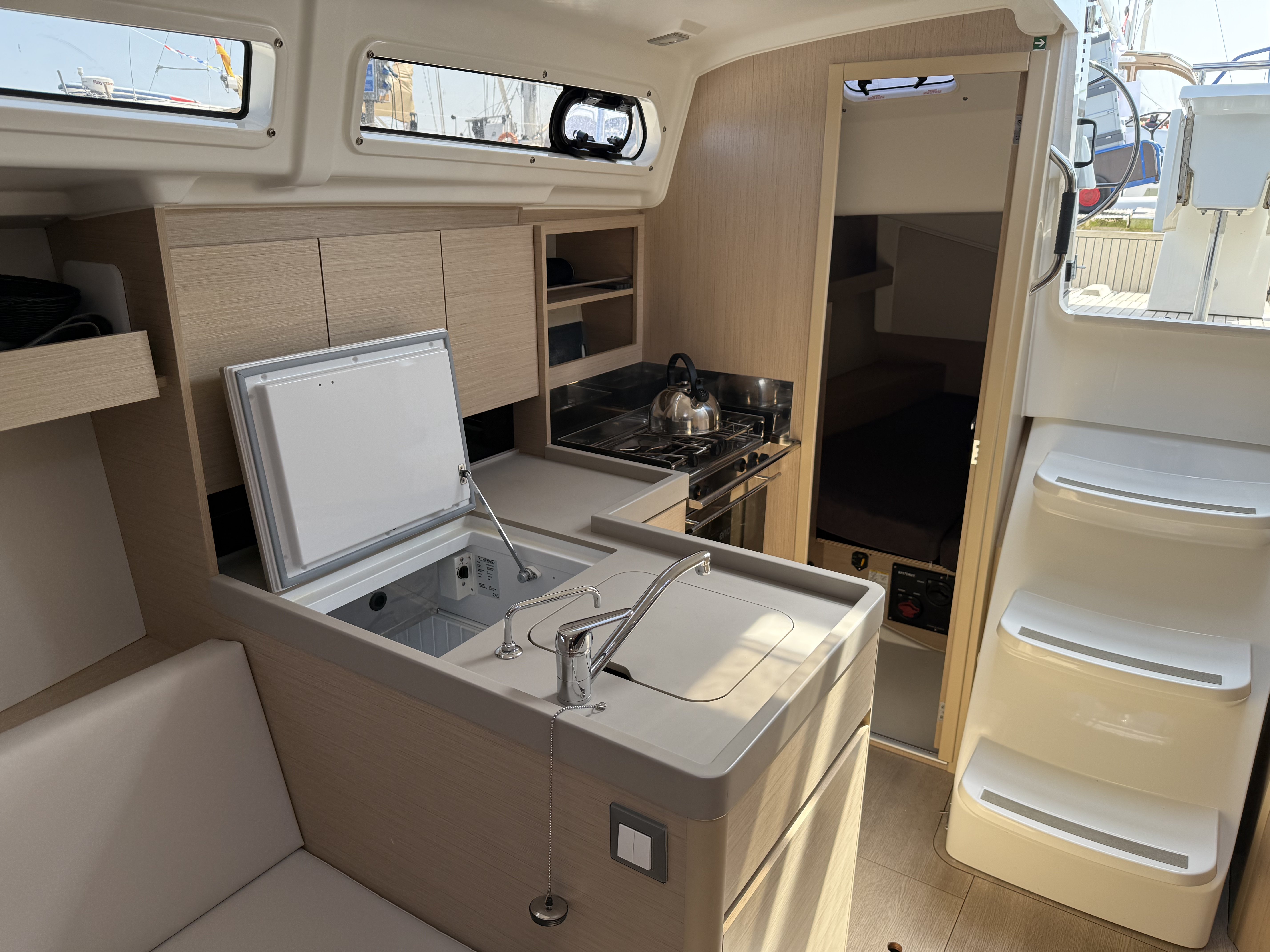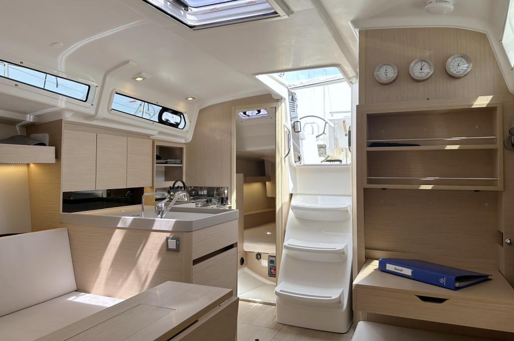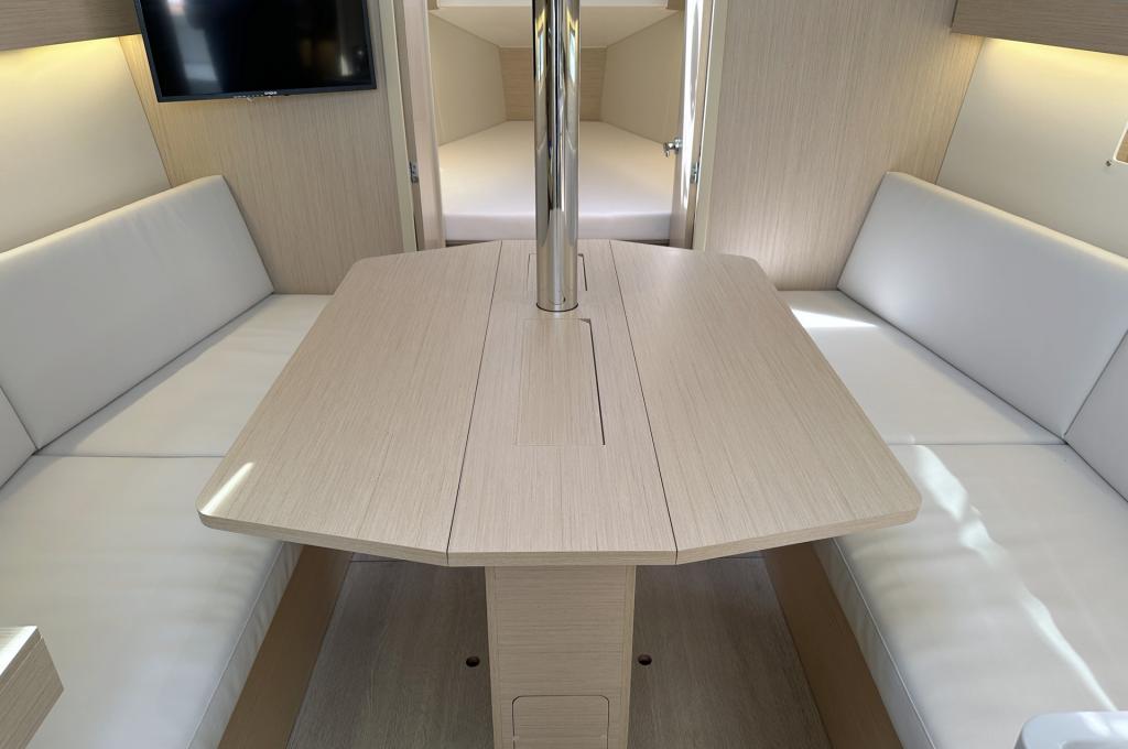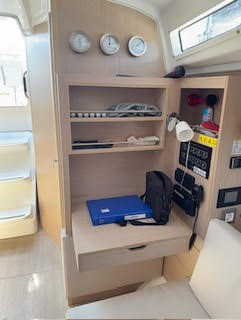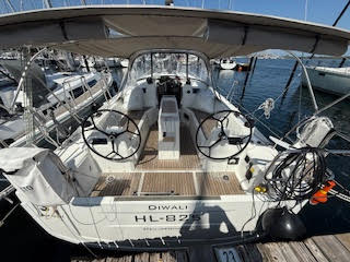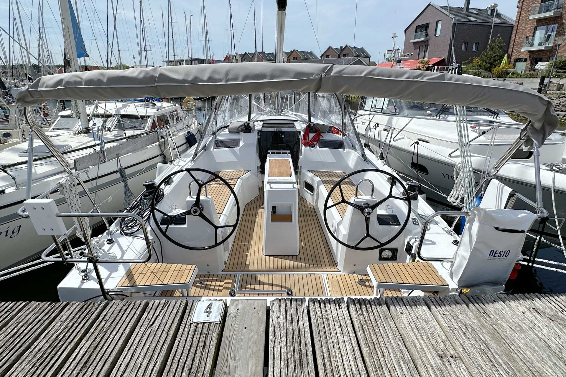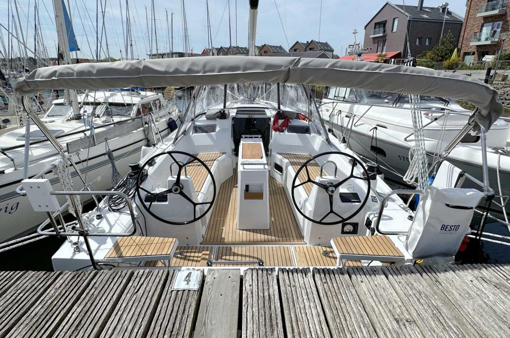 | Outside | Badeplattform, Biminitop, Bootshaken, Cockpitdusche warm/kalt, Cockpittisch, Elektr. Ankerwinsch mit Kettenzähler, Teak auf Badeplattform, Teak im Cockpit |