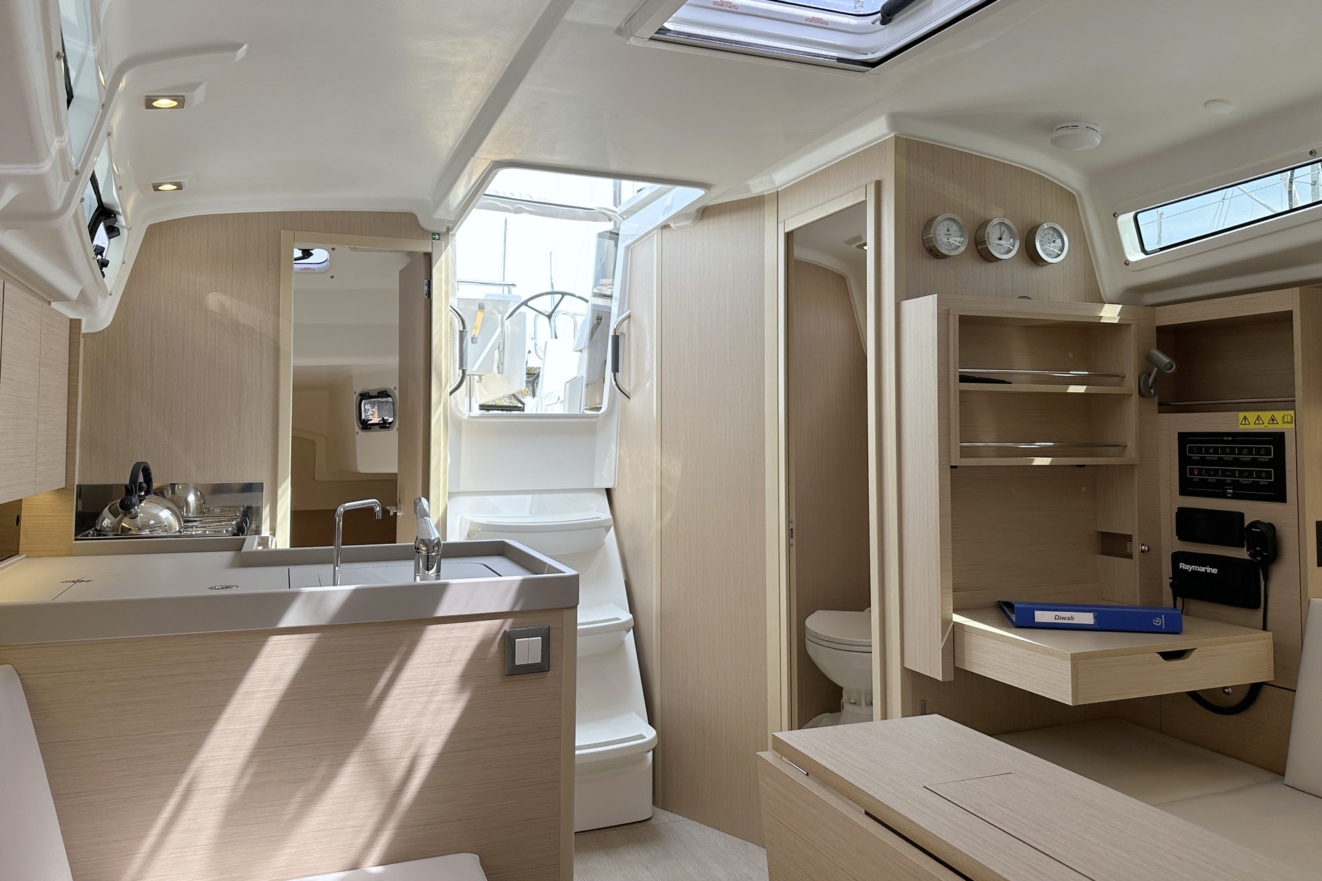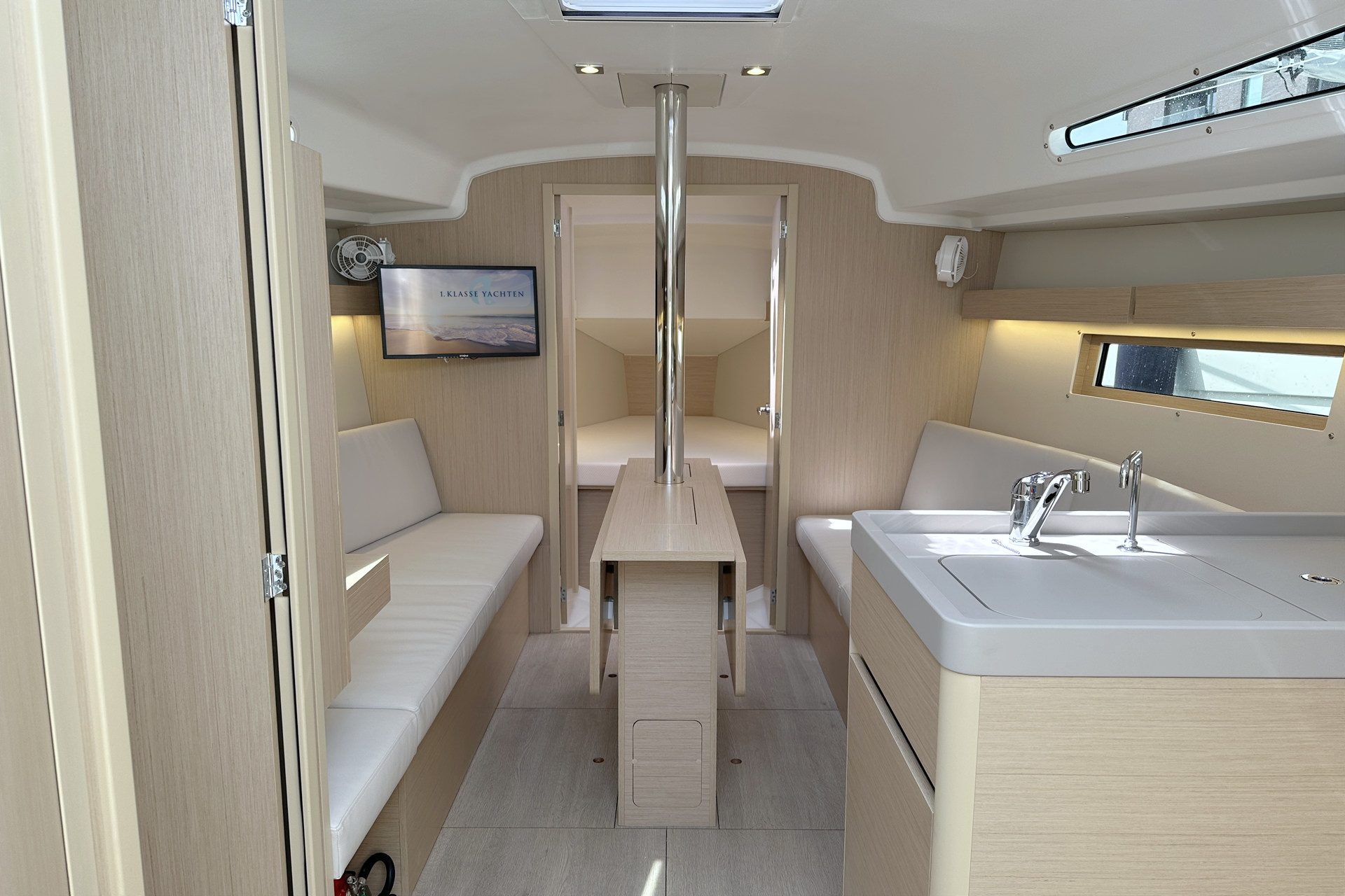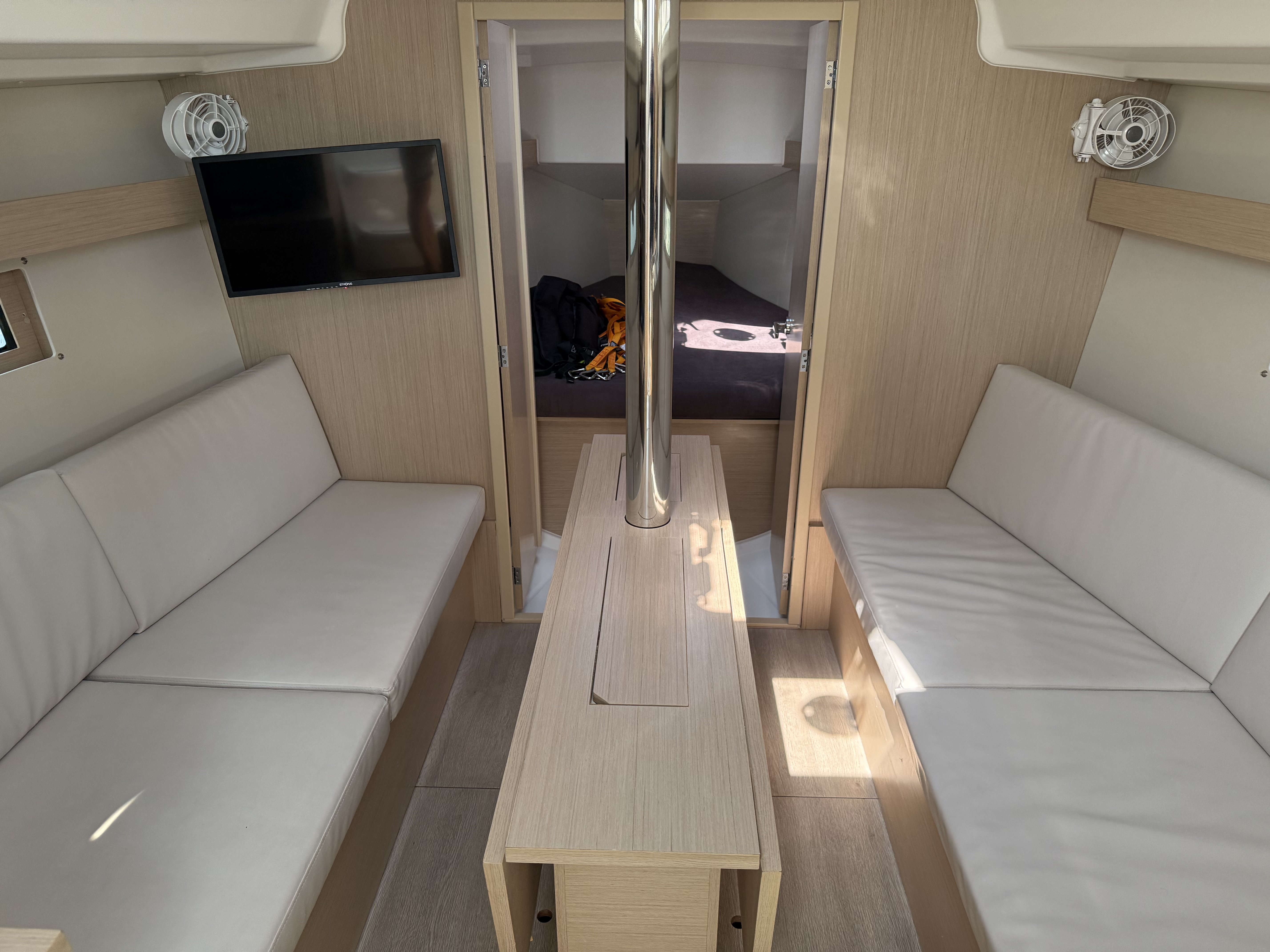 | Inside | Heizung, Ladegerät, Pantryausstattung, Tablet PC, TV mit DVBT, USB Steckdosen in Salon und Kabinen, Warmwasser, WC (elektr.) |