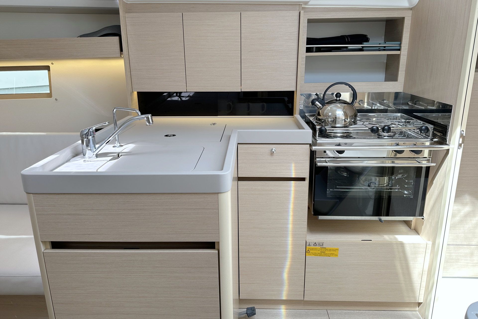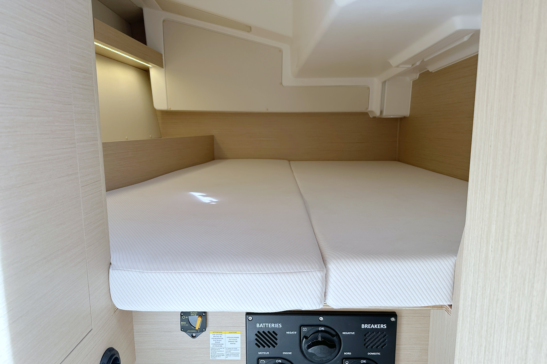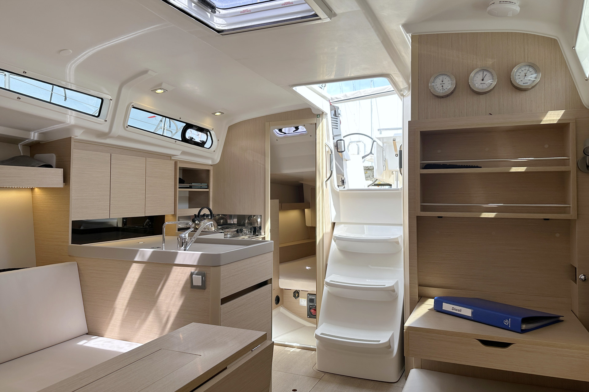 | Inside | Heizung, Ladegerät, Pantryausstattung, Tablet PC, TV mit DVBT, USB Steckdosen in Salon und Kabinen, Warmwasser, WC (elektr.) |