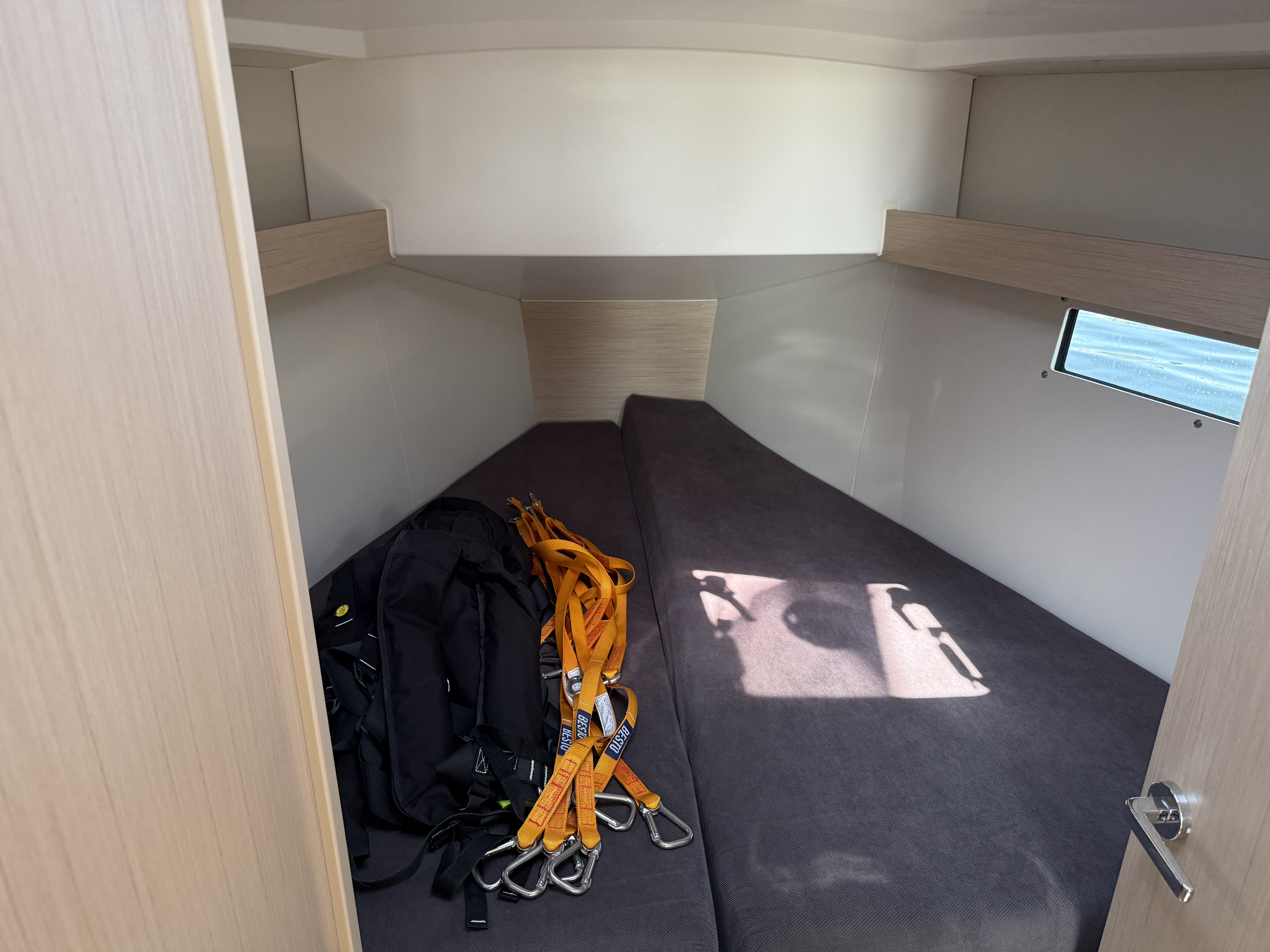| Safety | AIS Empfänger, AIS-Sender, Automatikwesten, Autopilot, Bordapotheke, Bugstrahlruder, Rettungsinsel, Sicherheitsausrüstung, UKW-Funk |