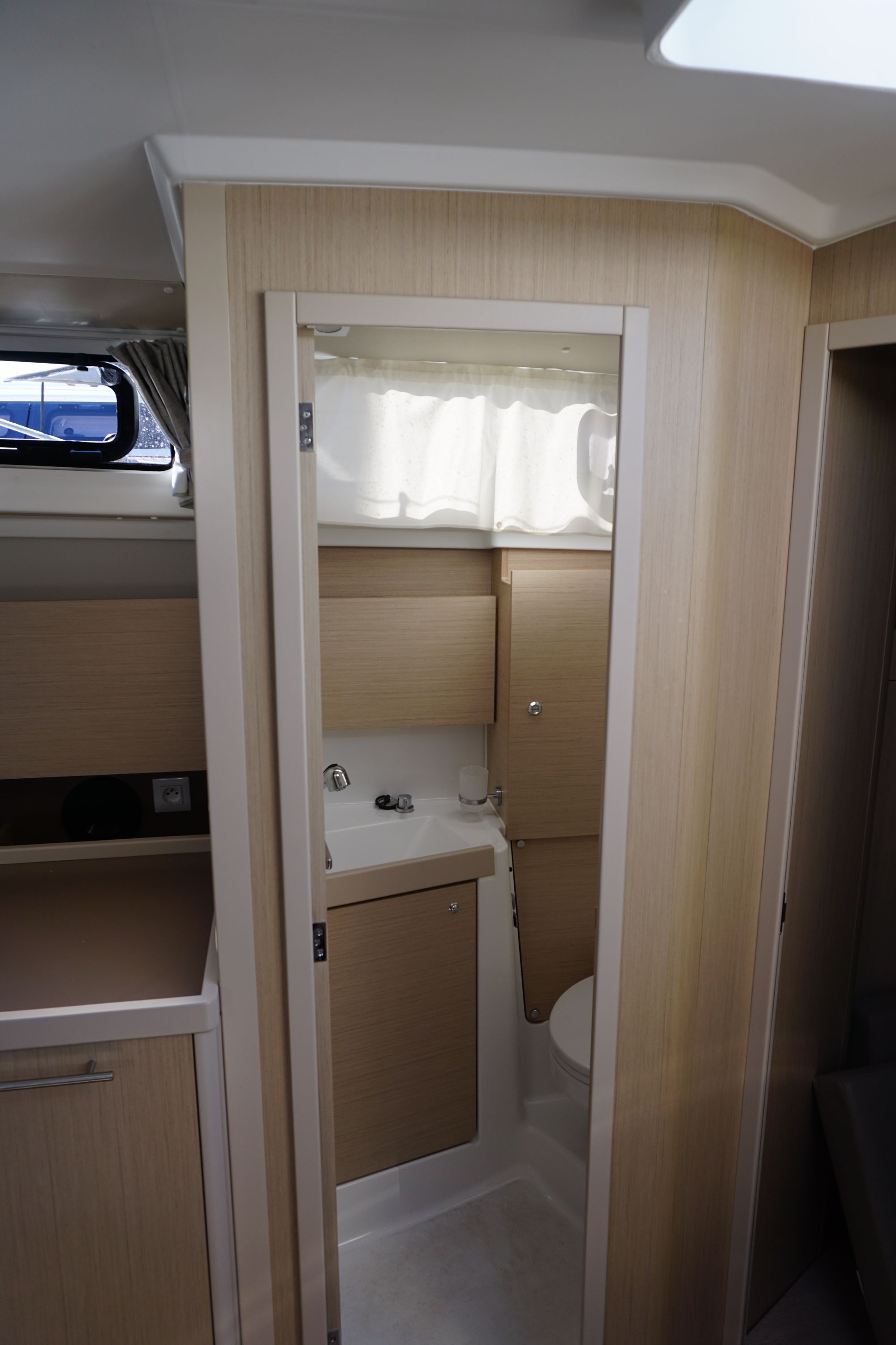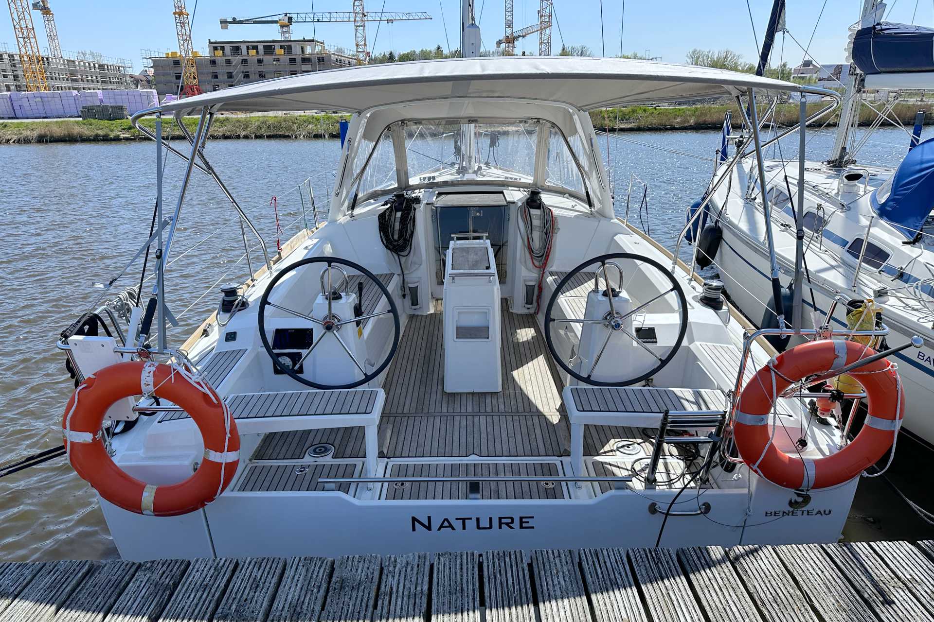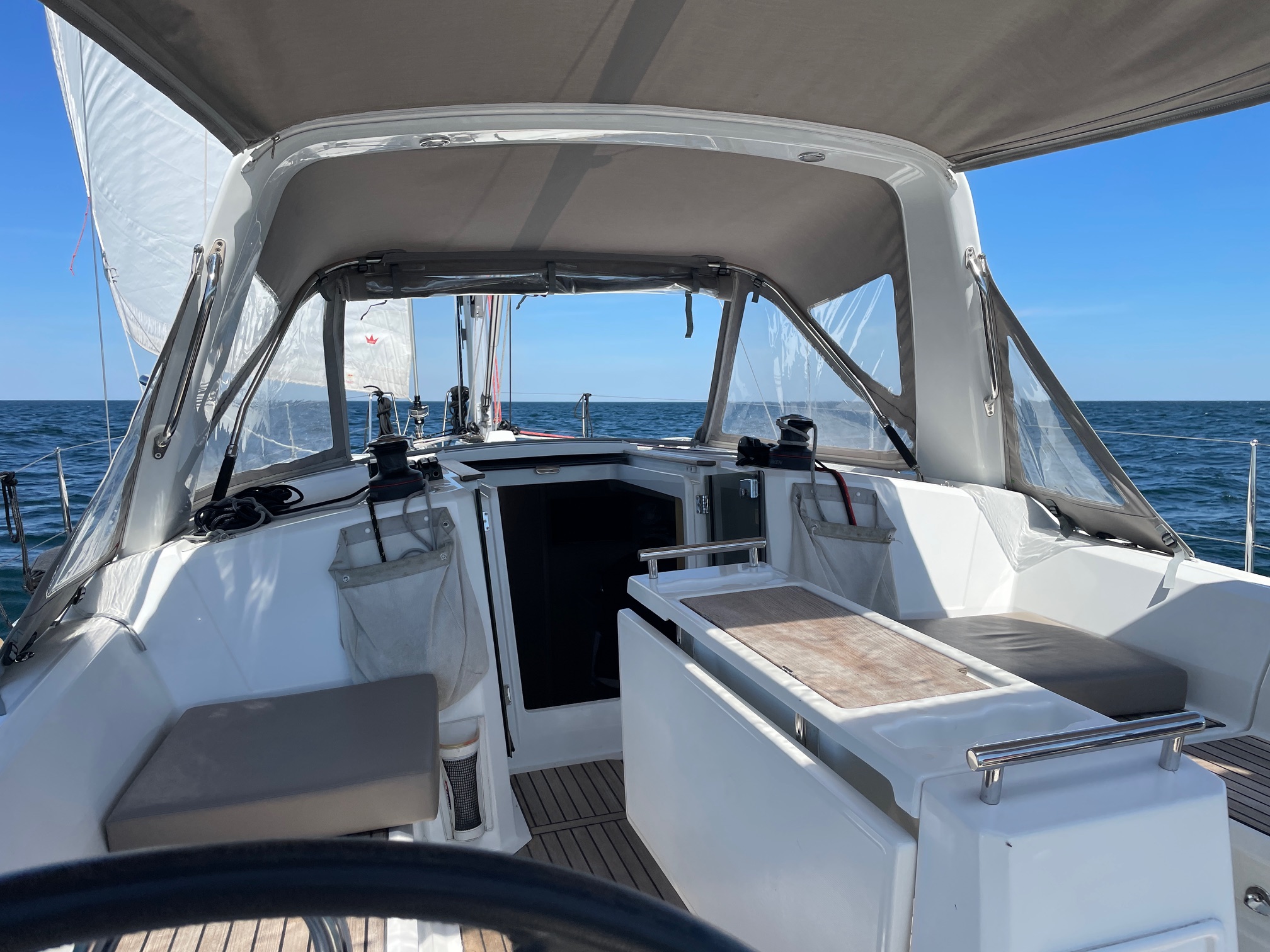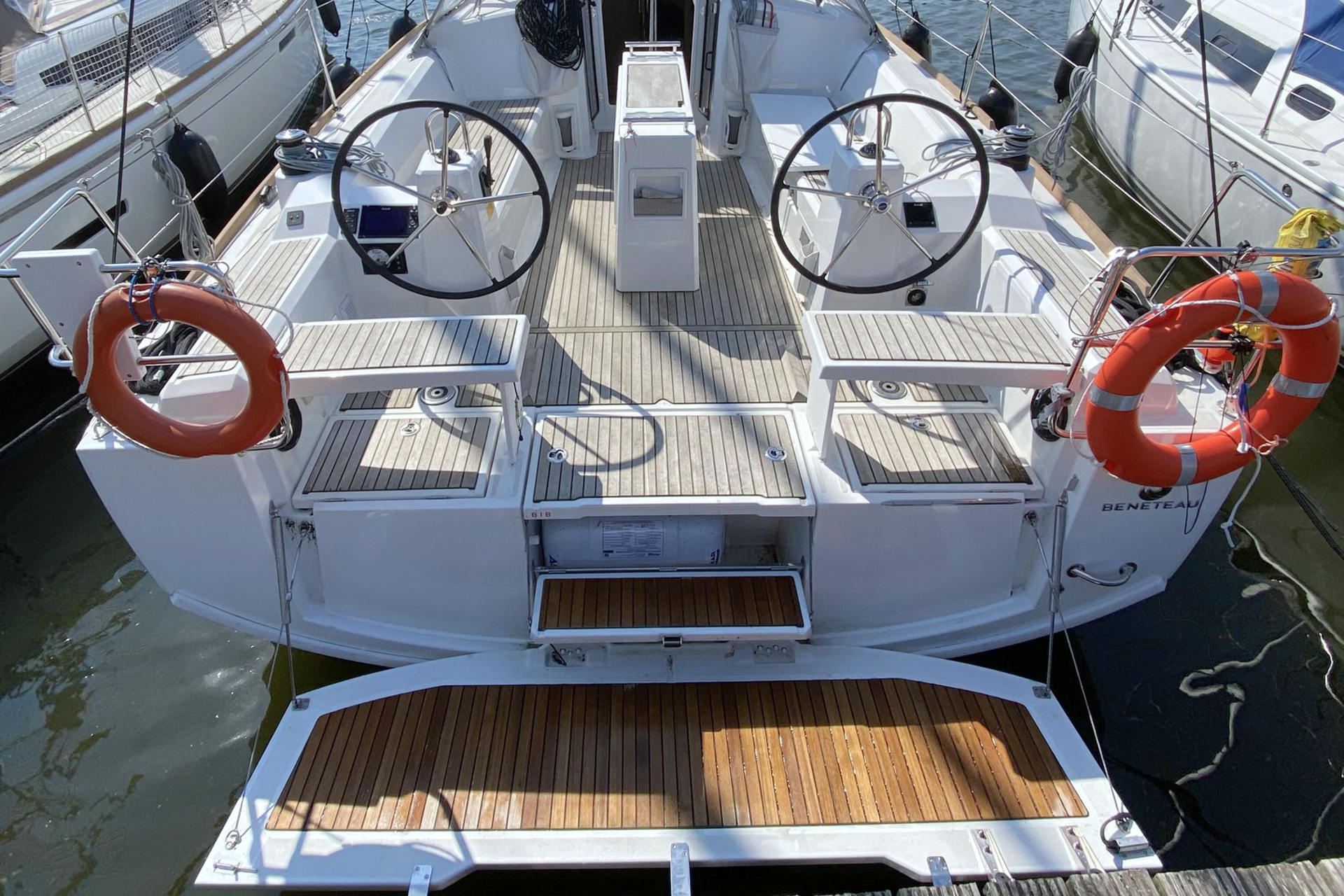 | Outside | Badeplattform, Biminitop, Bootshaken, Bugkorb, Cockpitdusche warm/kalt, Cockpitlautsprecher, Cockpittisch, Deckbürste, elektr. Ankerwinsch, Fender, Fernsteuerung für elektr. Ankerwinsch, Festmacherleinen, Seereling, Sprayhood, Teak im Cockpit, Wantenschneider |