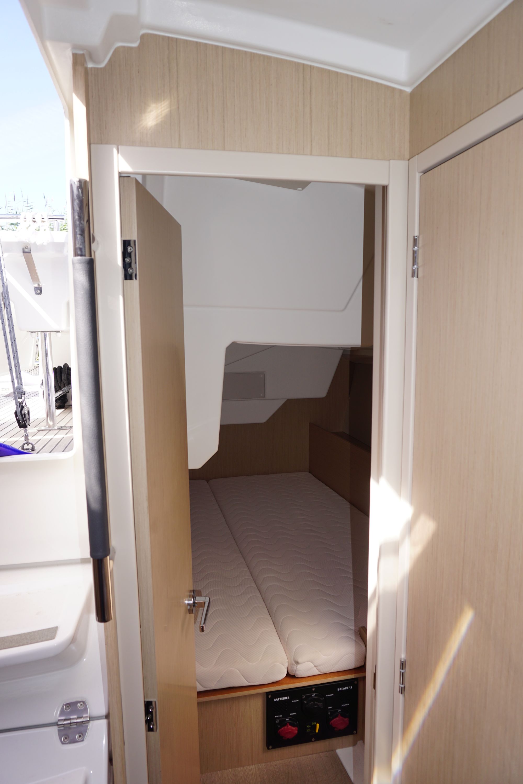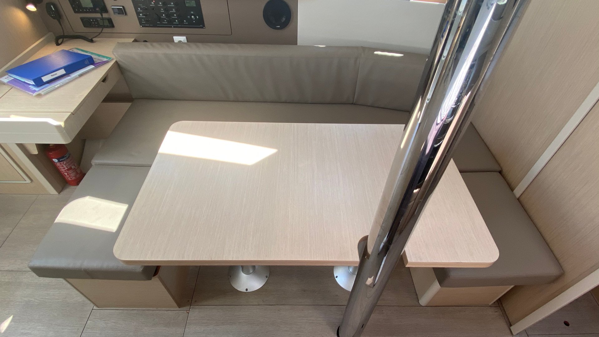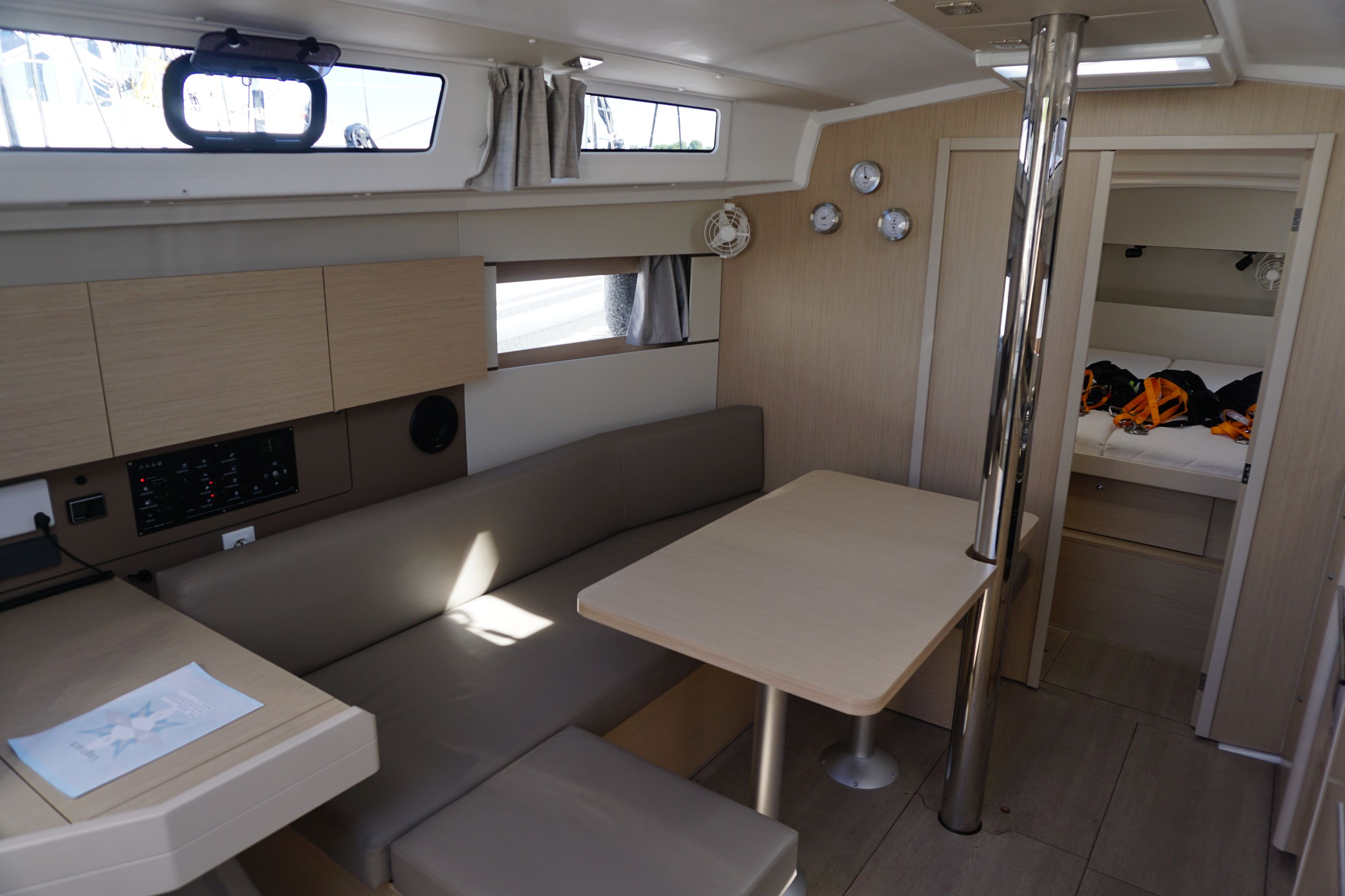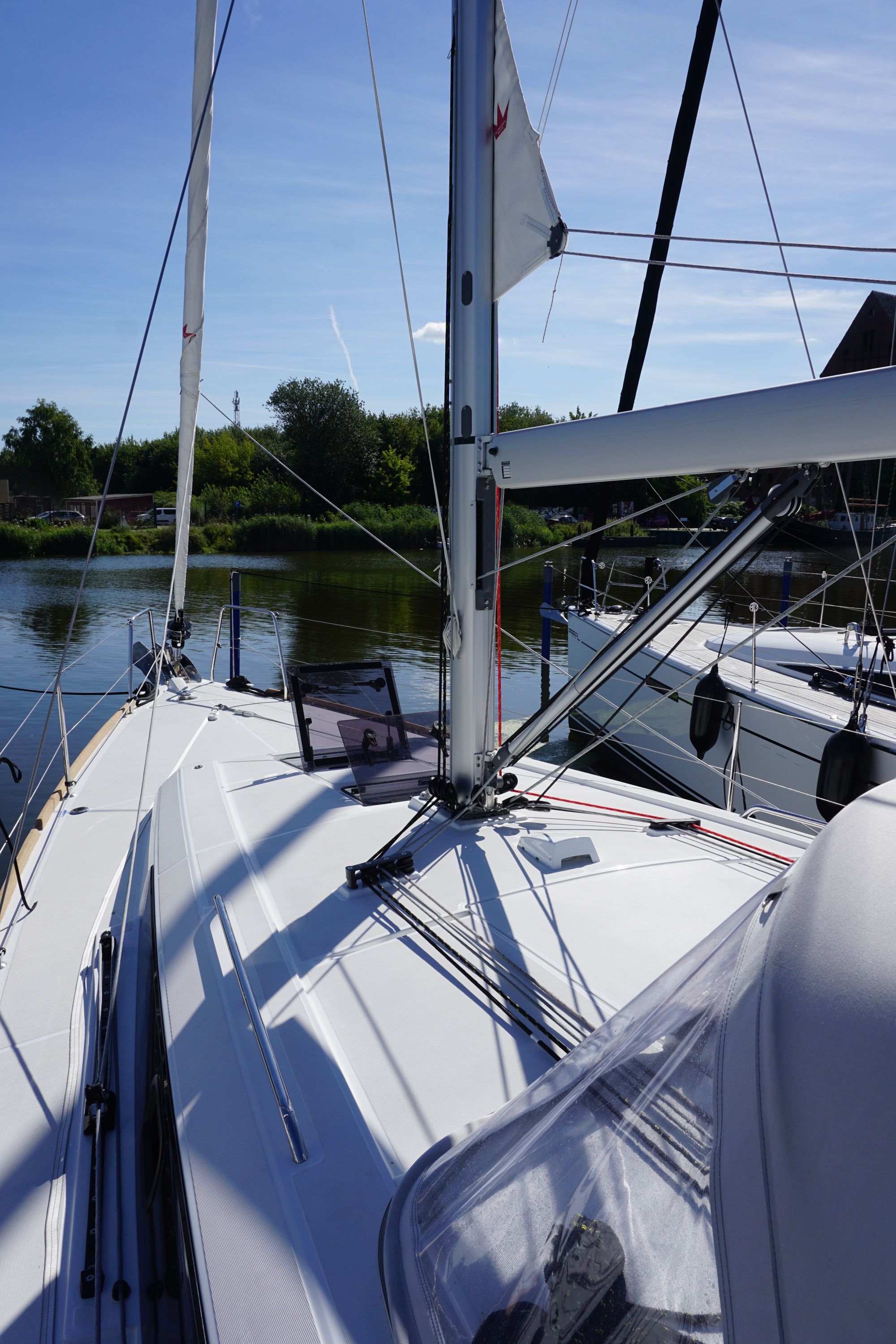| Outside | Badeplattform, Biminitop, Bootshaken, Bugkorb, Cockpitdusche warm/kalt, Cockpitlautsprecher, Cockpittisch, Deckbürste, elektr. Ankerwinsch, Fender, Fernsteuerung für elektr. Ankerwinsch, Festmacherleinen, Seereling, Sprayhood, Teak im Cockpit, Wantenschneider |
