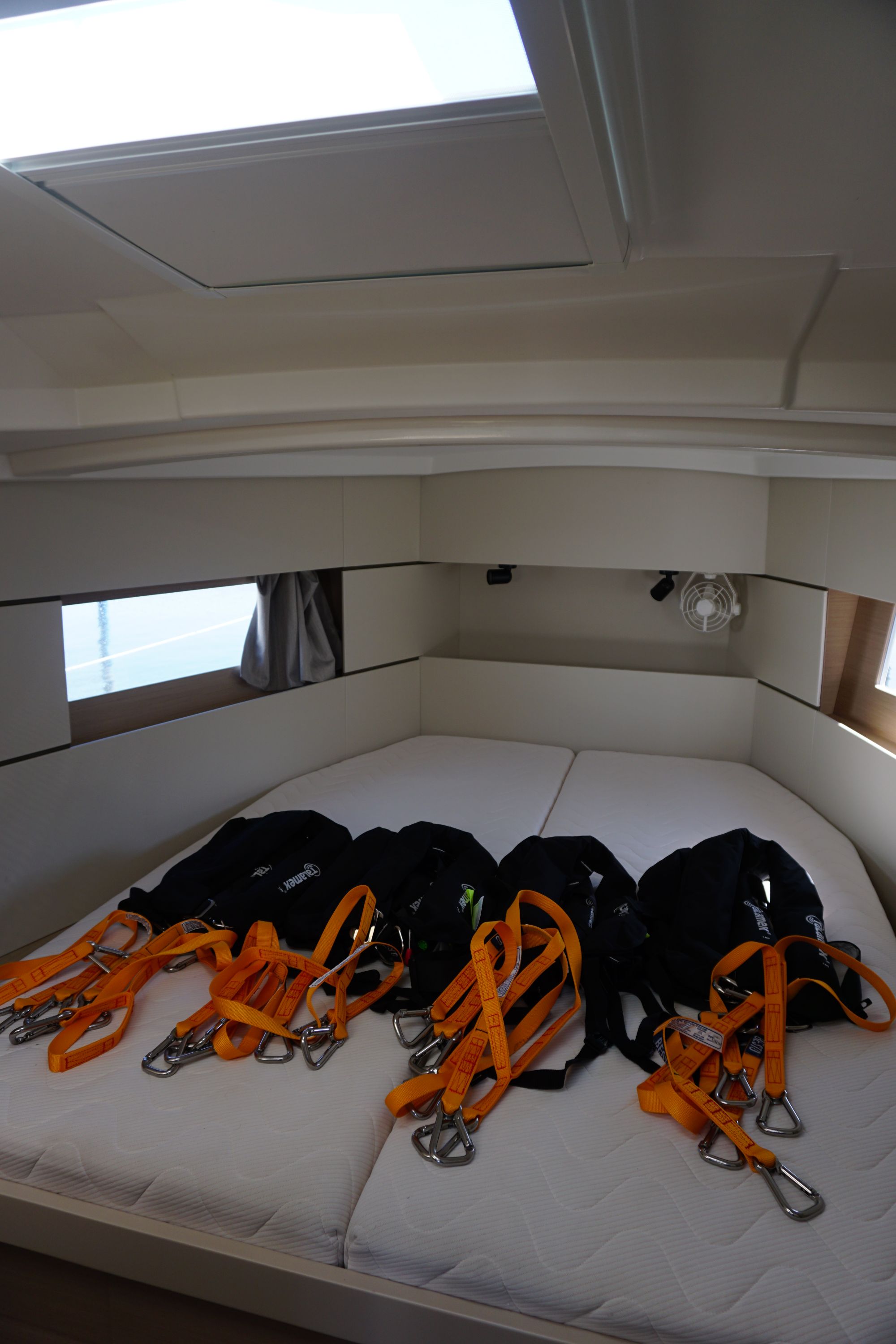 | Safety | AIS Empfänger, Ankerball, Automatikwesten, Autopilot, Bootsmannstuhl, Bordapotheke, Bordwerkzeug, Bugstrahlruder, Feuerlöscher, Handscheinwerfer, Nebelhorn, Rettungsinsel, Rettungsring, UKW-Funk, Zweitanker |
