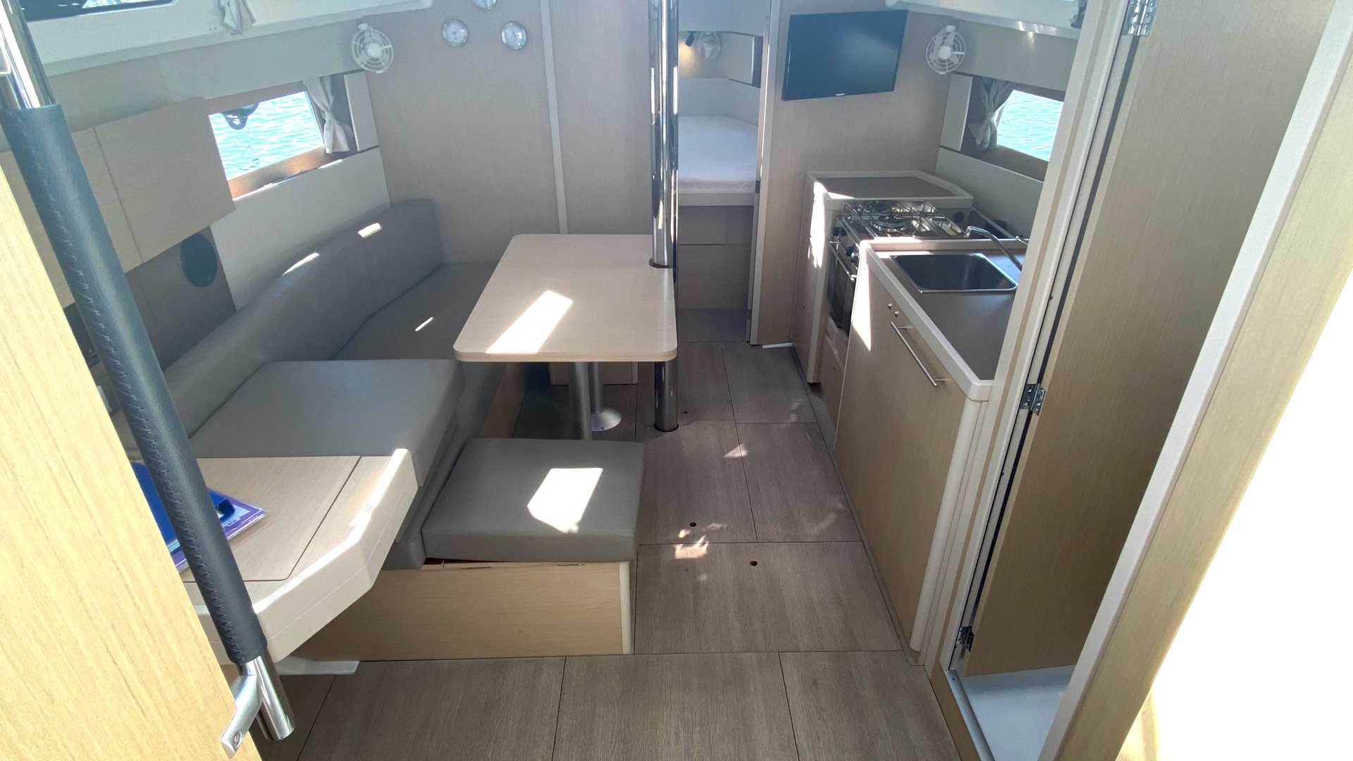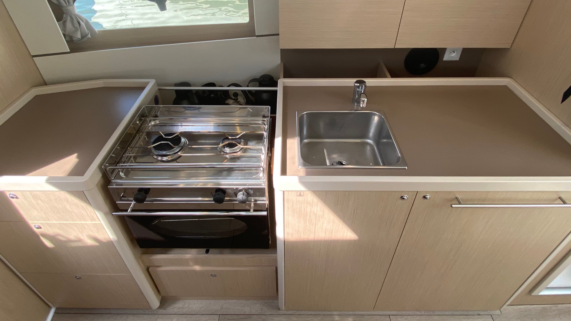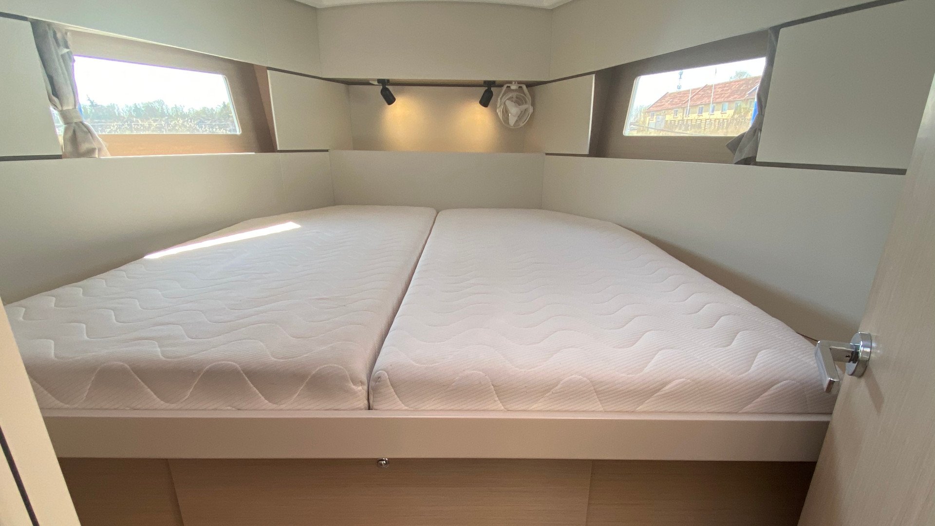 | Inside | 12V Steckdose, 220V Steckdosen, Backofen, Borduhr, Diesel-Heizung, DVB-T, elektr. Druckwasserpumpe, elektrische Kühlbox, FUSION Sound System, Gasherd, Ladegerät, Landstromkabel, Pantryausstattung, Salontisch absenkbar, Spülbecken, TV + DVD, Ventilatoren in Salon und Kabinen, Warmwasser, WC (elektr.) |