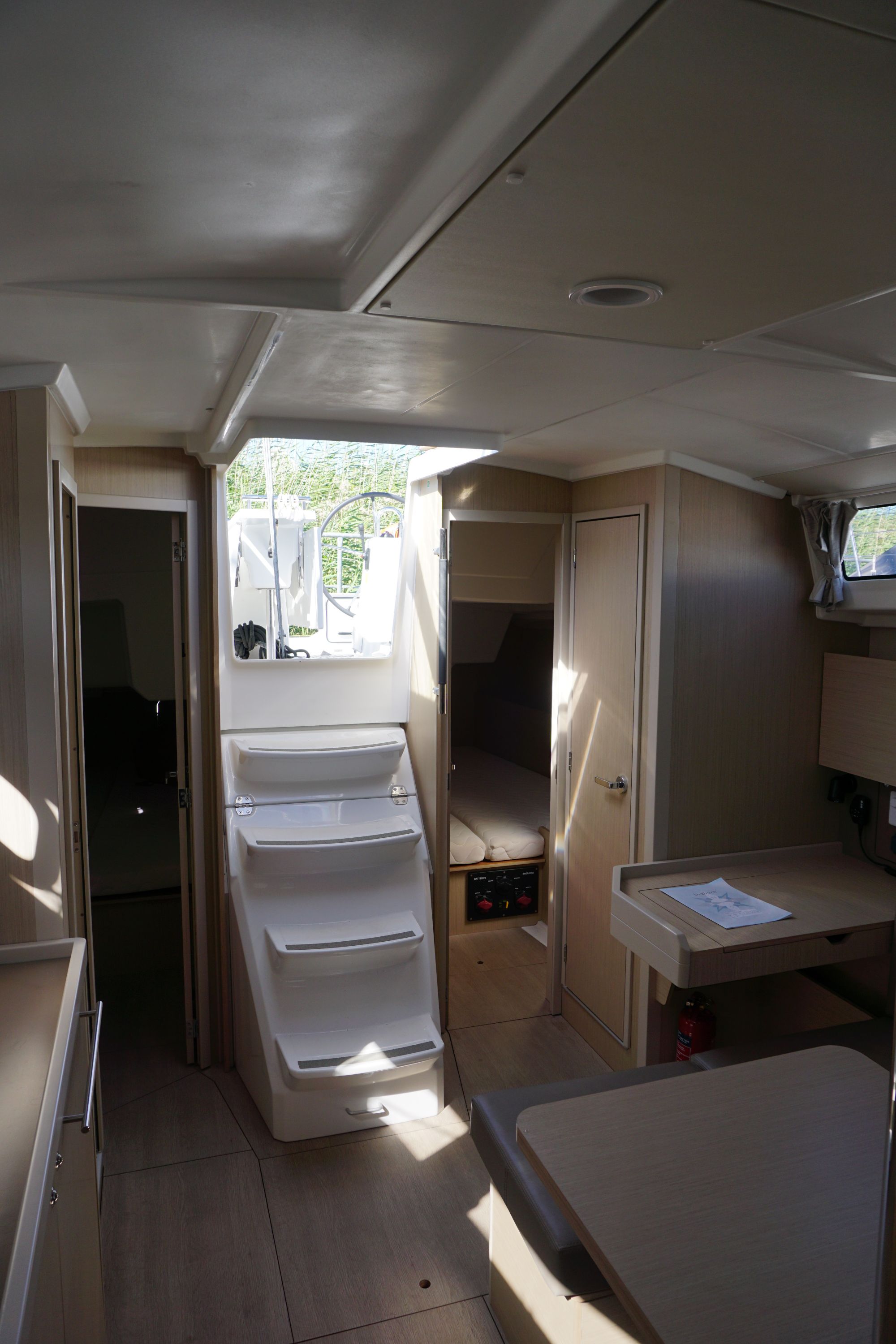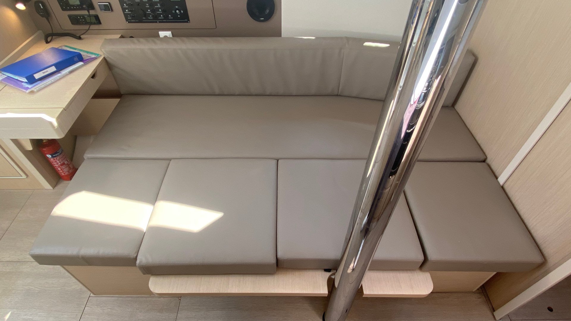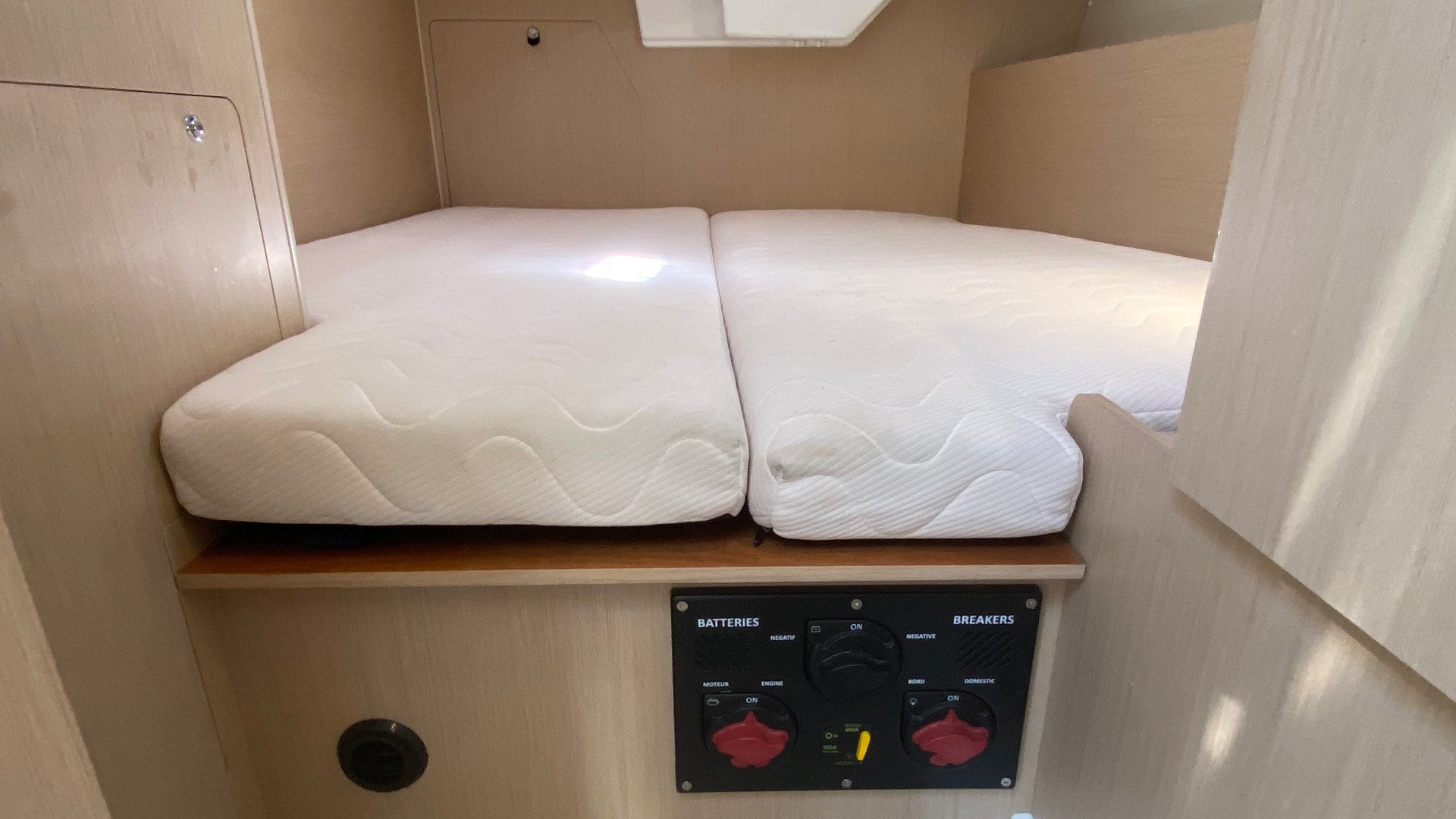 | Inside | 12V Steckdose, 220V Steckdosen, Backofen, Borduhr, Diesel-Heizung, DVB-T, elektr. Druckwasserpumpe, elektrische Kühlbox, FUSION Sound System, Gasherd, Ladegerät, Landstromkabel, Pantryausstattung, Salontisch absenkbar, Spülbecken, TV + DVD, Ventilatoren in Salon und Kabinen, Warmwasser, WC (elektr.) |