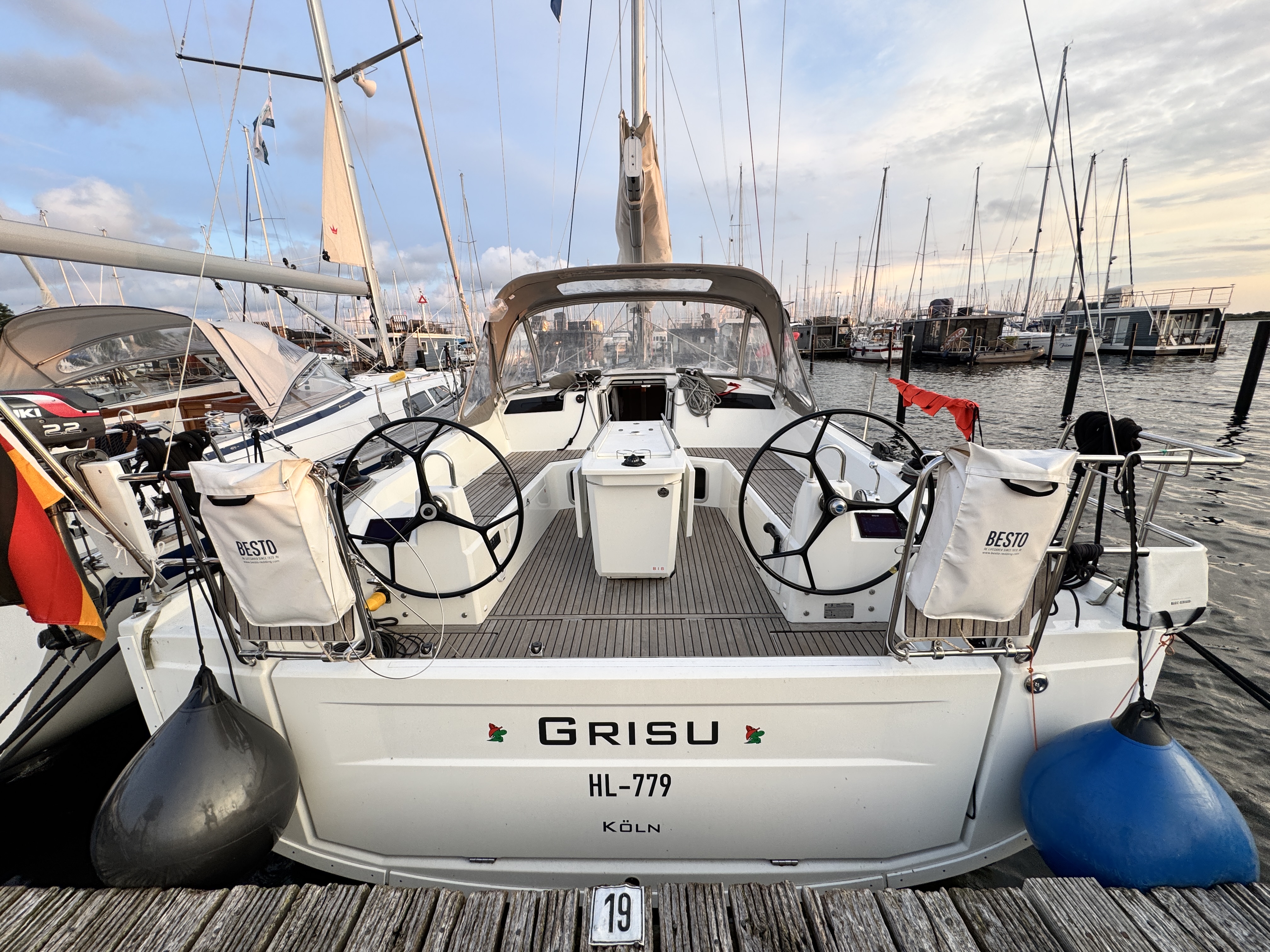 | Safety | AIS Empfänger, Ankerball, Ankerlicht, Automatikwesten, Autopilot, Bilgepumpe, Bootsmannstuhl, Bordwerkzeug, Bugstrahlruder, Feuerlöscher, Flaggen, Handscheinwerfer, Rettungsinsel, UKW-Funk, Zweitanker |