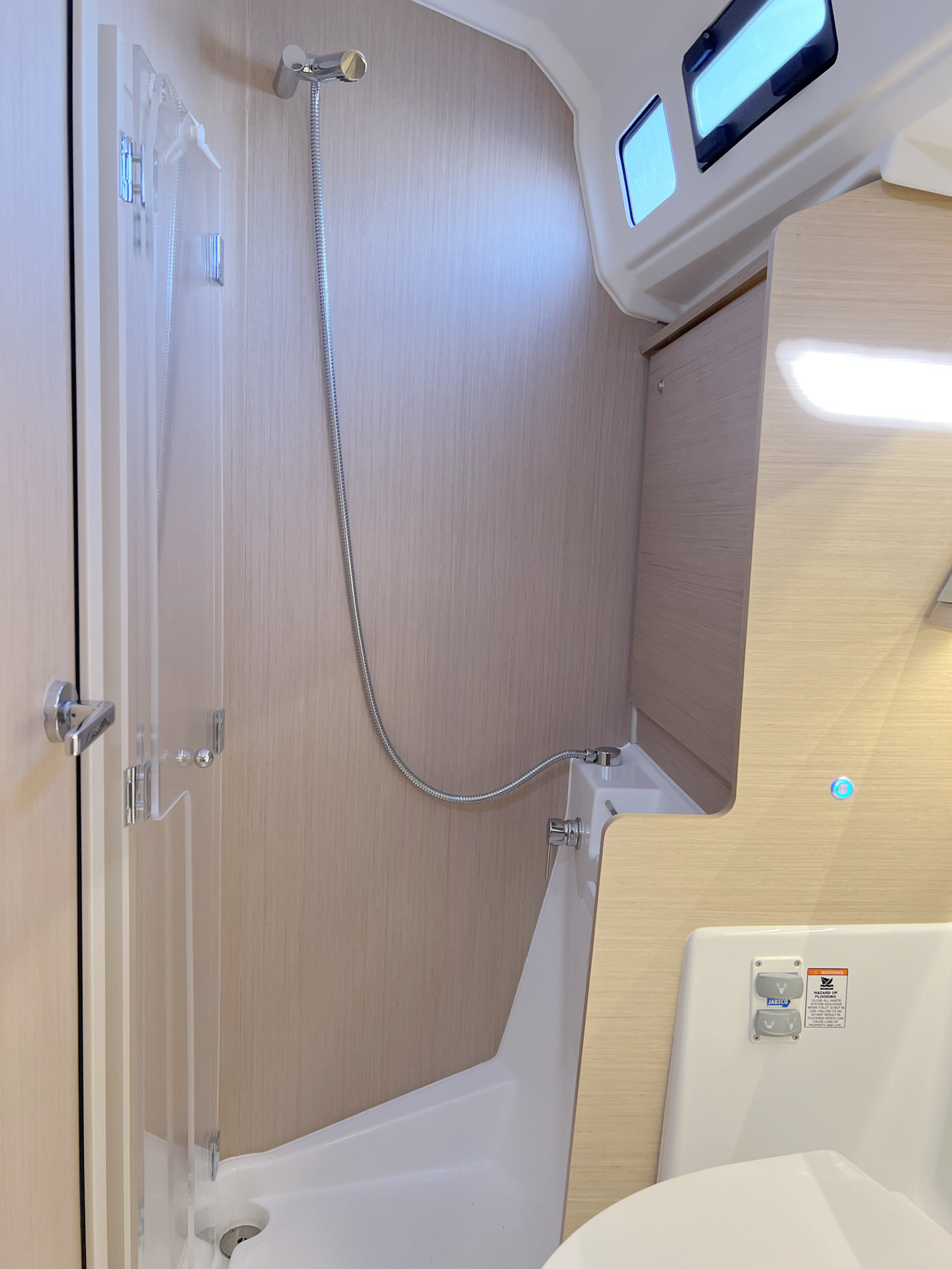 | Outside | Anker mit Kette, Badeplattform, Bootshaken, Bugkorb, Cockpitdusche warm/kalt, Cockpittisch, Deckbürste, elektr. Ankerwinsch, elektr. Großwinsch, Fender, Fernsteuerung für elektr. Ankerwinsch, Festmacherleinen, Sprayhood |