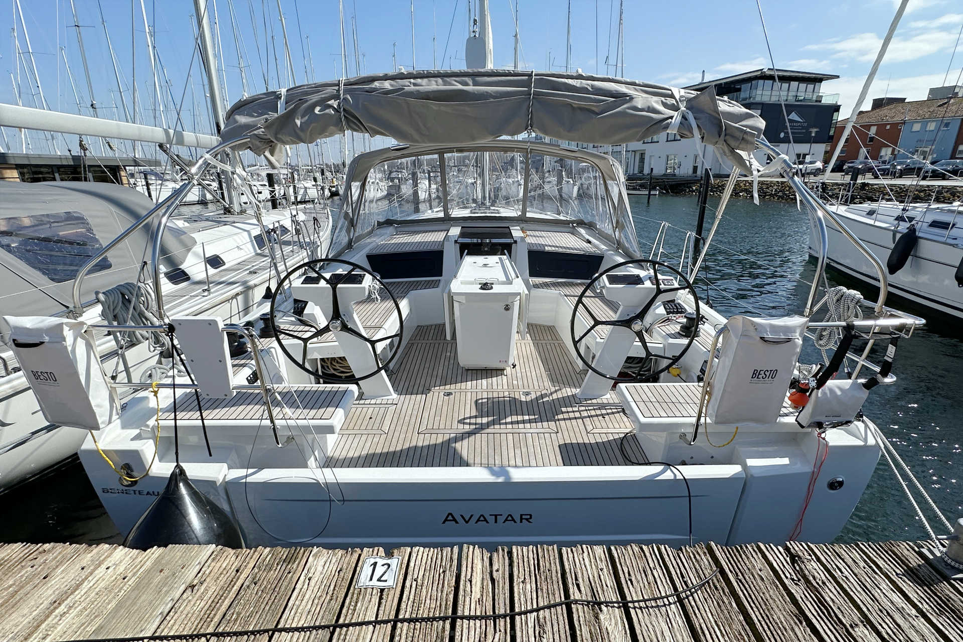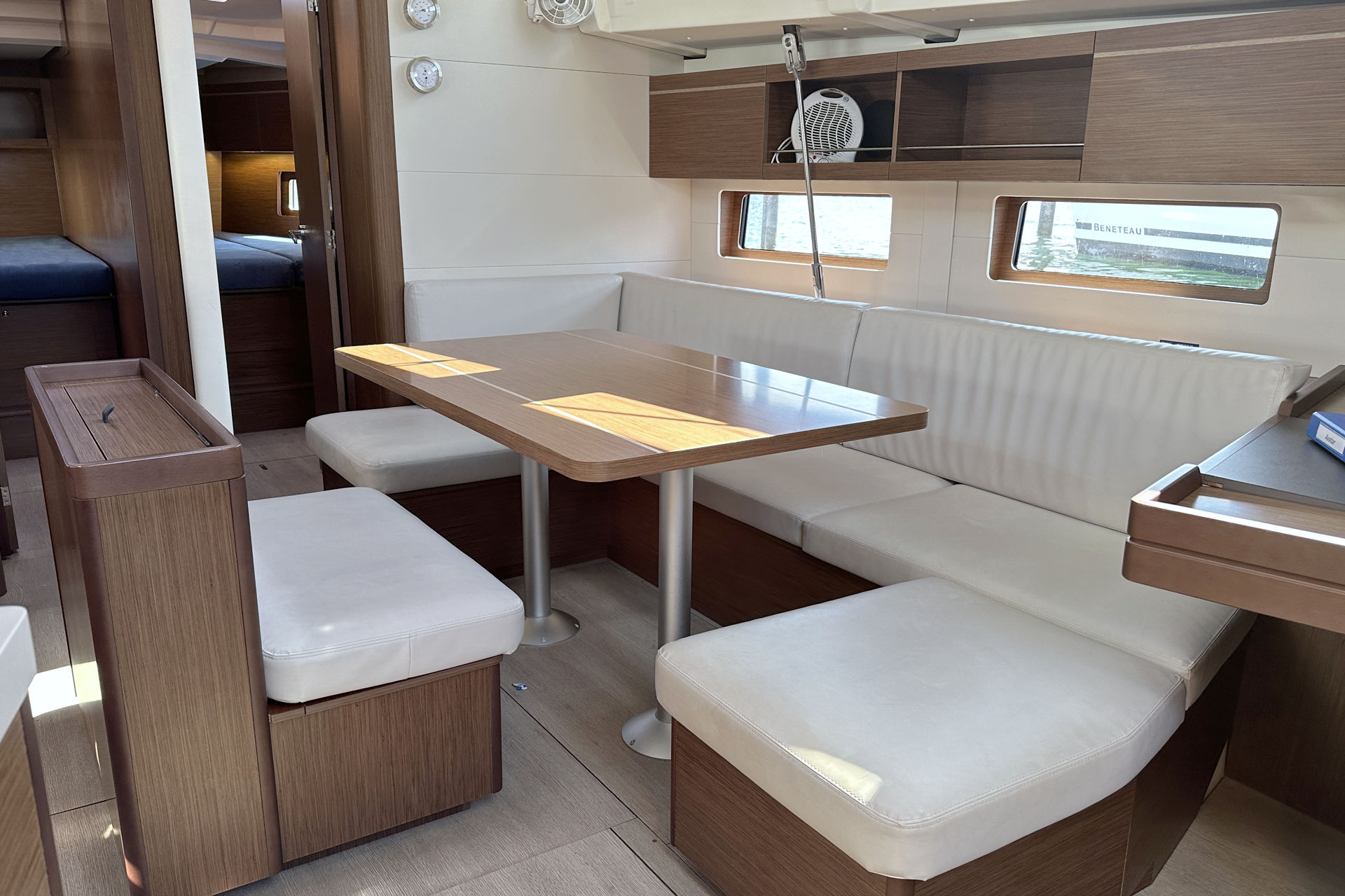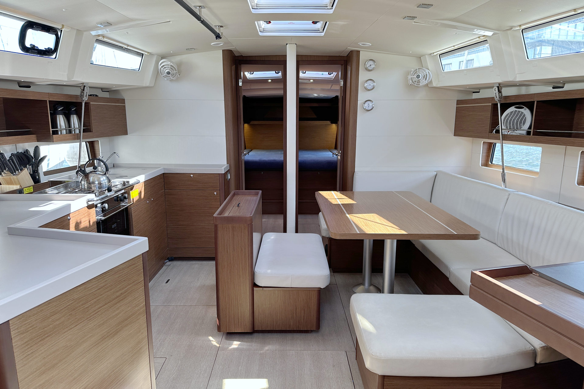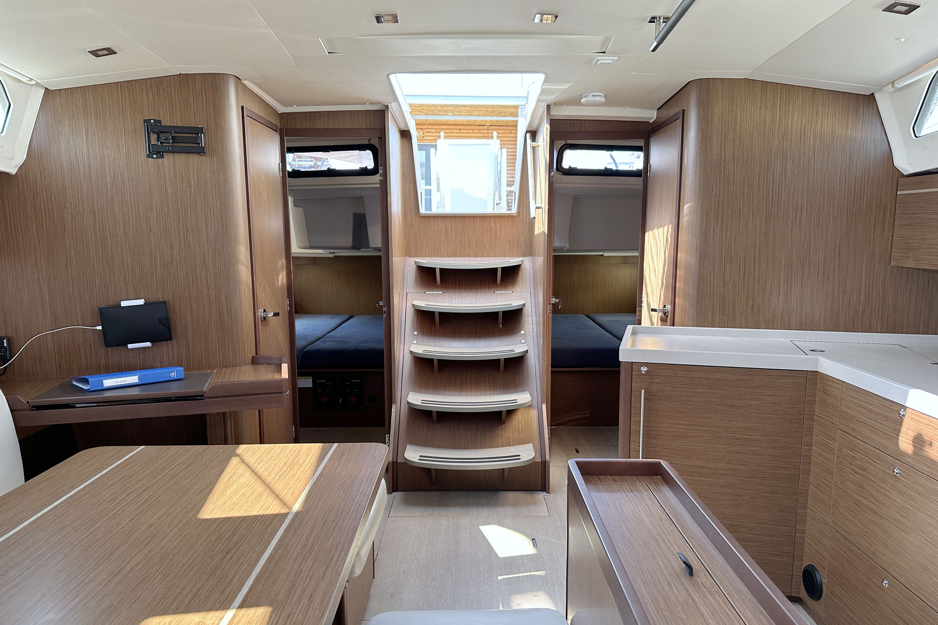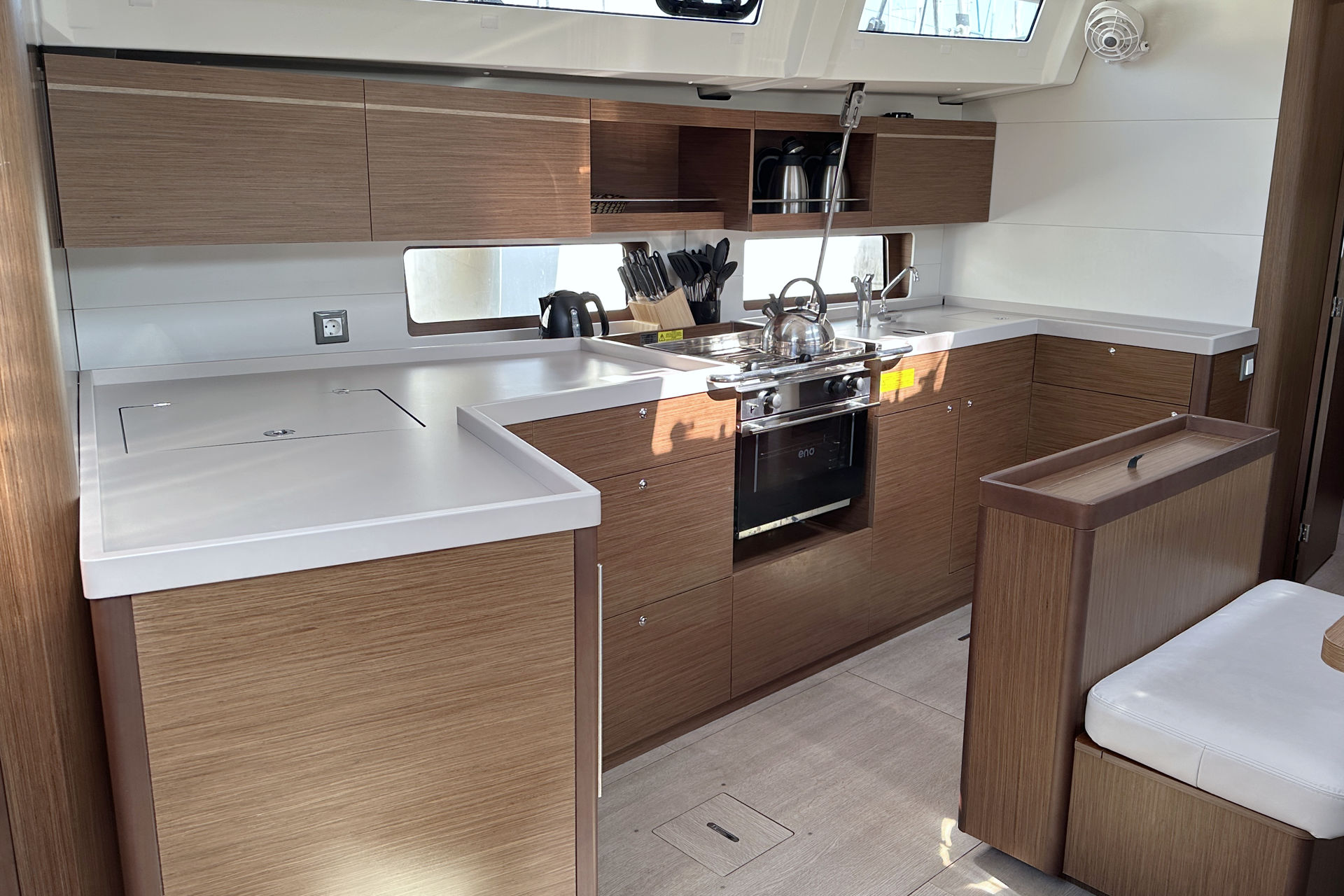 | Outside | Anker mit Kette, Biminitop, Bootshaken, Cockpitdusche warm/kalt, Cockpitlautsprecher, Cockpittisch, Deckbürste, elektr. Ankerwinsch, Fender, Festmacherleinen, Sprayhood, Teak auf Badeplattform, Teak im Cockpit, Wantenschneider |