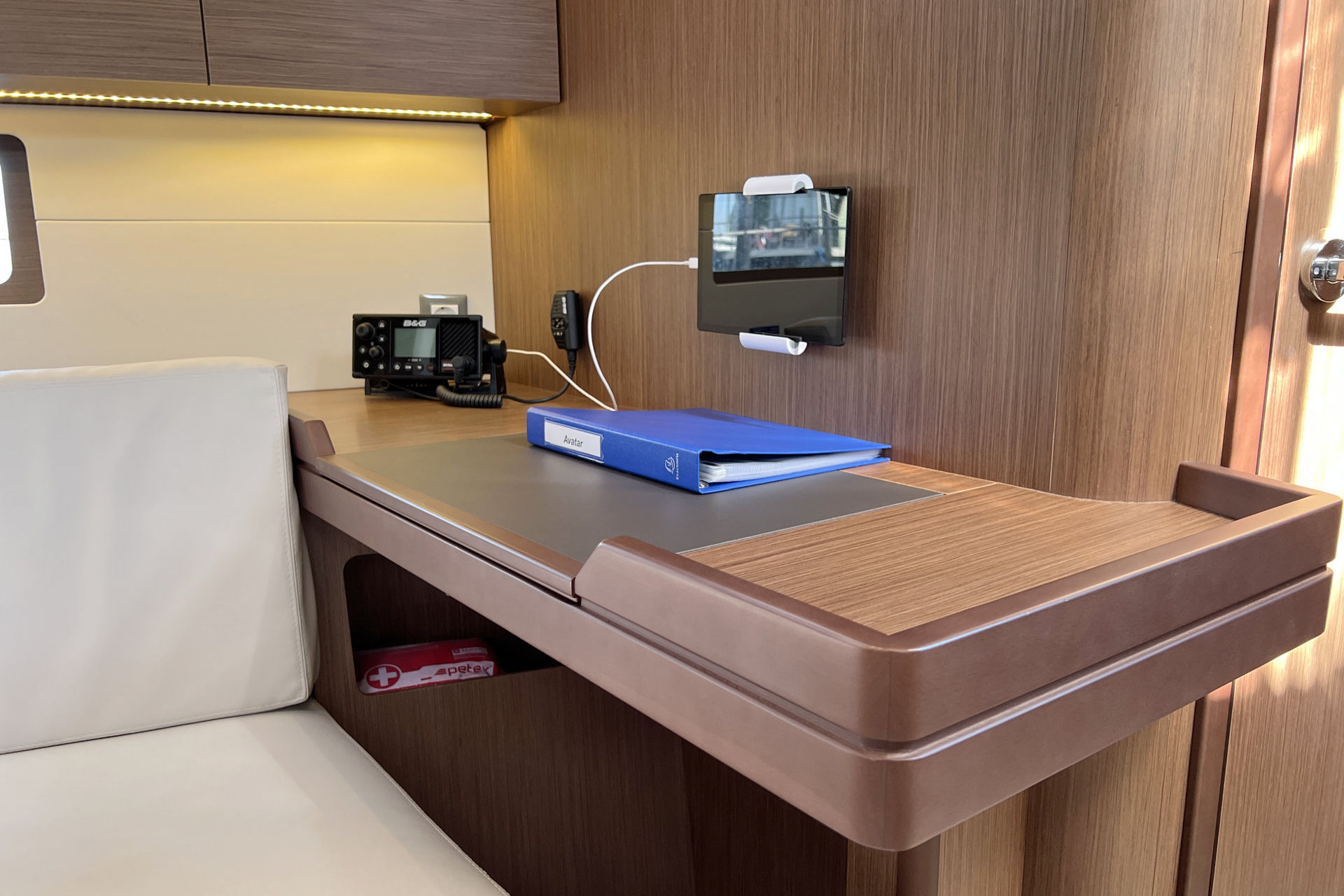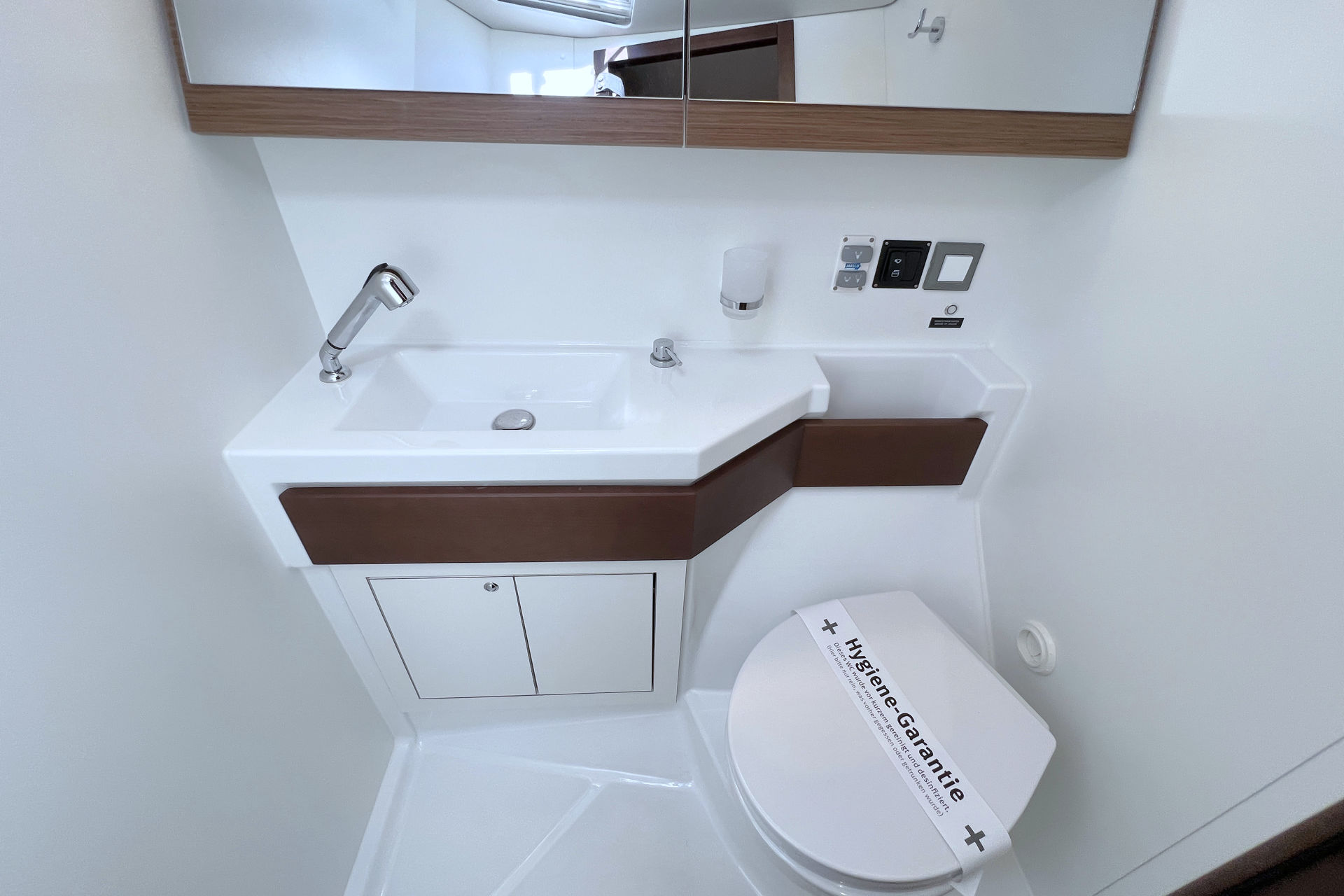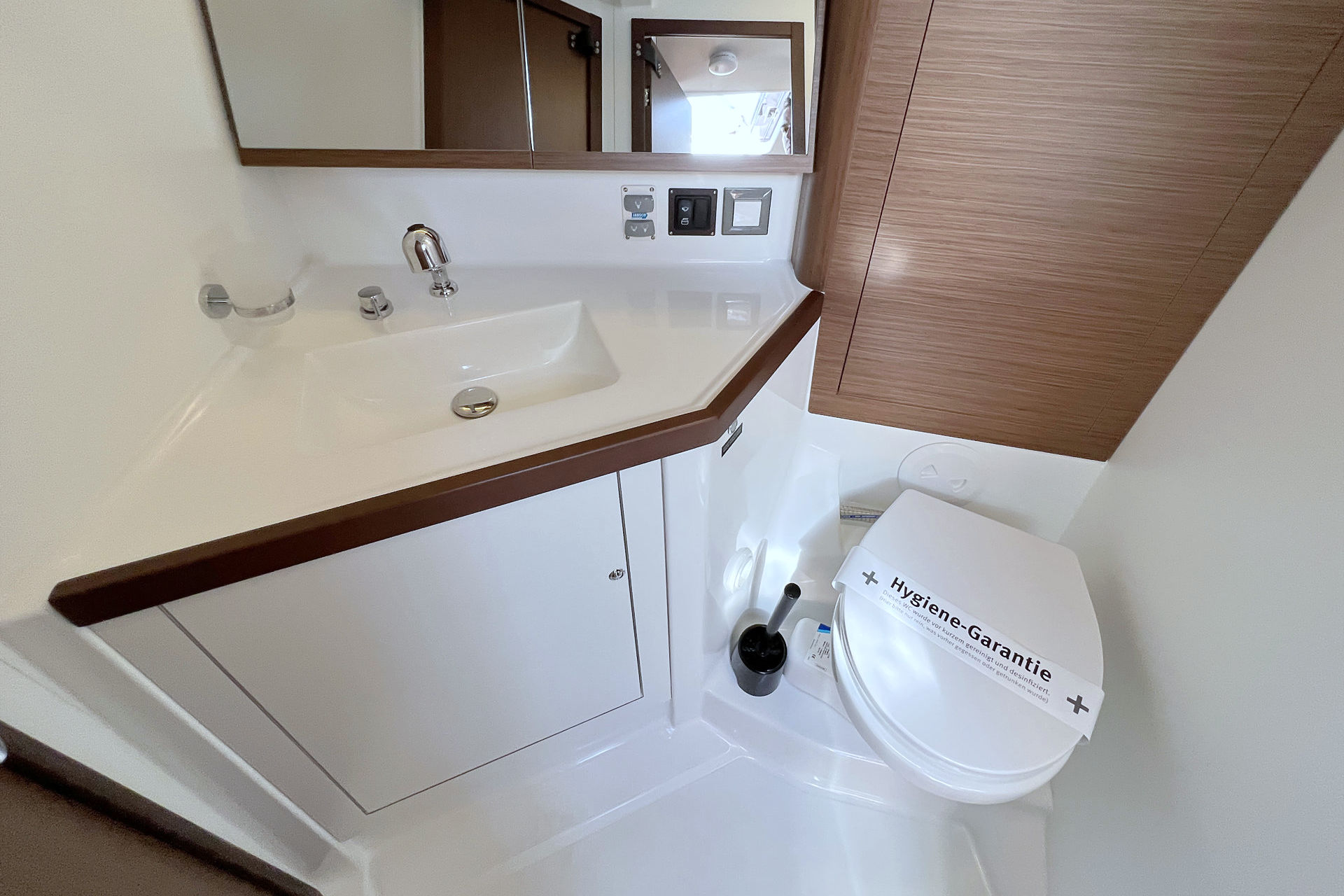 | Safety | AIS Empfänger, Ankerball, Ankerlicht, Automatikwesten, Autopilot, Bilgepumpe, Bootsmannstuhl, Bordapotheke, Bordwerkzeug, Bugstrahlruder, Feuerlöscher, Flaggen, Handscheinwerfer, Lifebelts, Navigationslichter, Nebelhorn, Notsignale, Rettungsinsel, Rettungsring, UKW-Funk, Zweitanker |