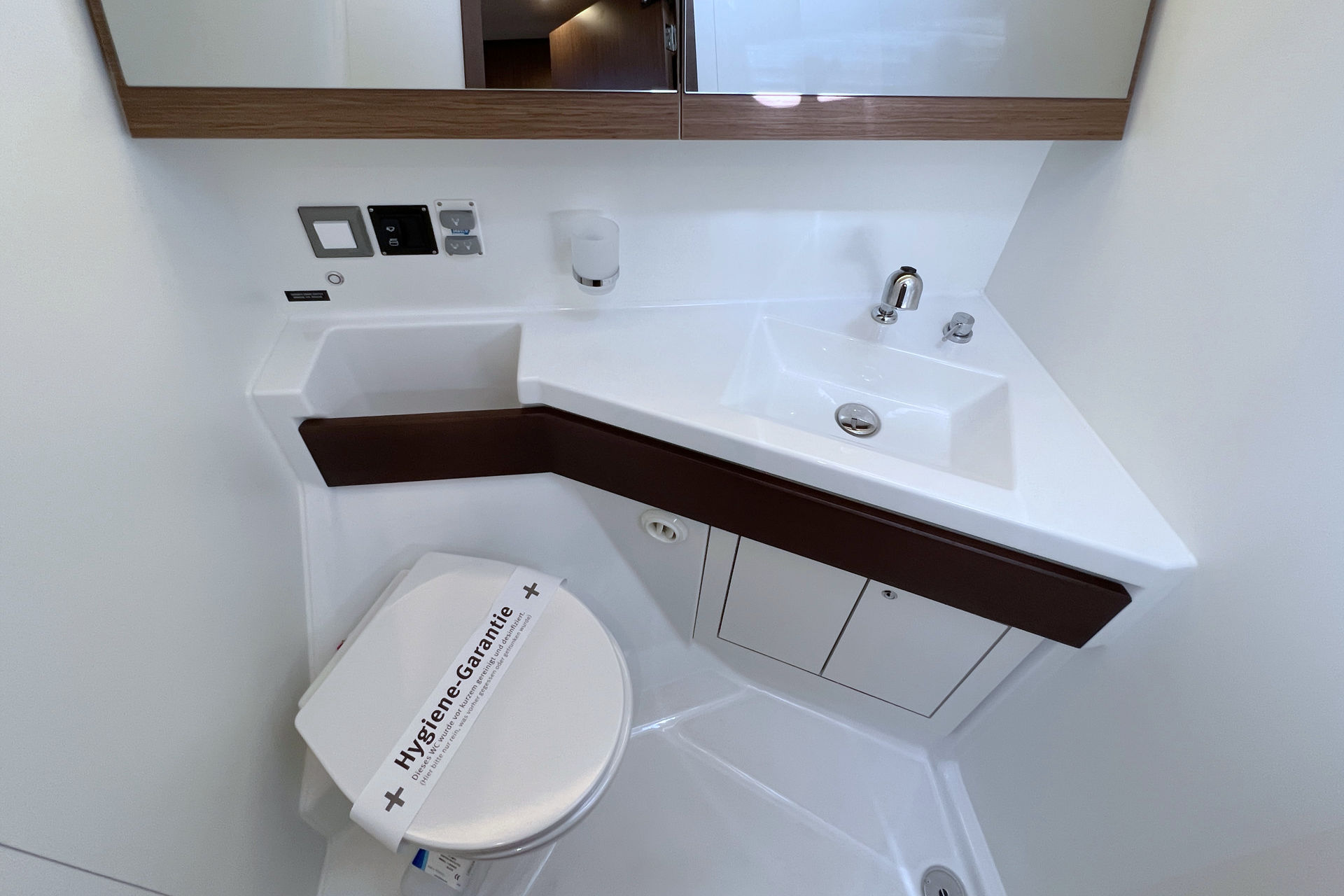 | Inside | 12V/220V-Steckdosen, Backofen, Borduhr, Diesel-Heizung, elektr. Druckwasserpumpe, elektrische Kühlbox, FUSION Sound System, Gasherd, Gefrierschrank, Kühlschrank, Ladegerät, Landstromkabel, Pantryausstattung, Salontisch absenkbar, Spülbecken, Tablet PC, TV mit DVBT, Ventilatoren in Kabinen, Warmwasser, WC |
