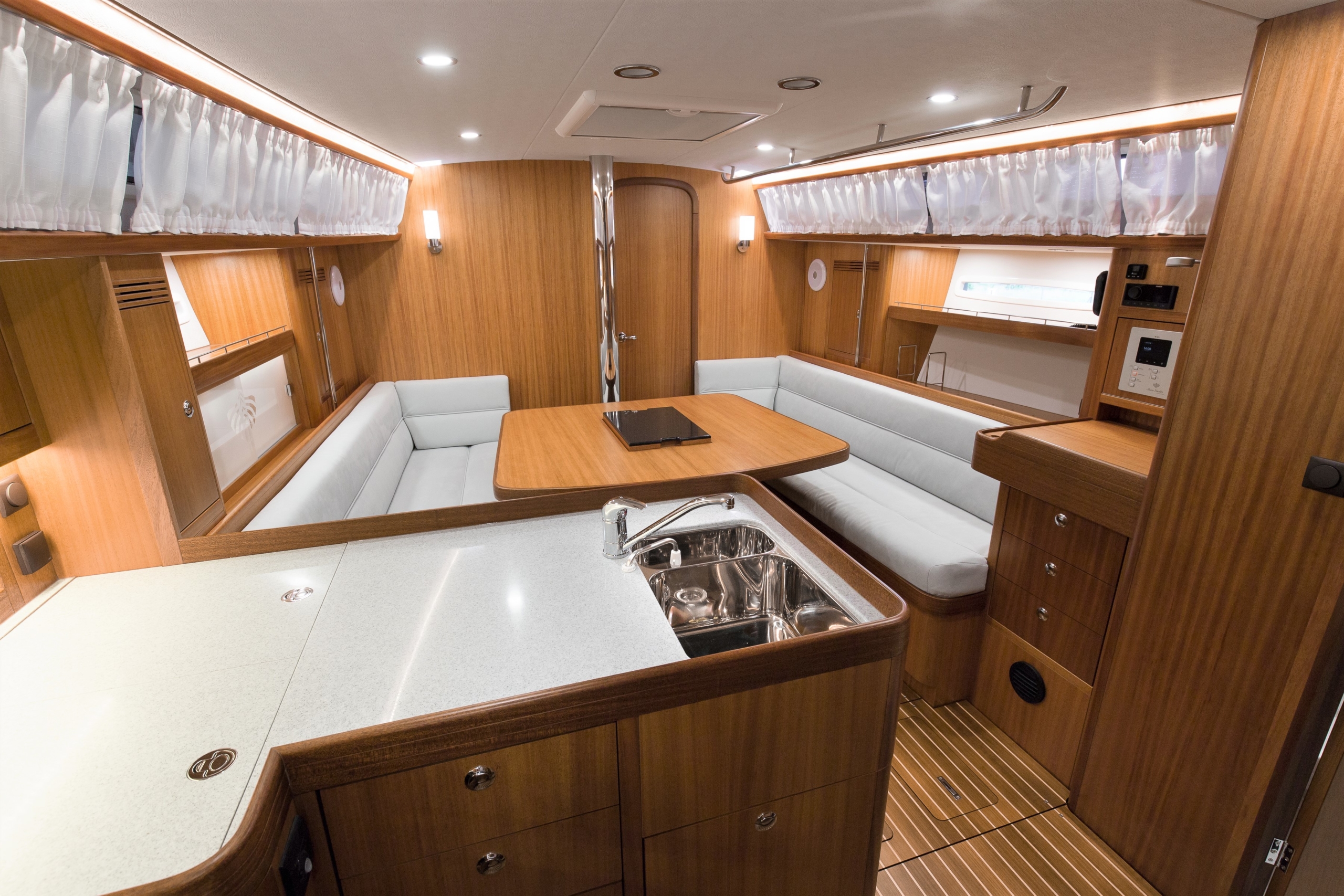 | Outside | Badeplattform, Cockpitdusche warm/kalt, Cockpittisch, elektr. Ankerwinsch, Faltpropeller, Sprayhood, Teak auf Badeplattform, Teakdeck |