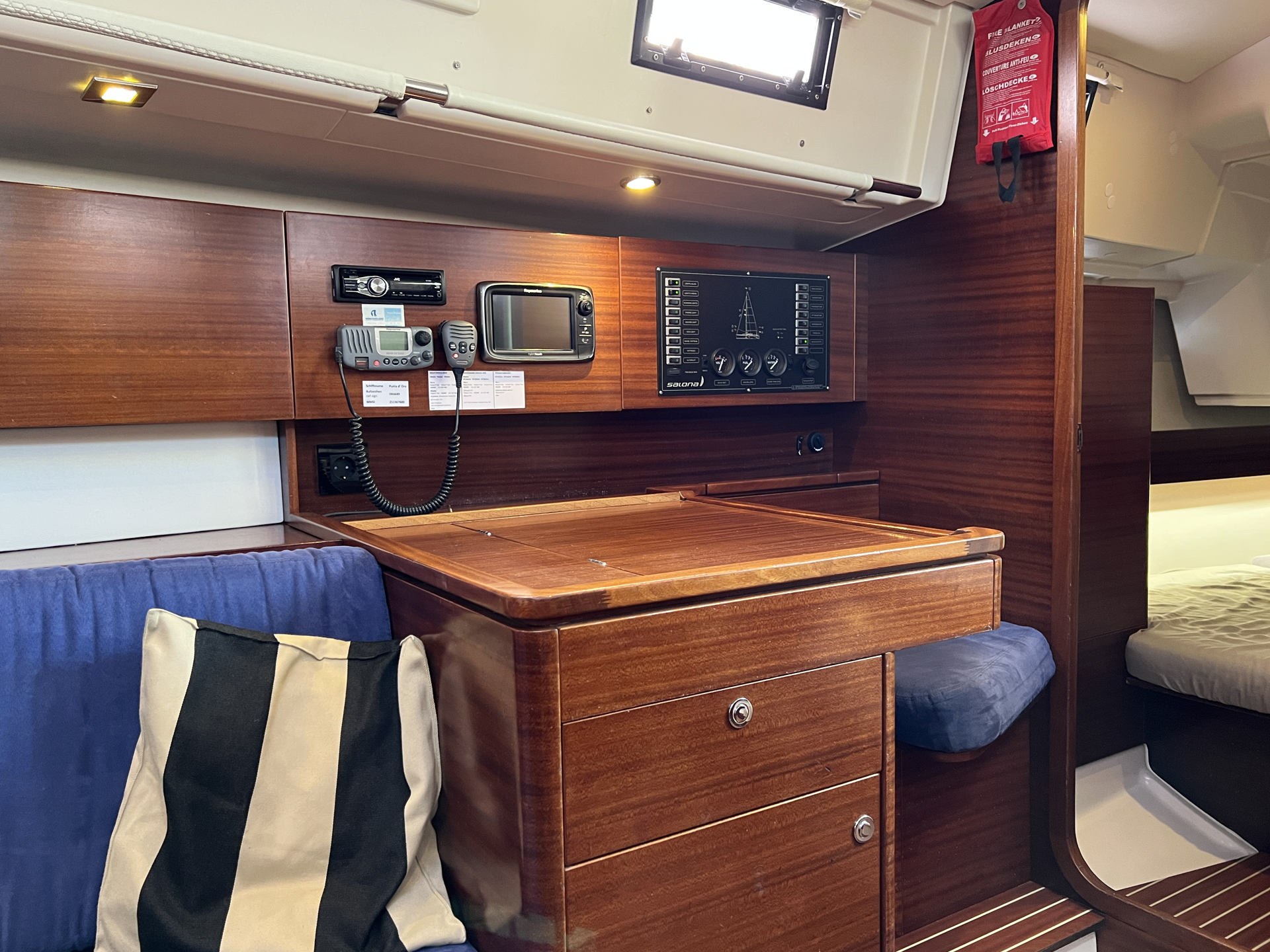 | Navigation | GPS mit Kartenplotter im Cockpit, GPS mit Kartenplotter im Salon, Windmesser |