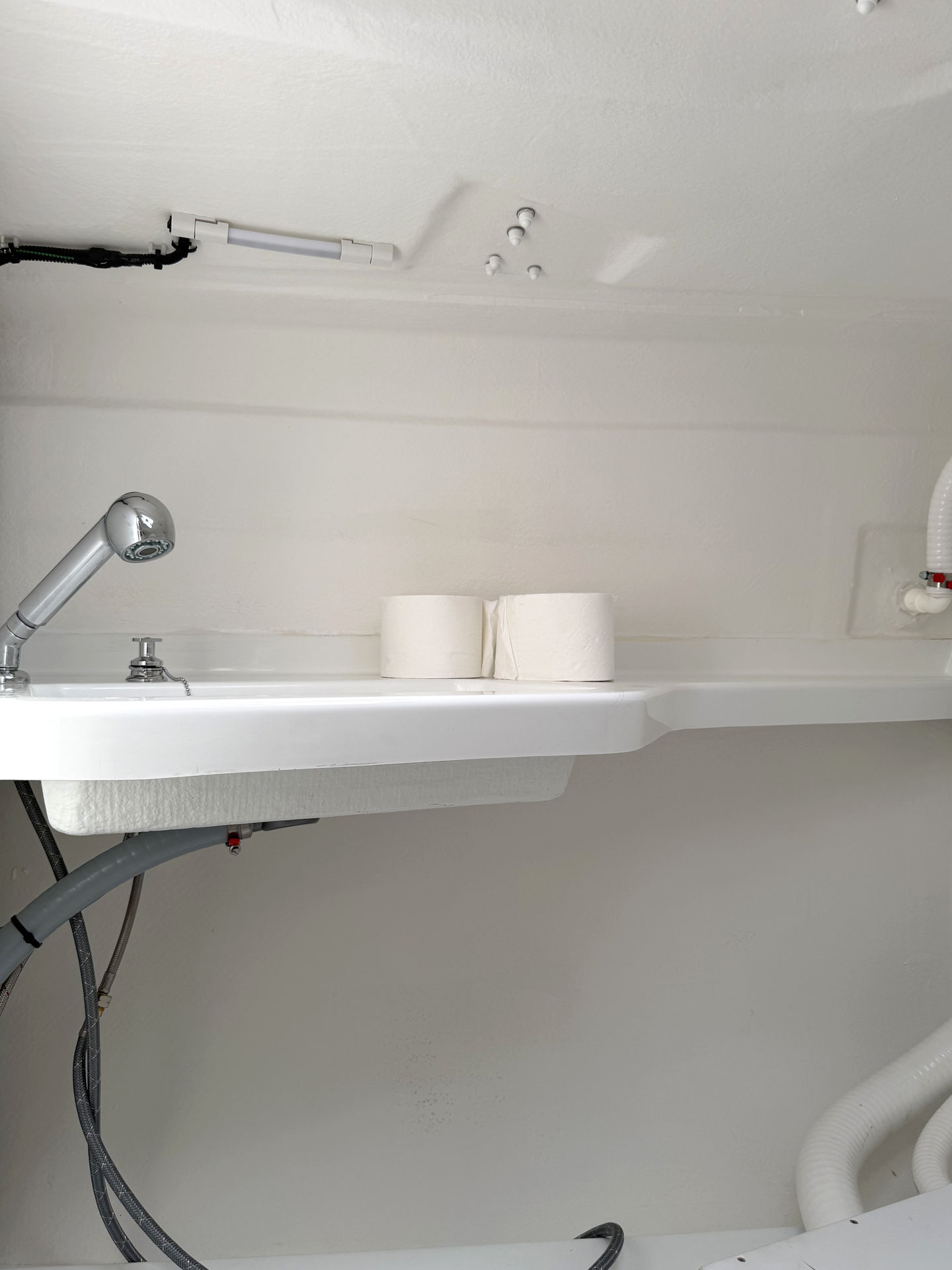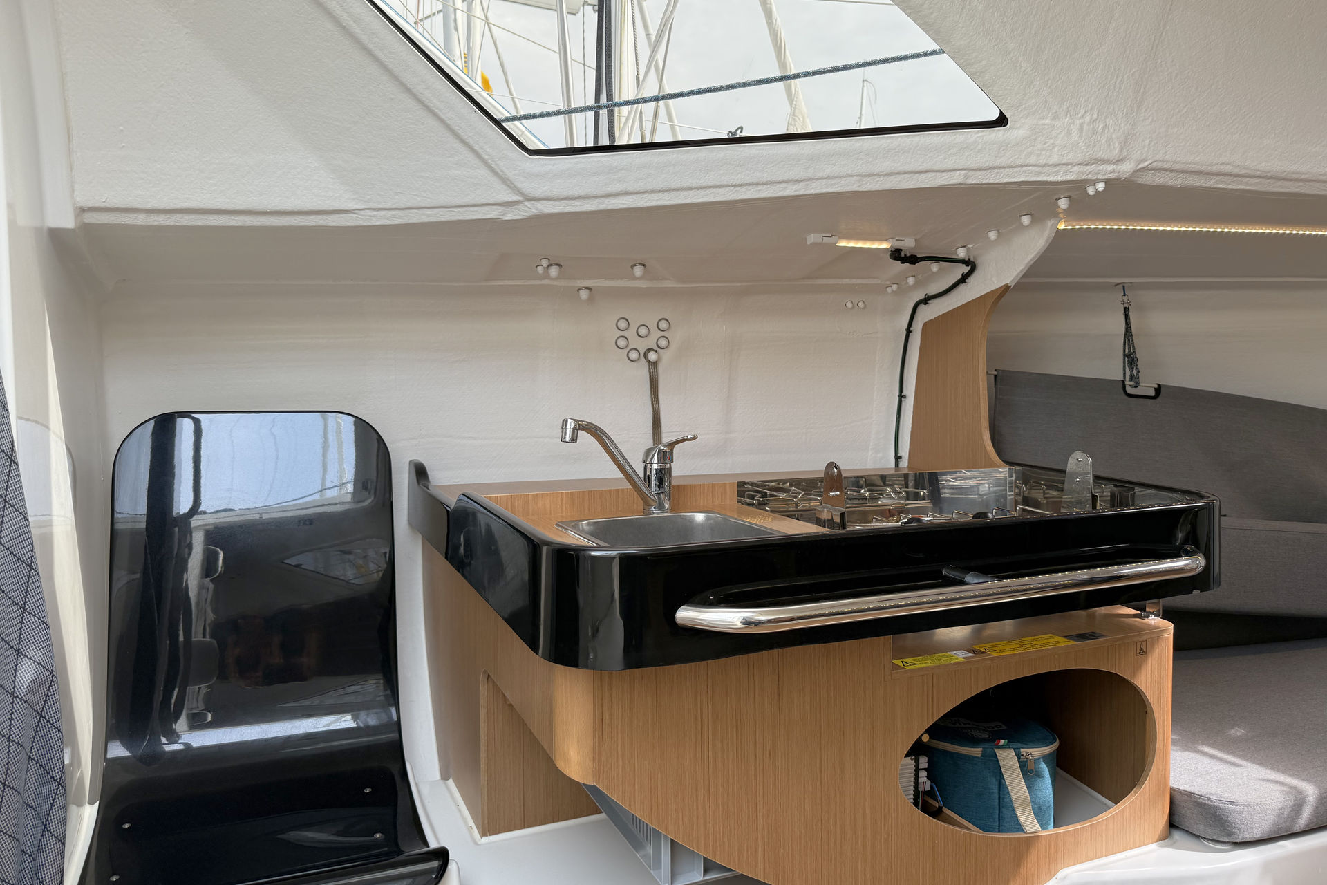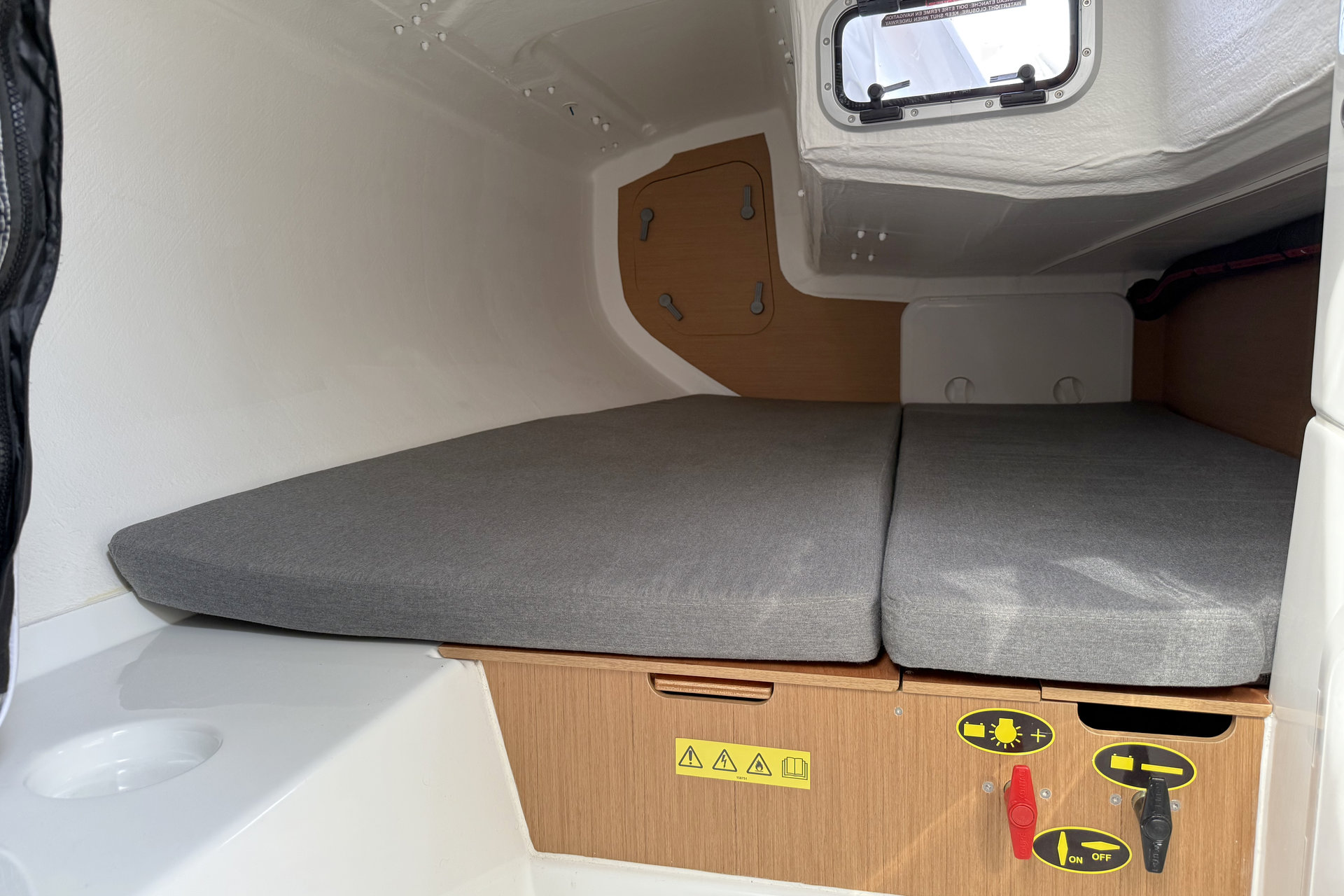 | Inside | 2-flammiger Gasherd, Diesel-Heizung, Kühlbox, Ladegerät, Pantryausstattung, Warmwasser |