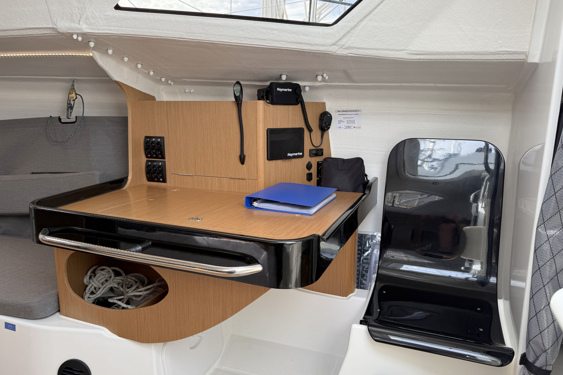 | Navigation | GPS mit Farbkartenplotter im Cockpit, Windmesser |