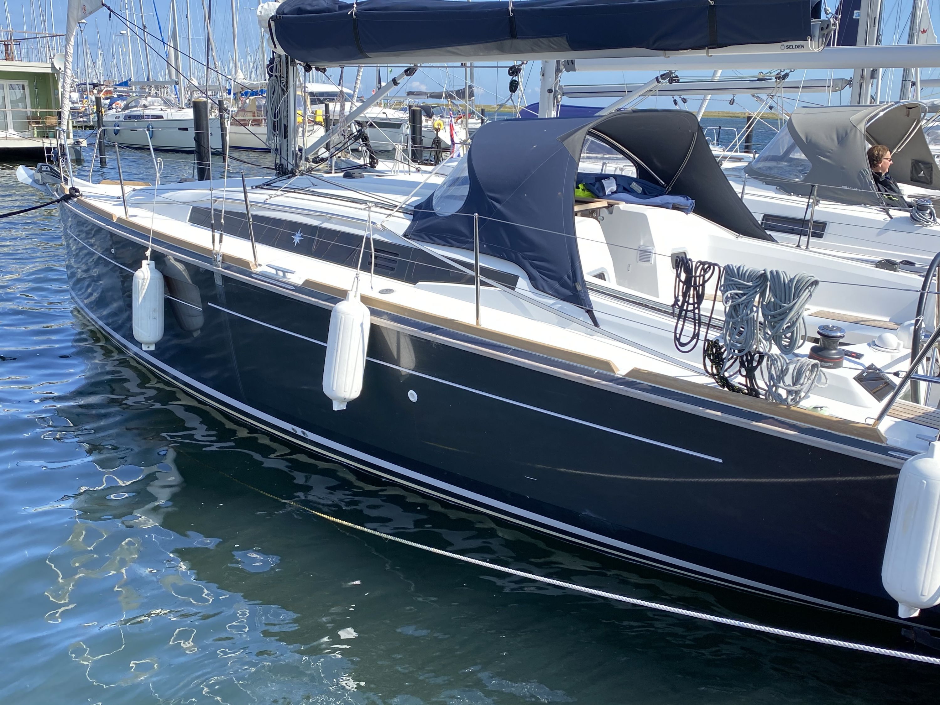 | Outside | Anker mit Kette, Bootshaken, Bugkorb, Cockpittisch, Deckbürste, elektr. Ankerwinsch, Fender, Festmacherleinen, Sprayhood, Wantenschneider |